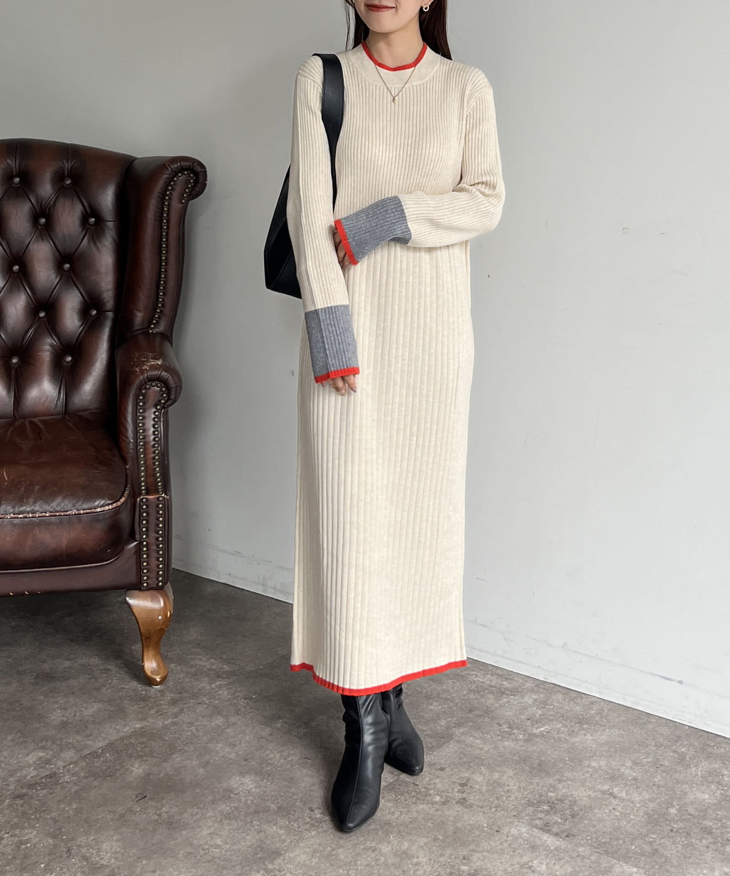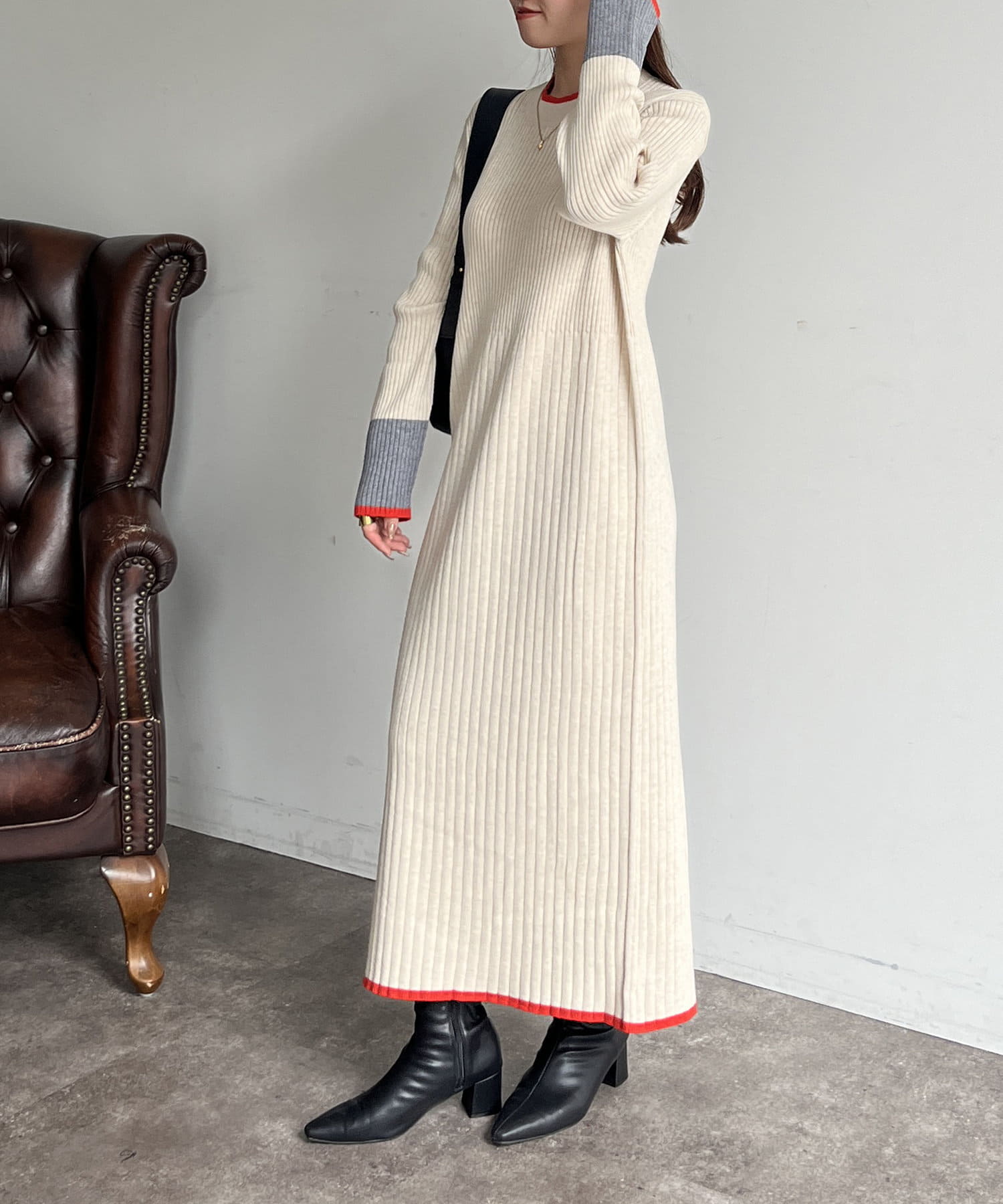 #ニットワンピ #袖先配色 #バイカラー