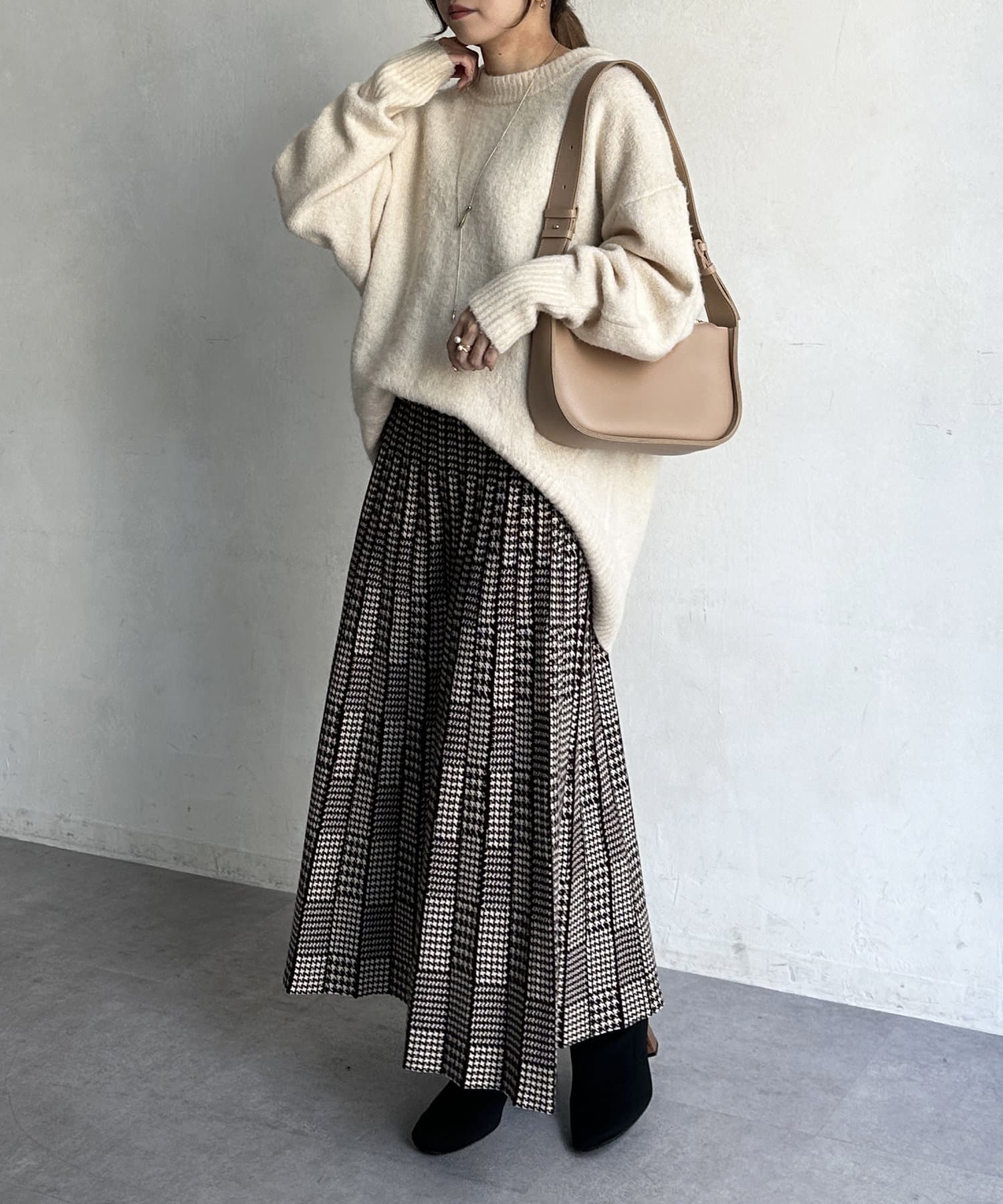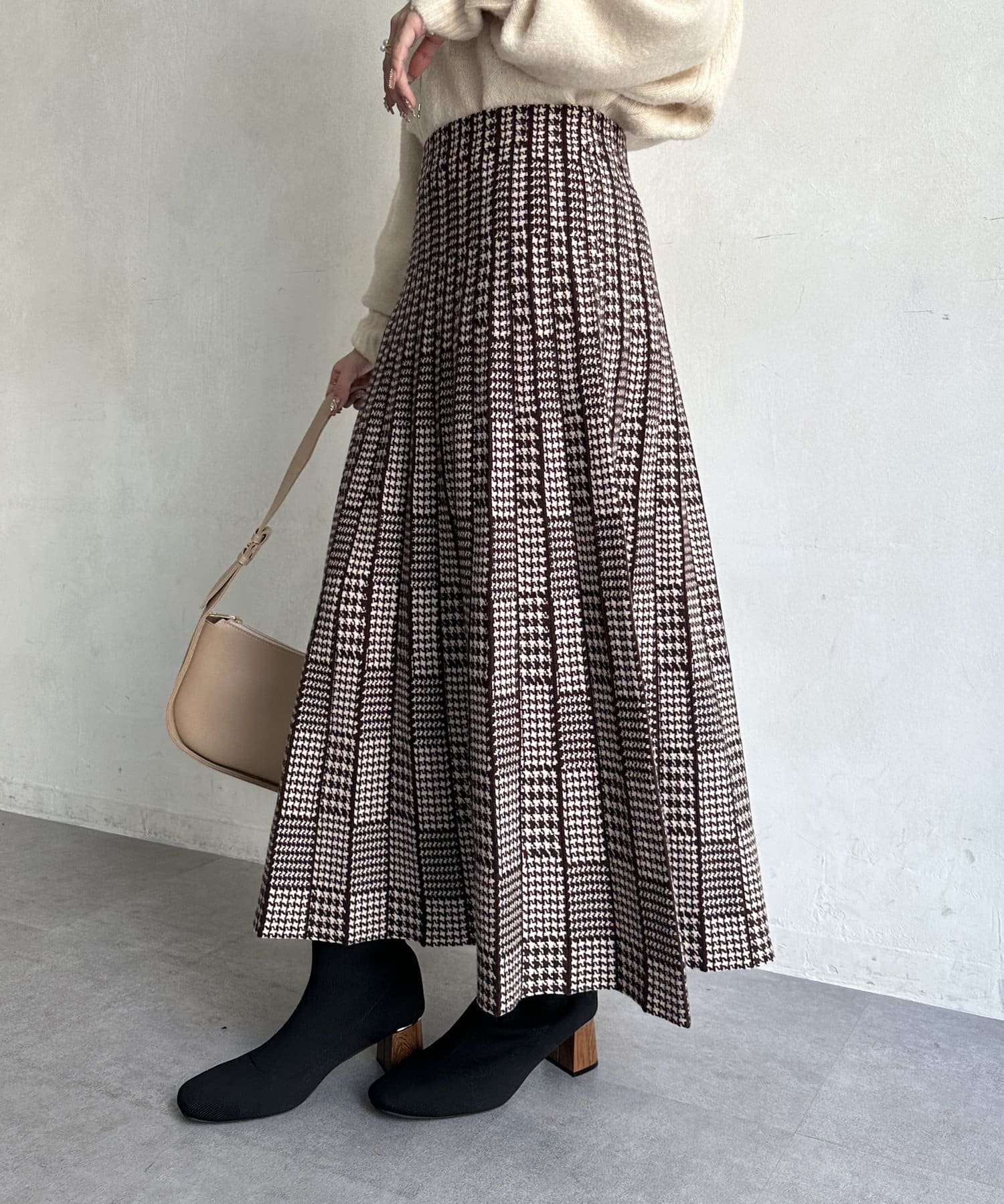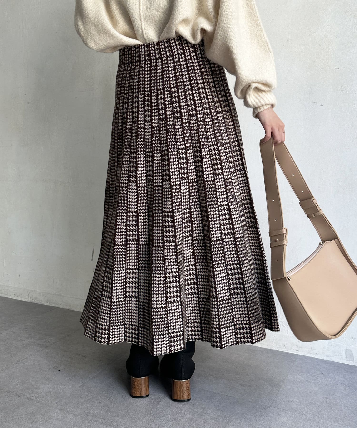 フェミニンさ漂う千鳥柄スカート