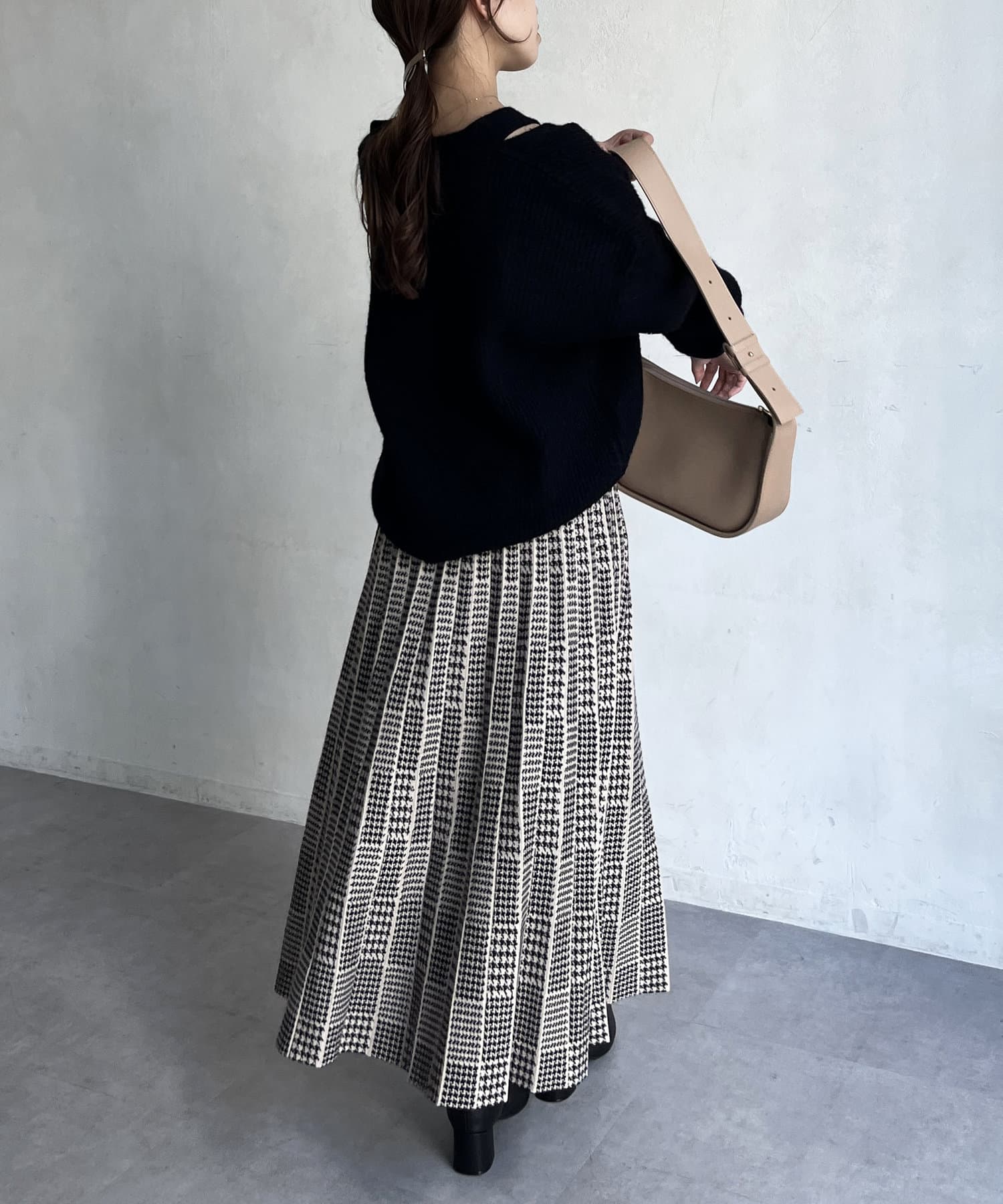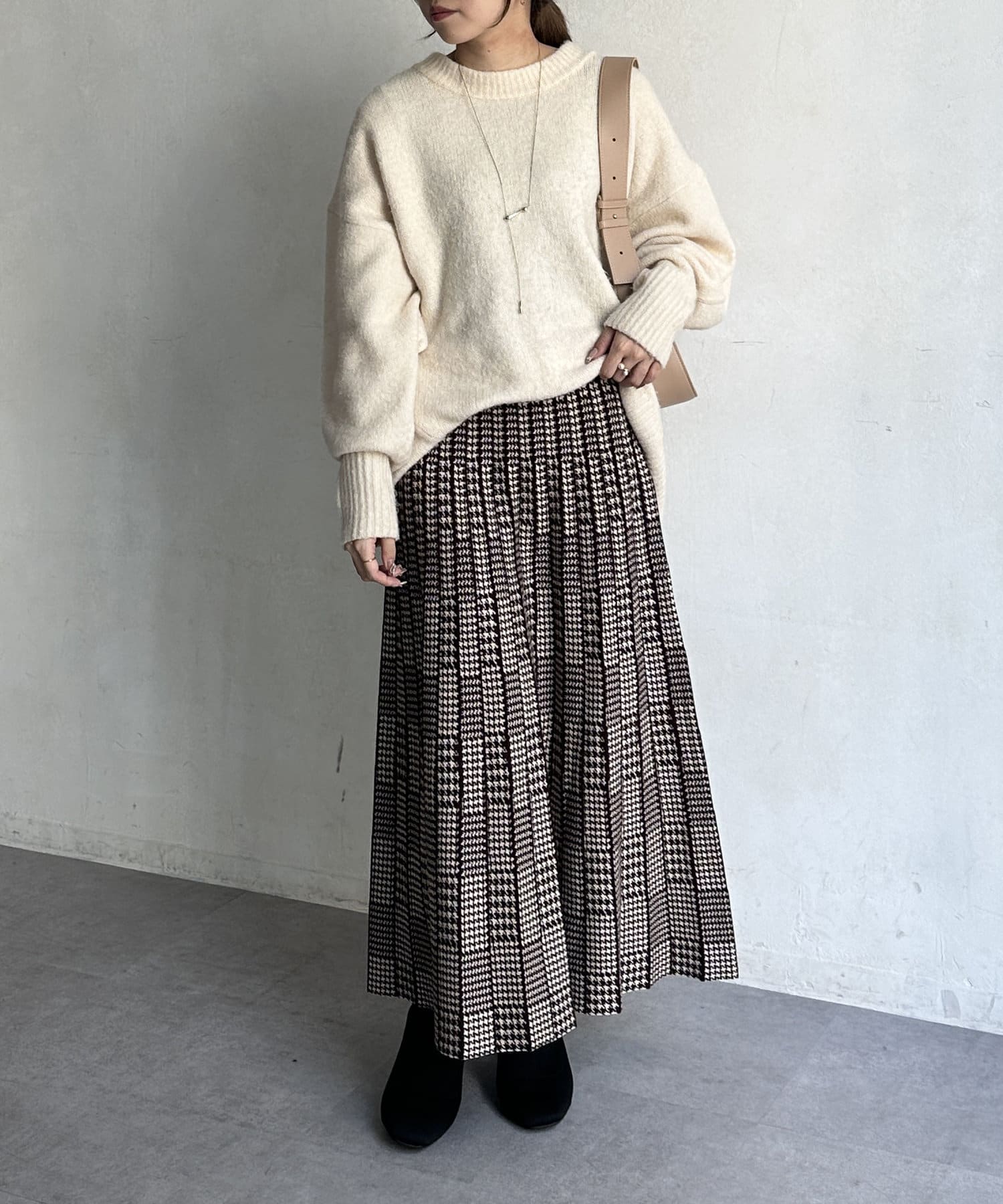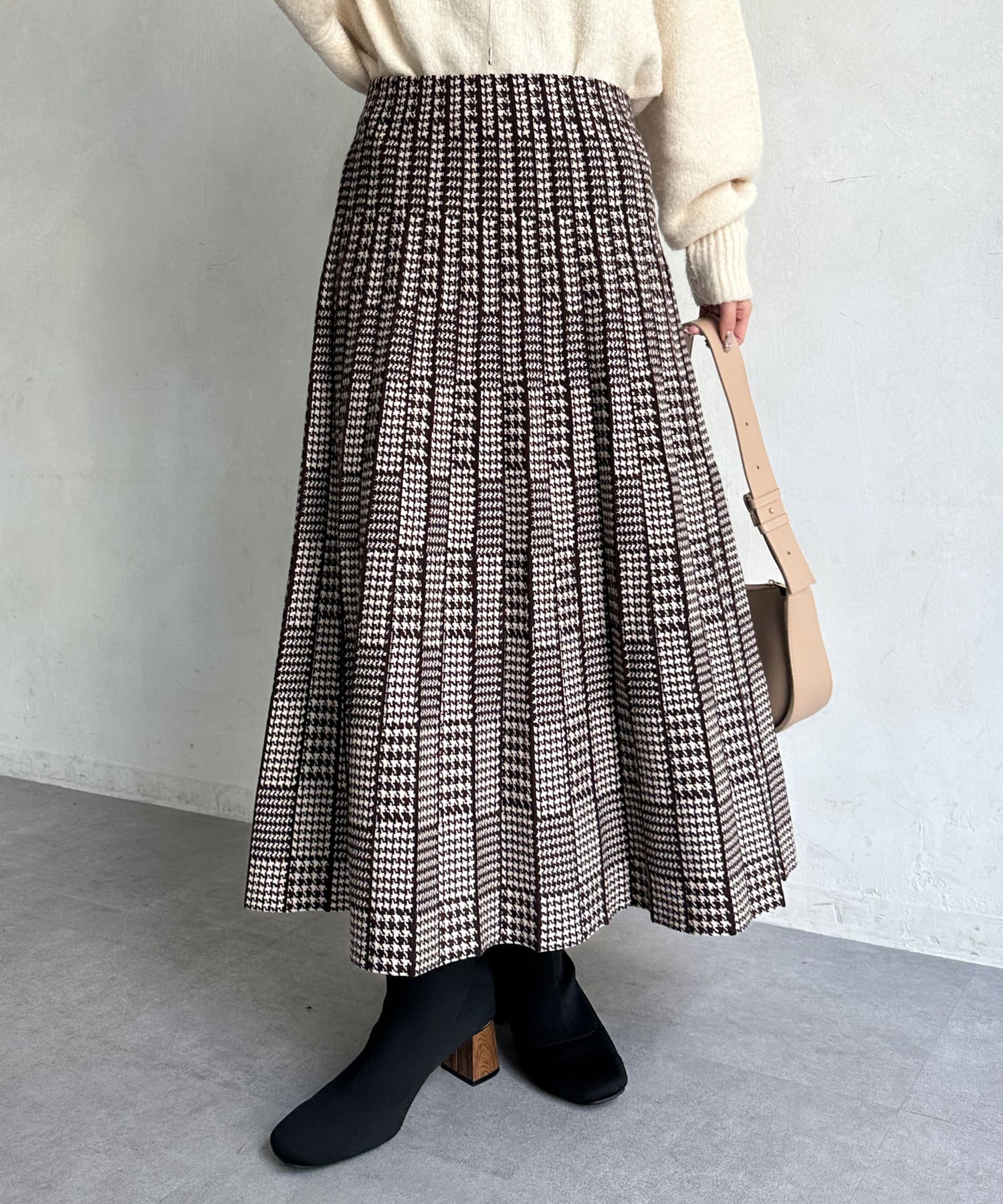 フェミニンさ漂う千鳥柄スカート