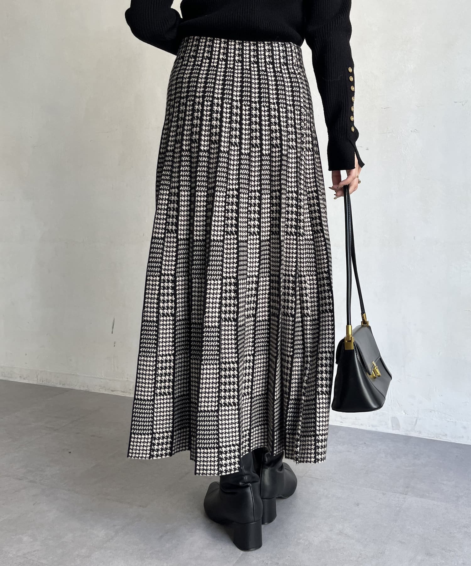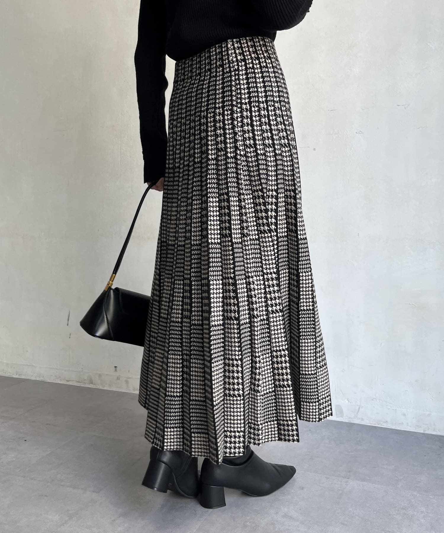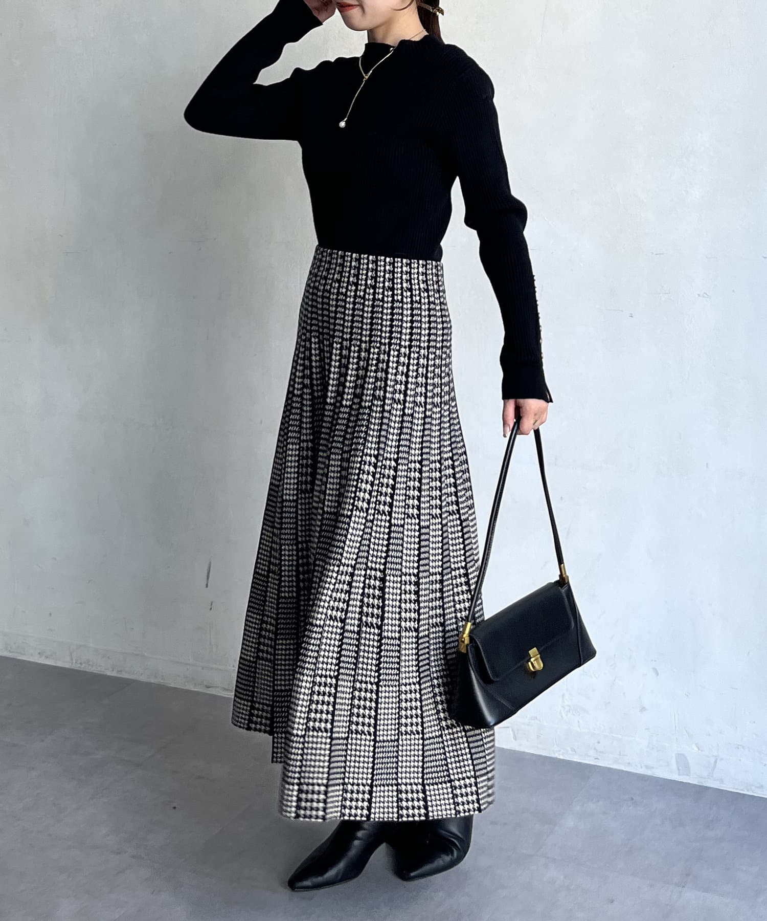 千鳥柄切替ニットプリーツスカート