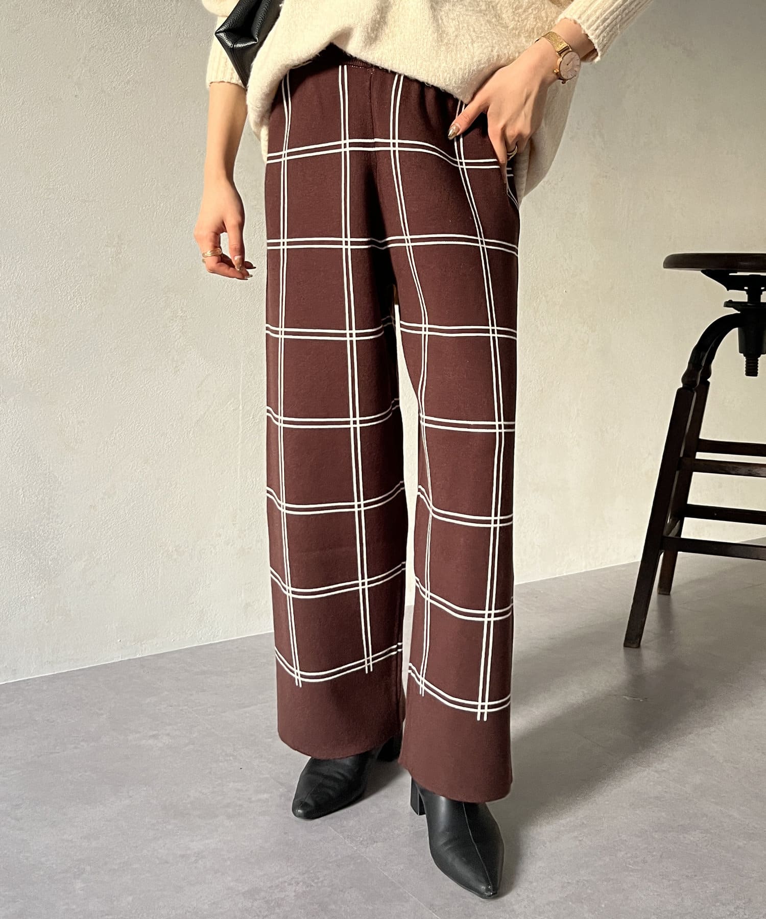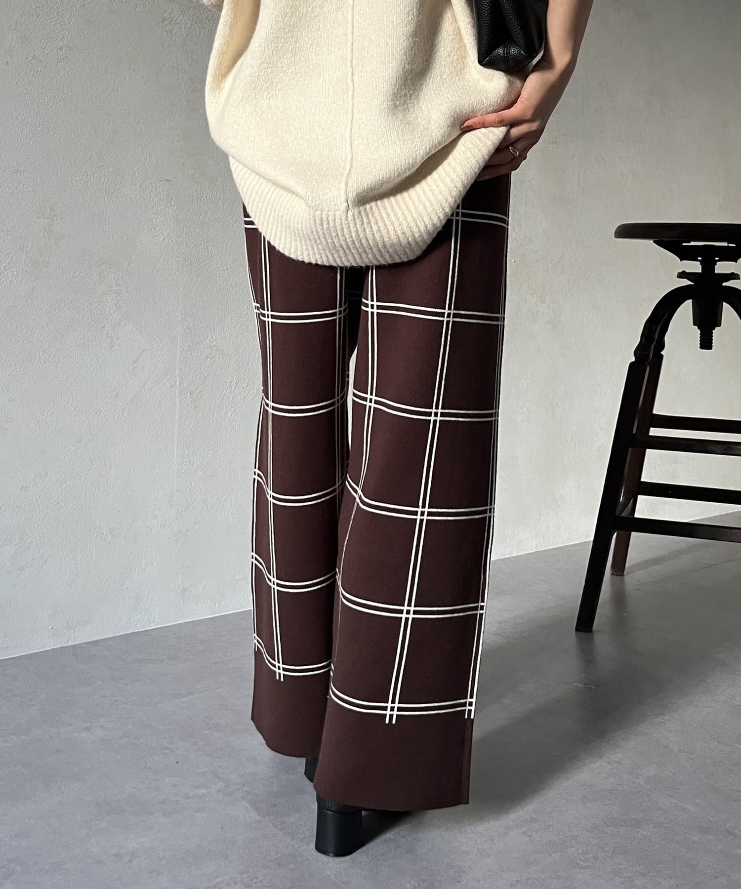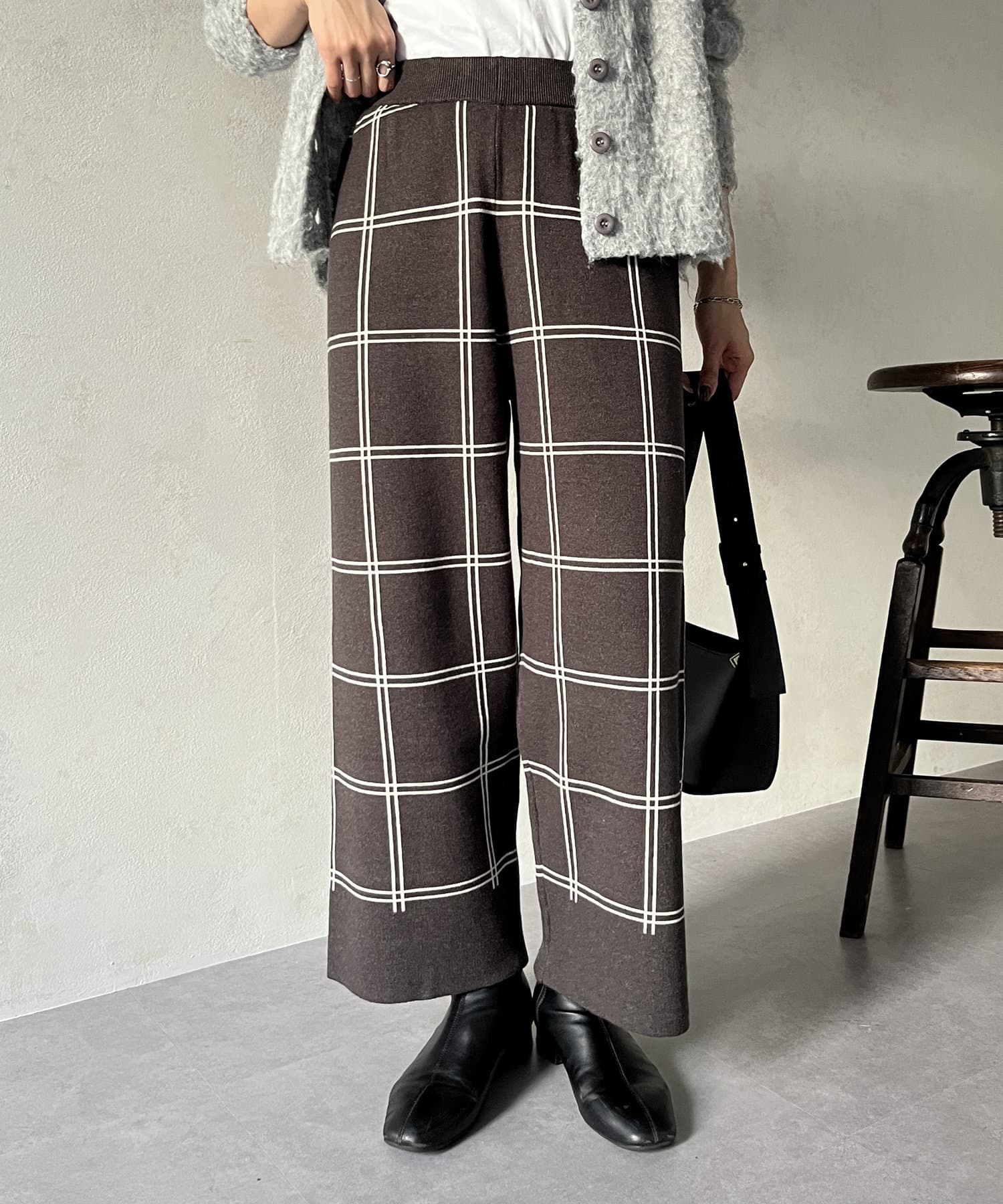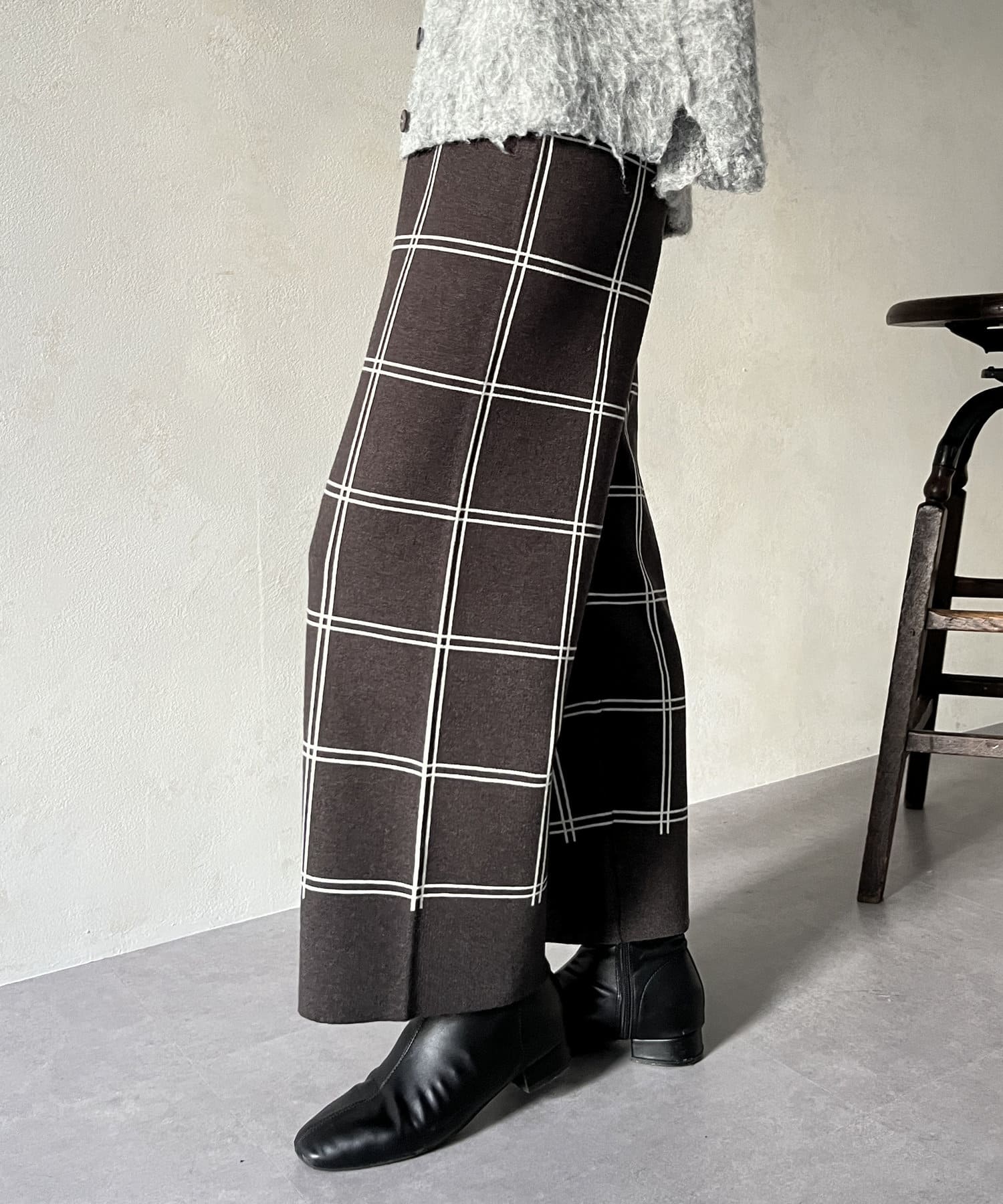 ラインチェック柄ニットパンツ