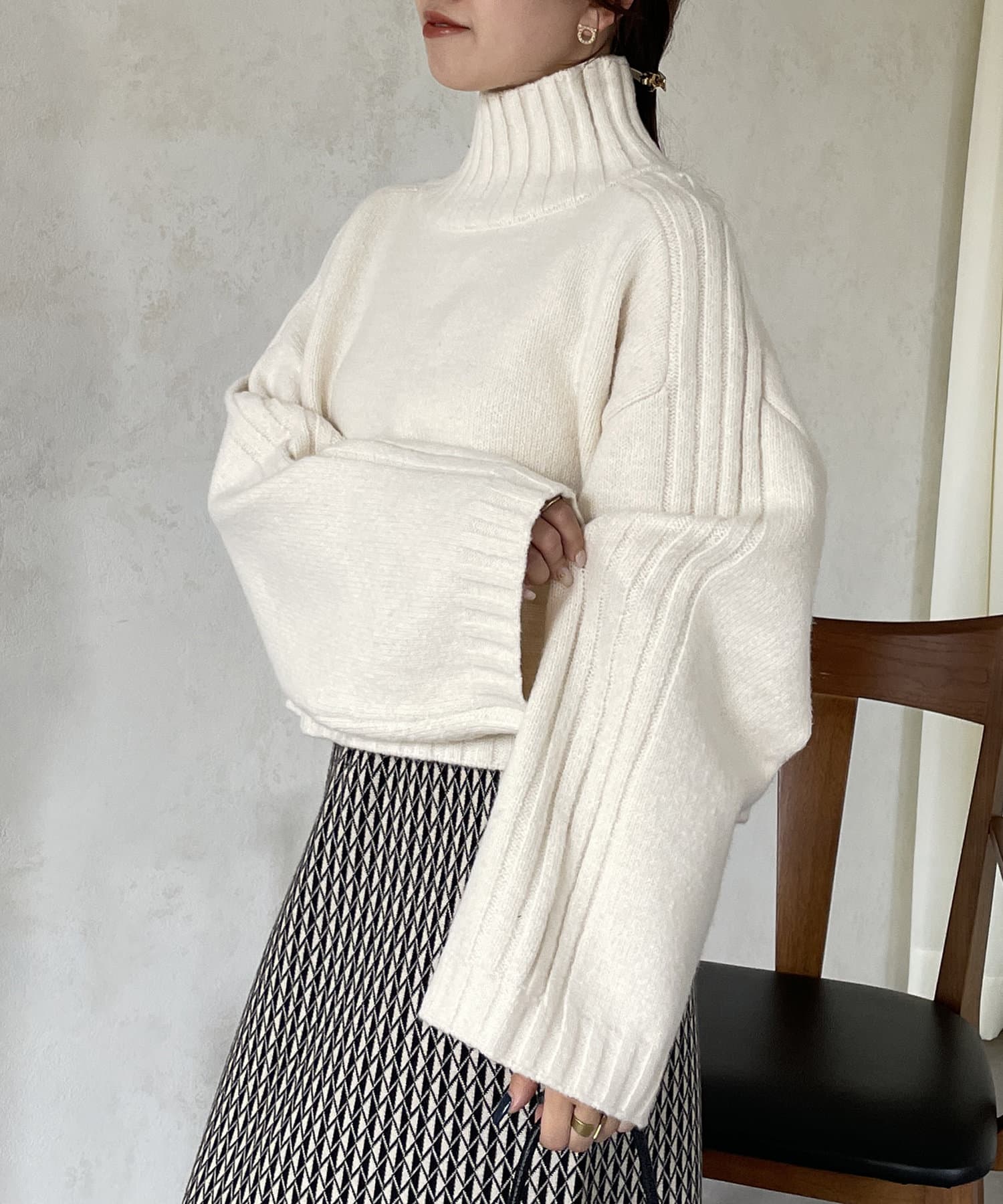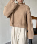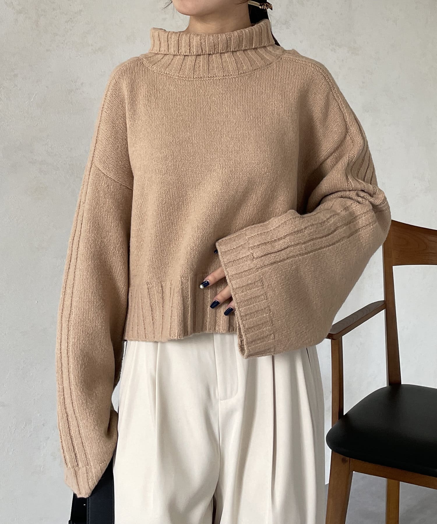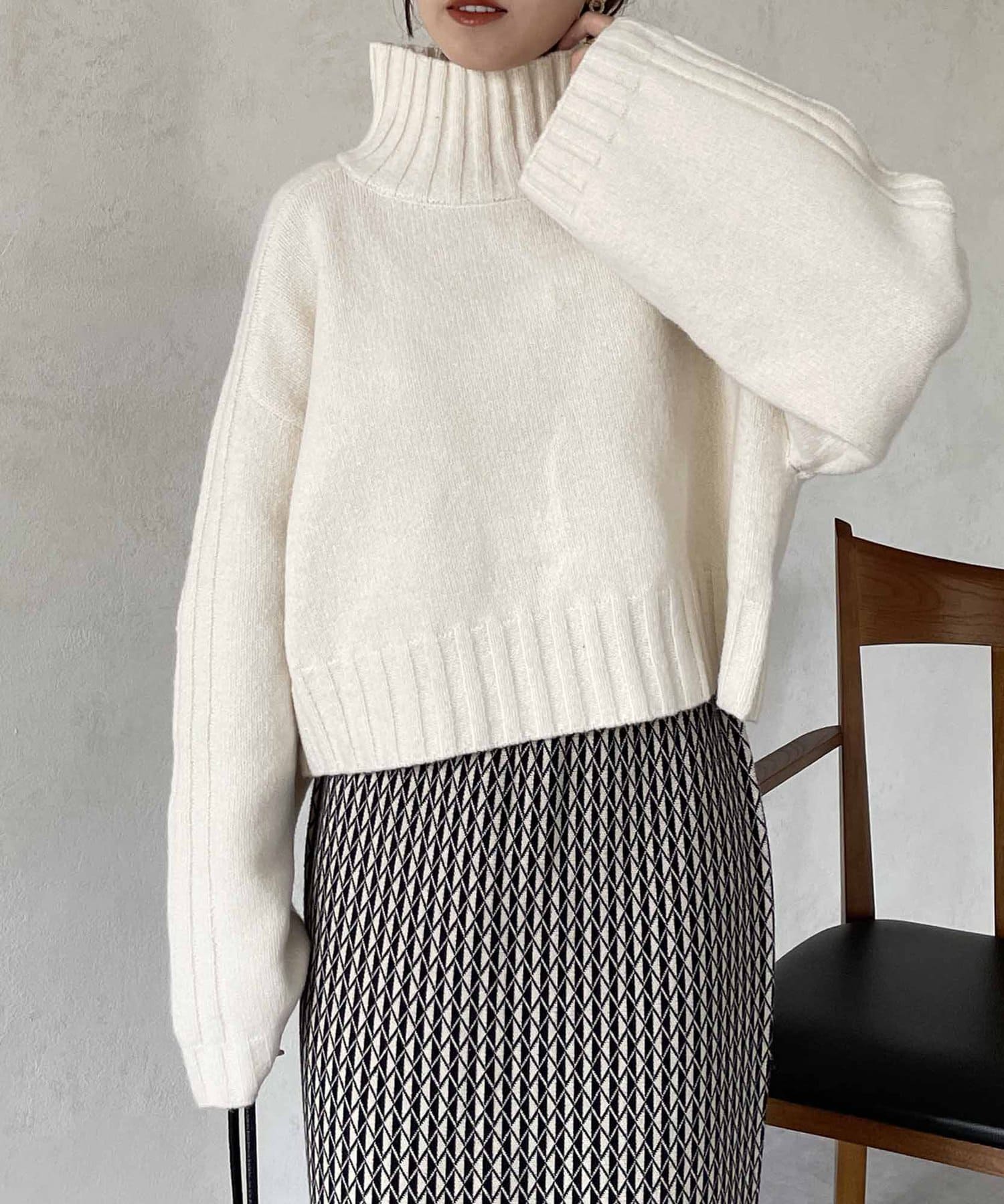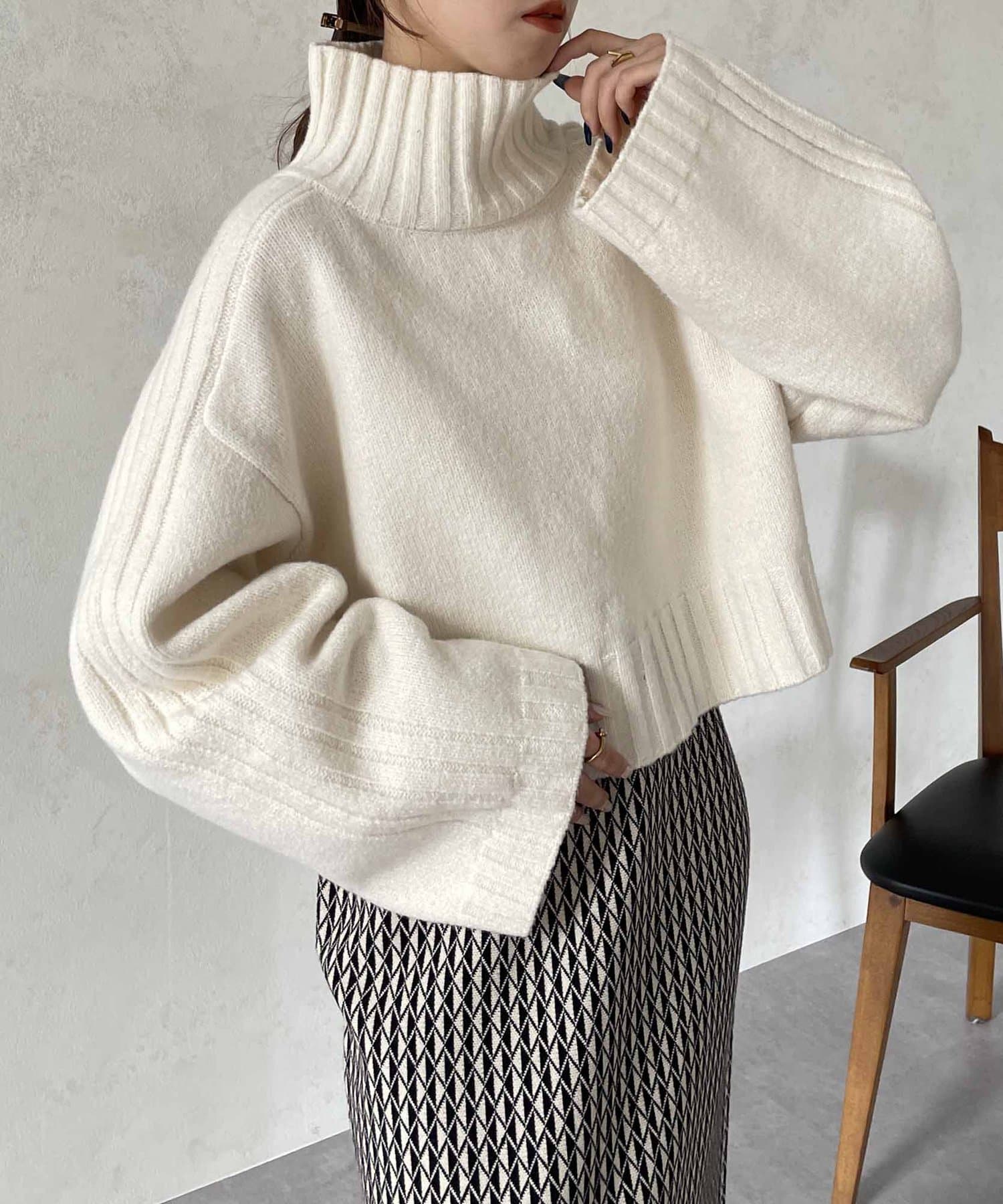 ハイネックワイドスリーブショートニット