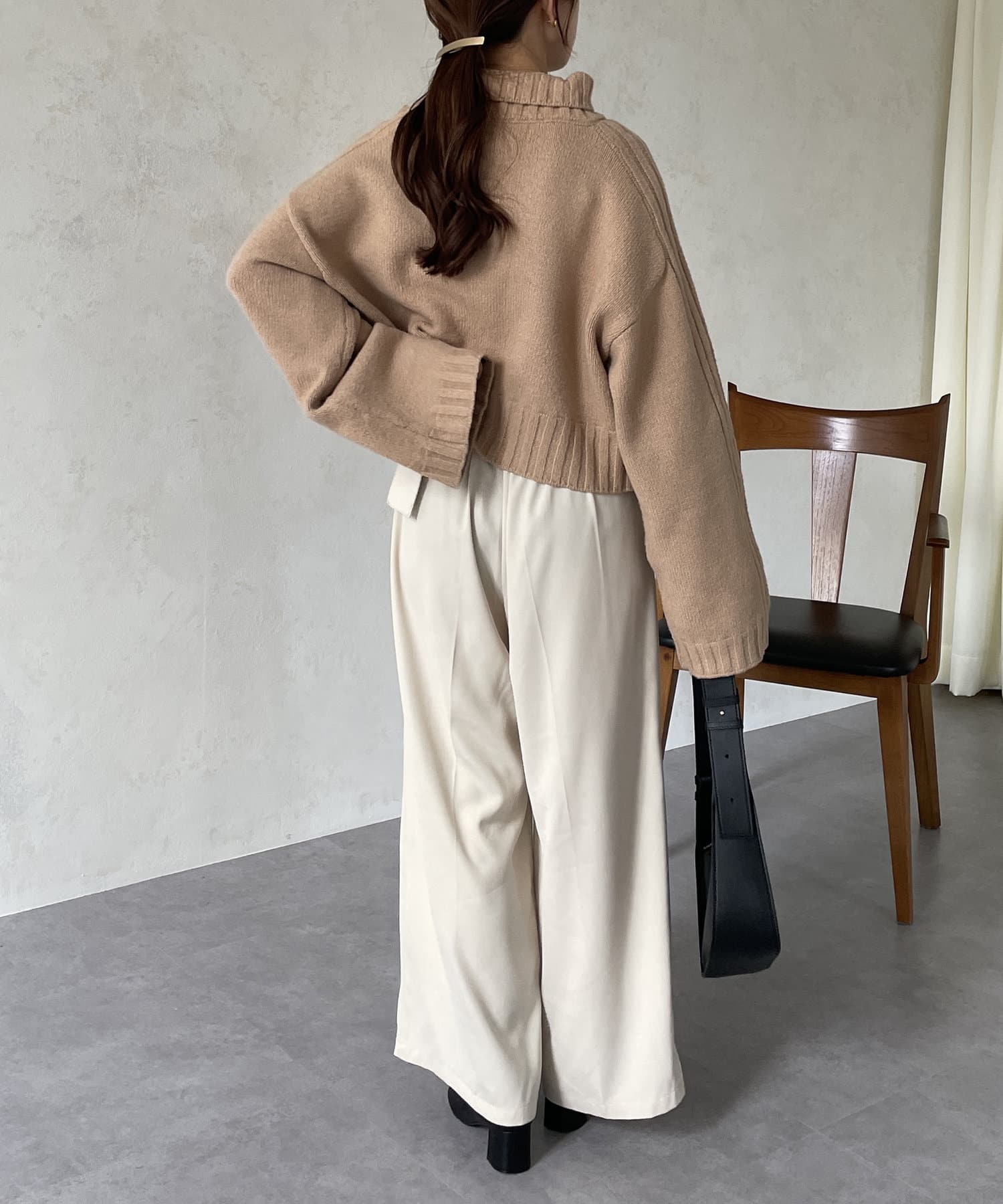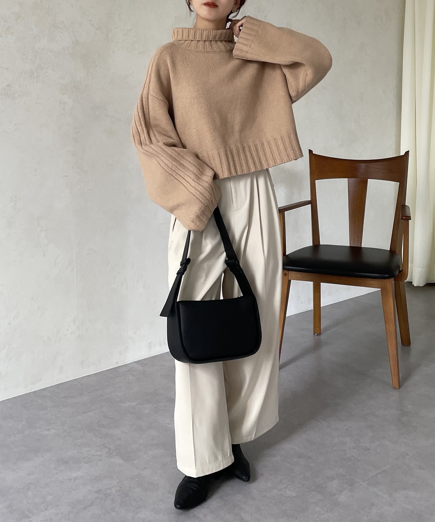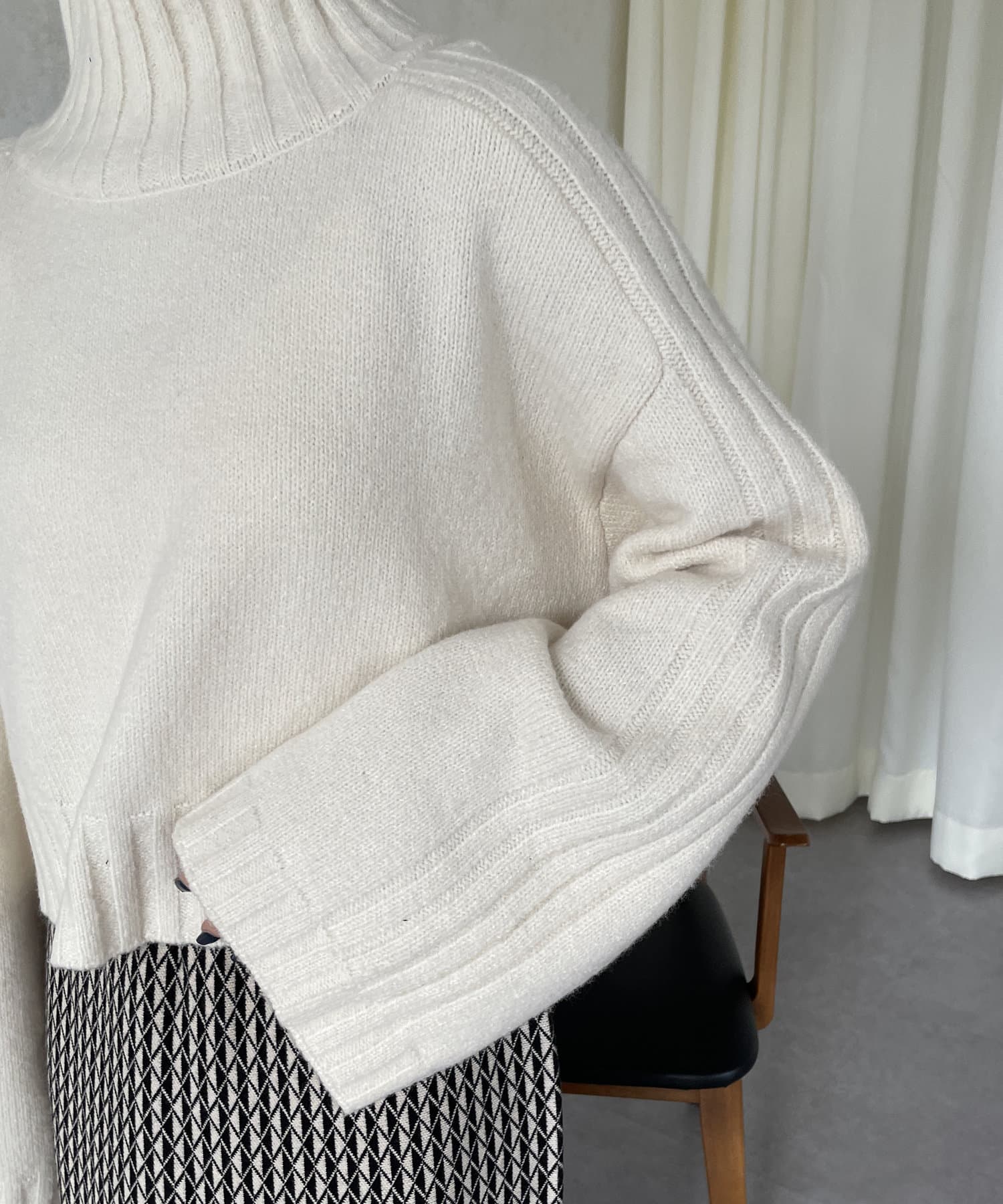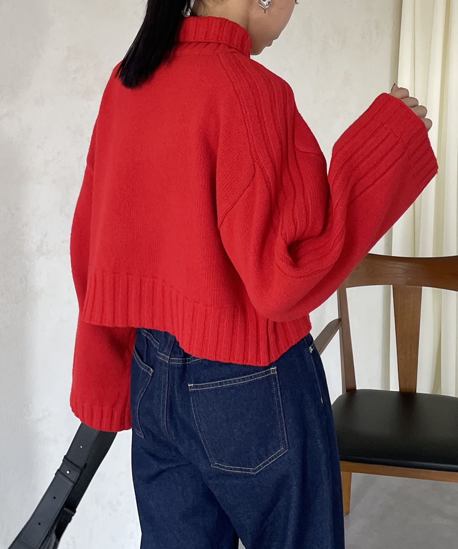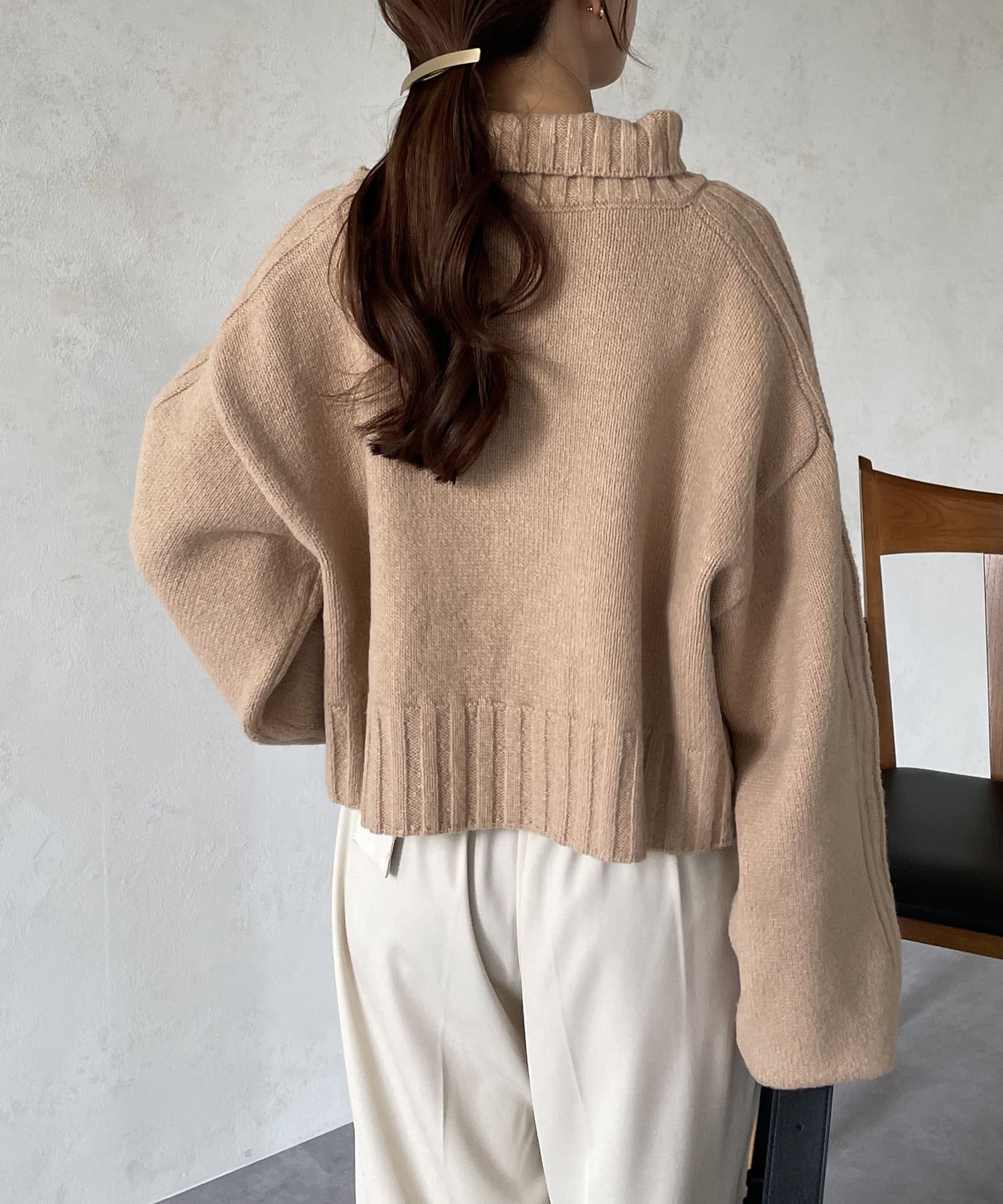ハイネックワイドスリーブショートニット