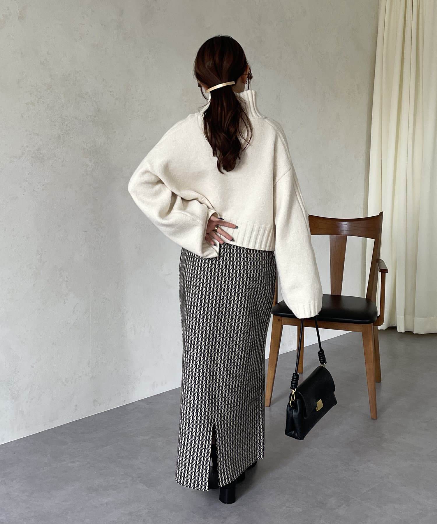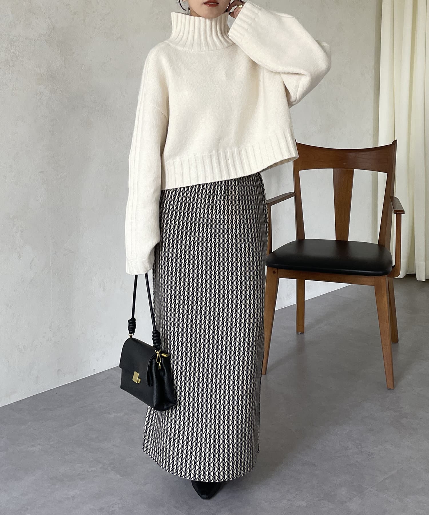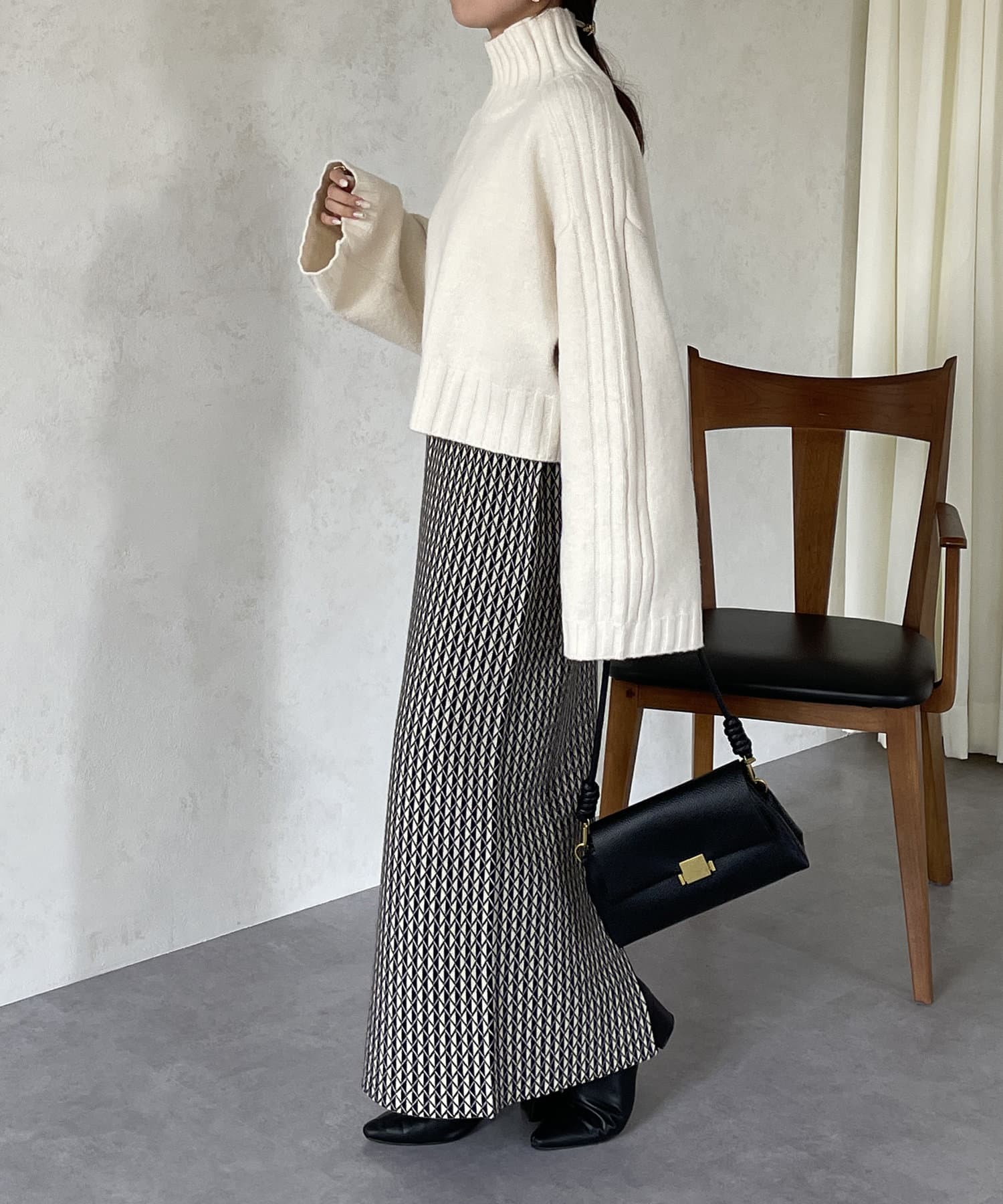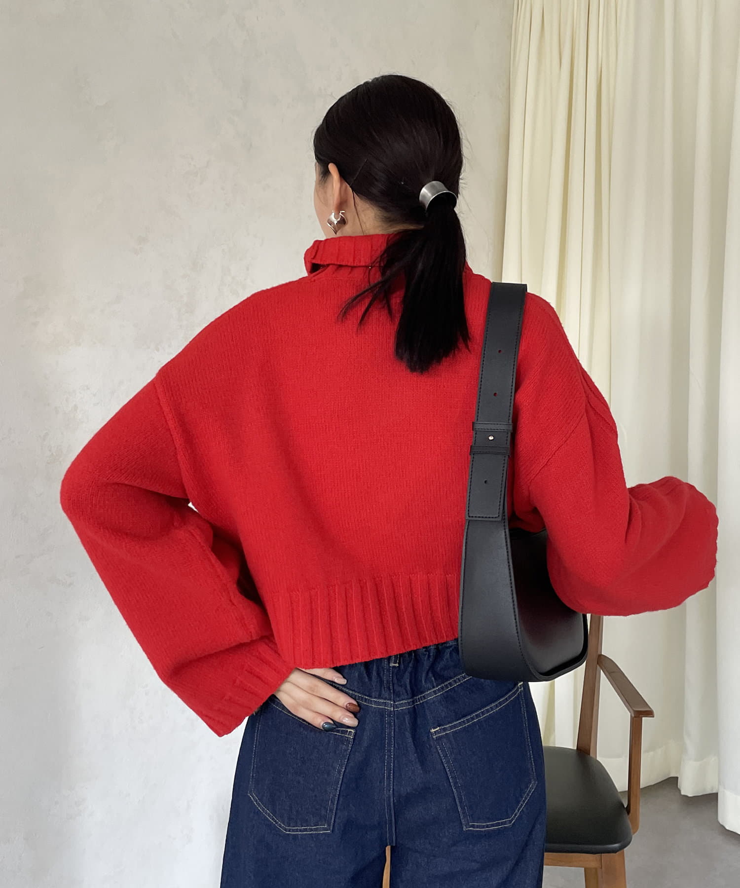 ハイネックワイドスリーブショートニット