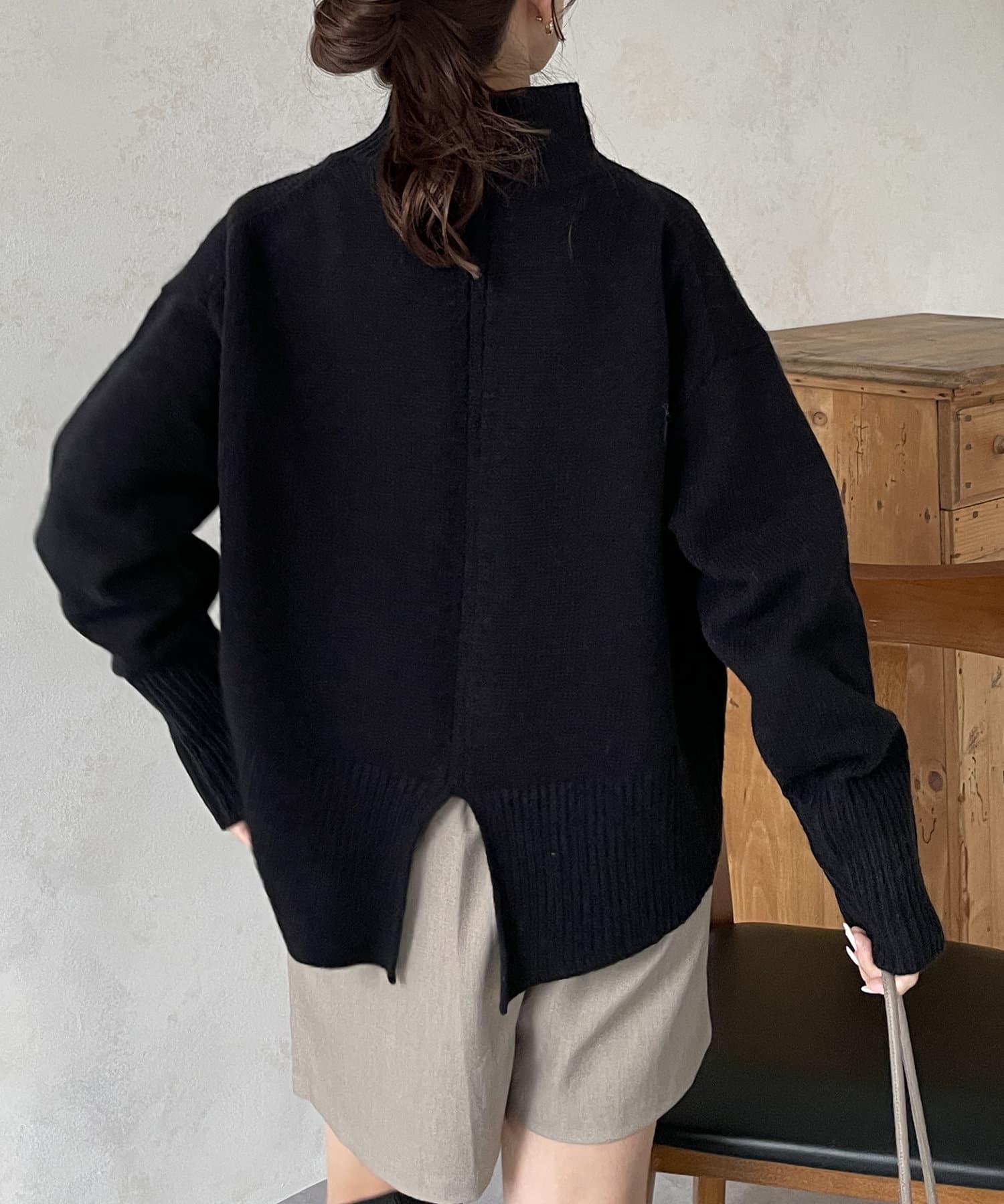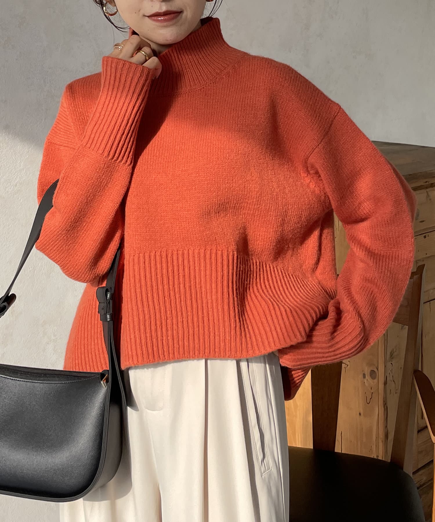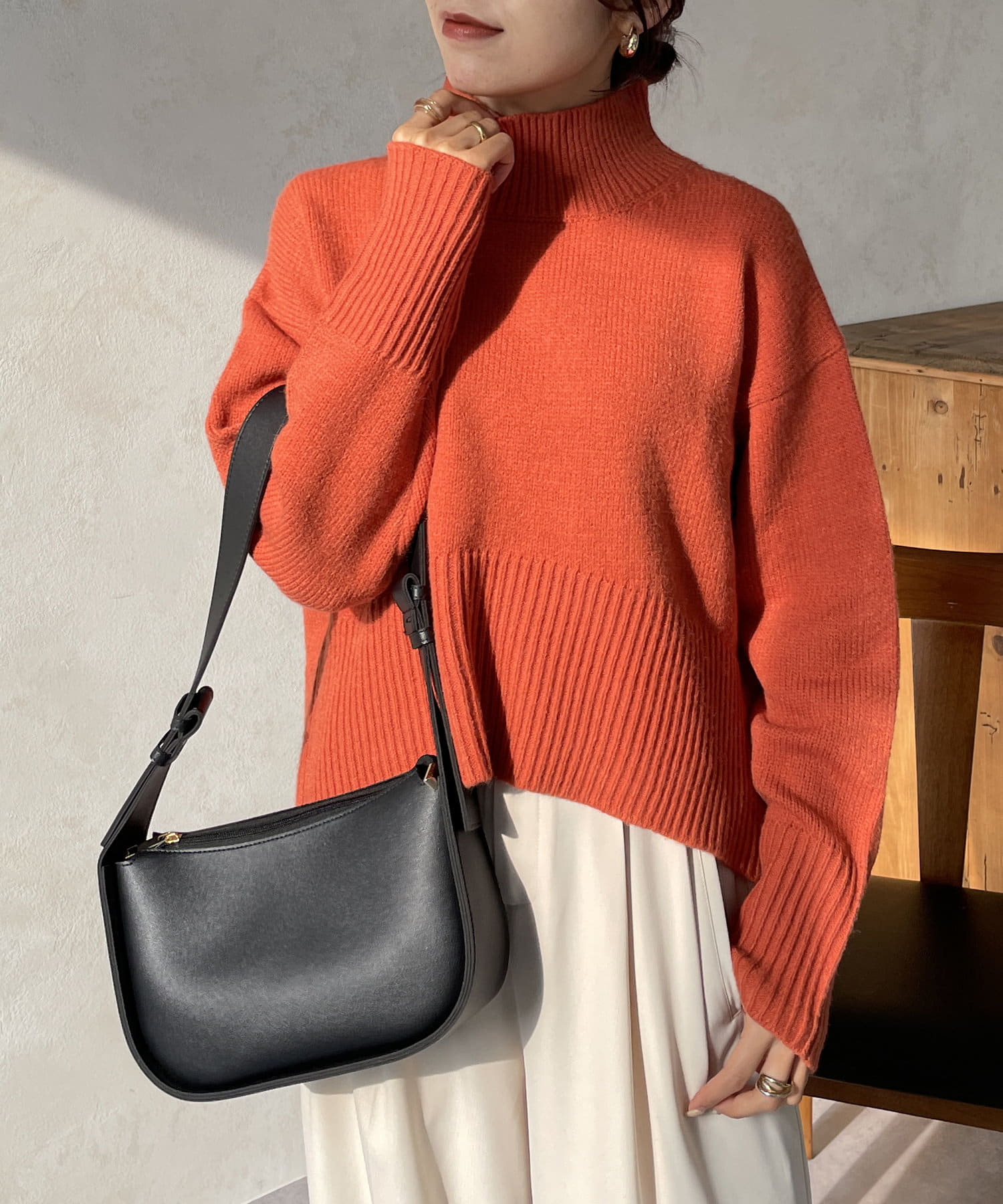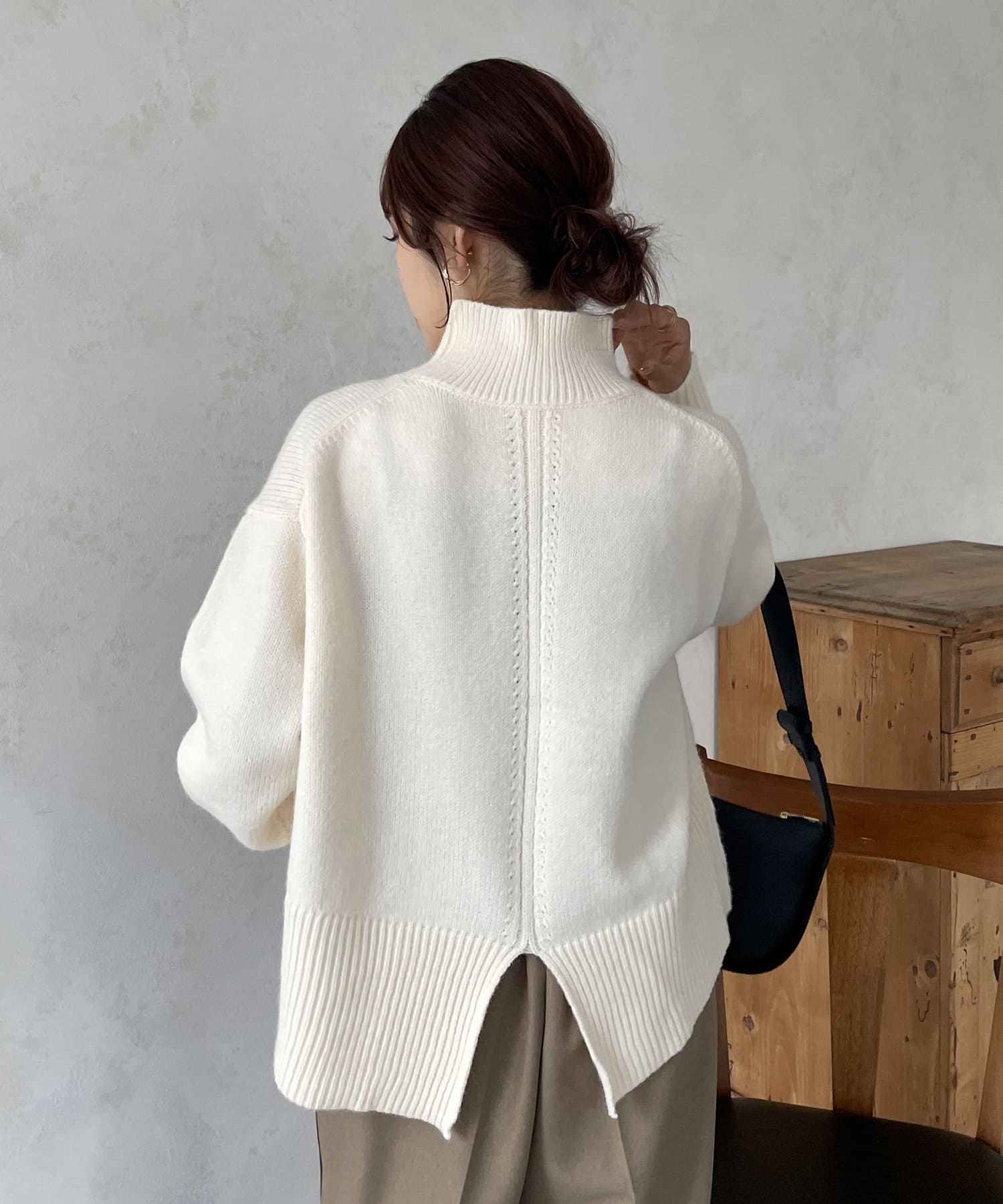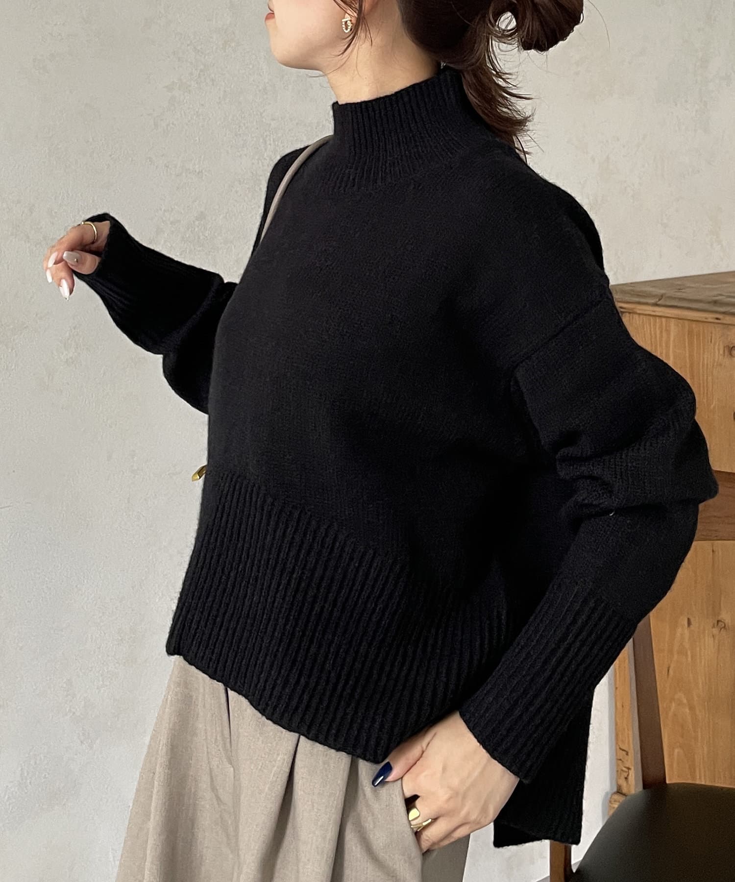 ・シンプルながらトレンド感のあるルーズニットは