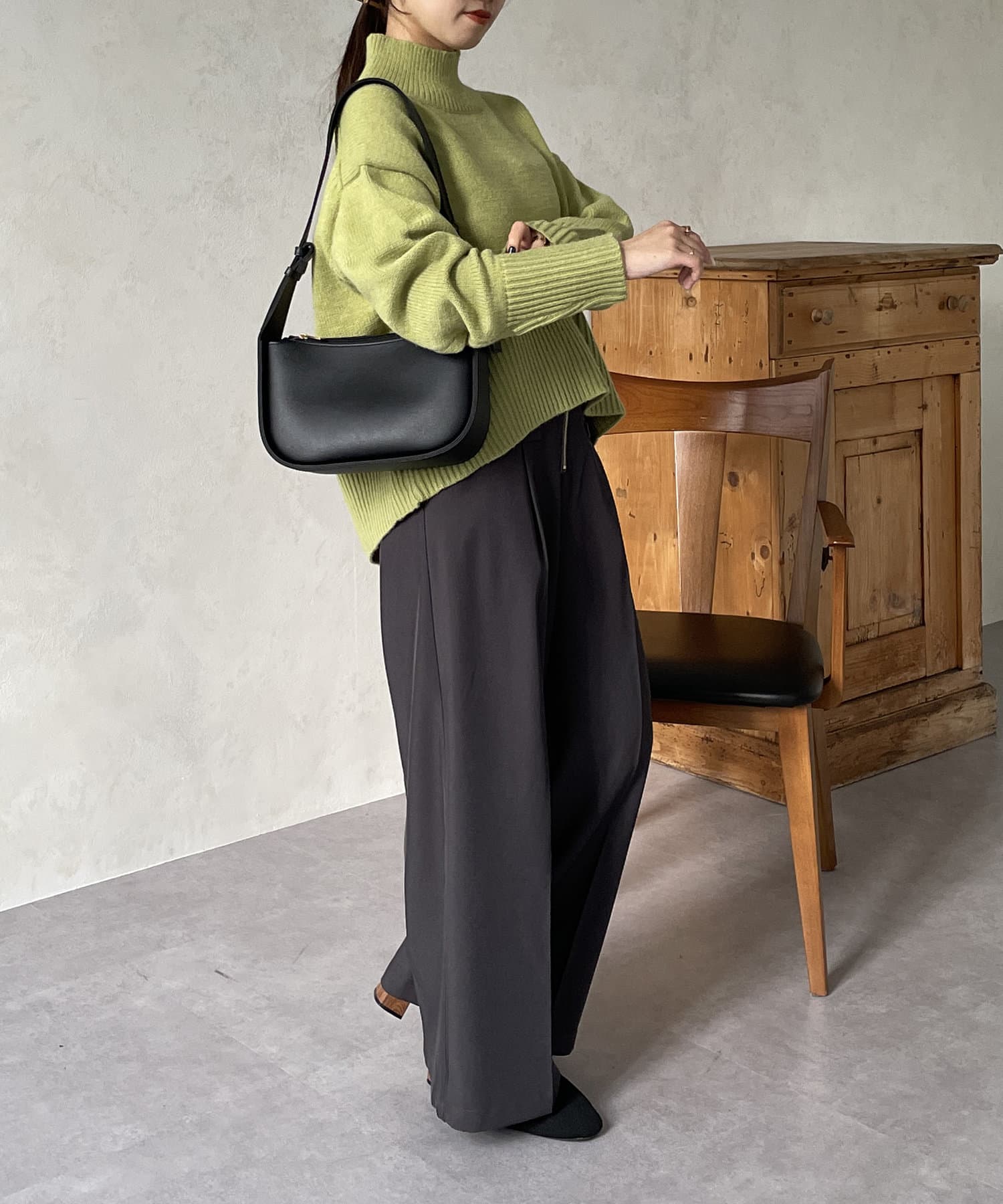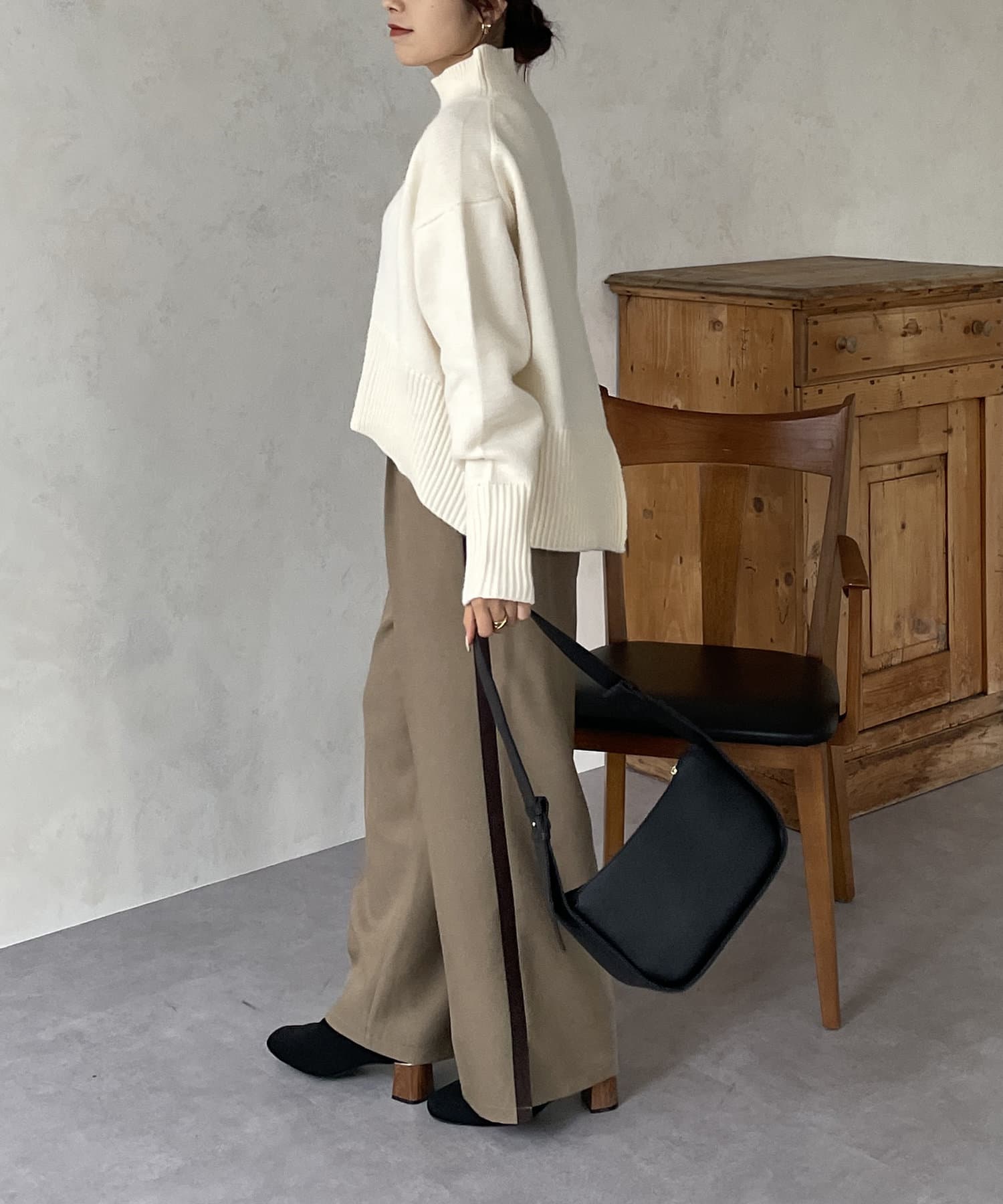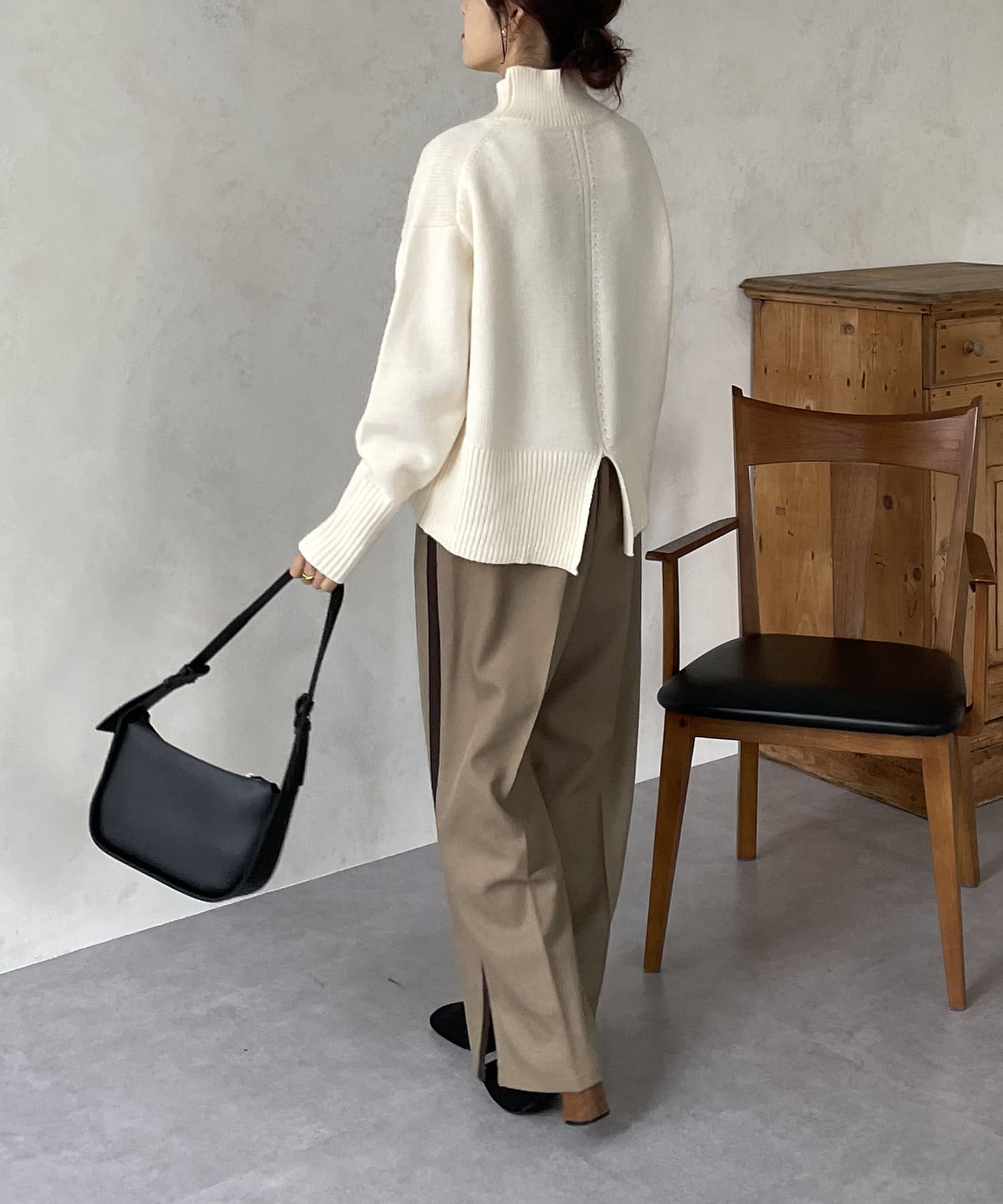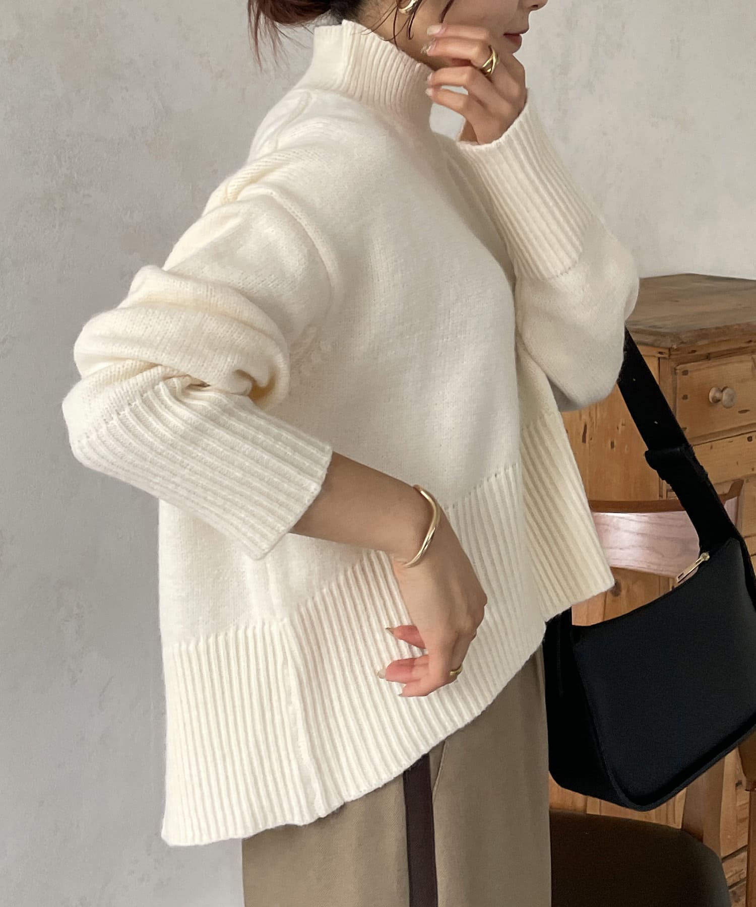 ・シンプルながらトレンド感のあるルーズニットは