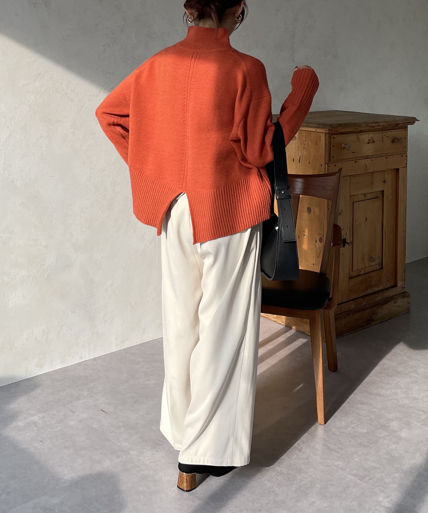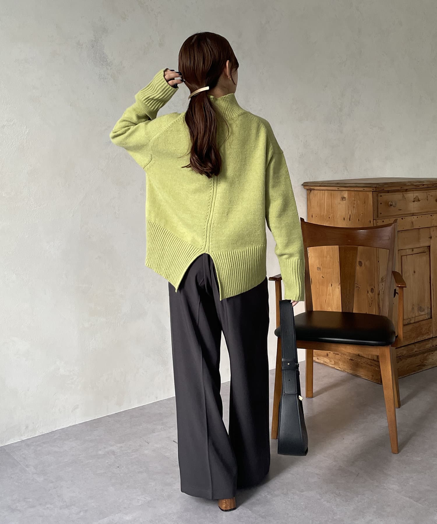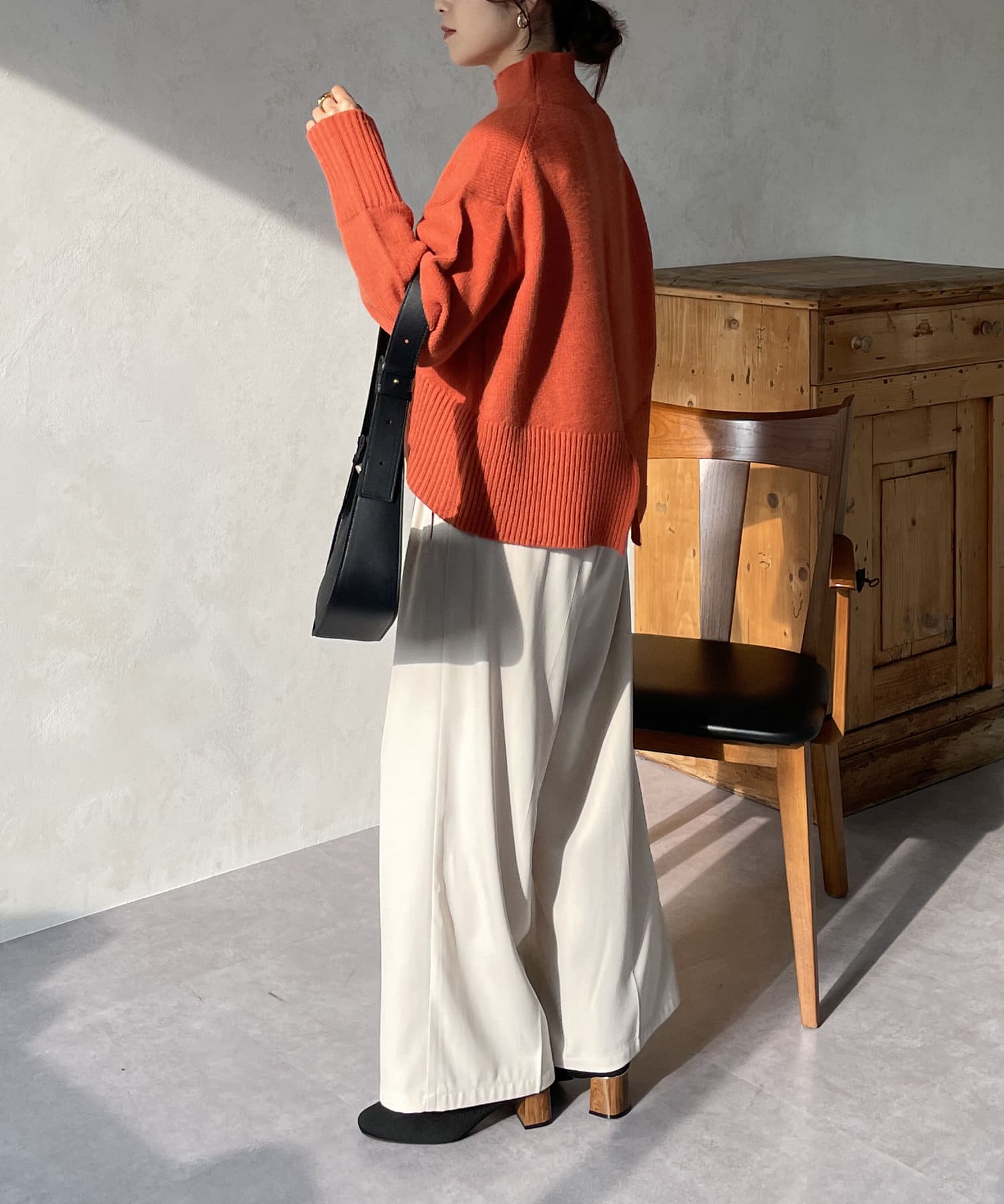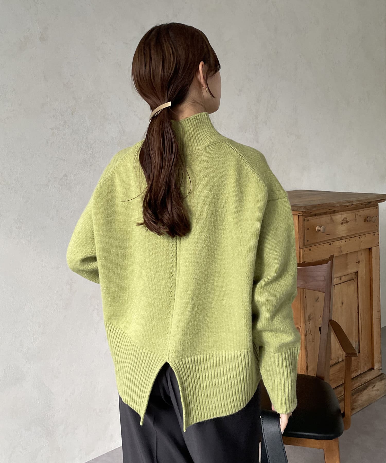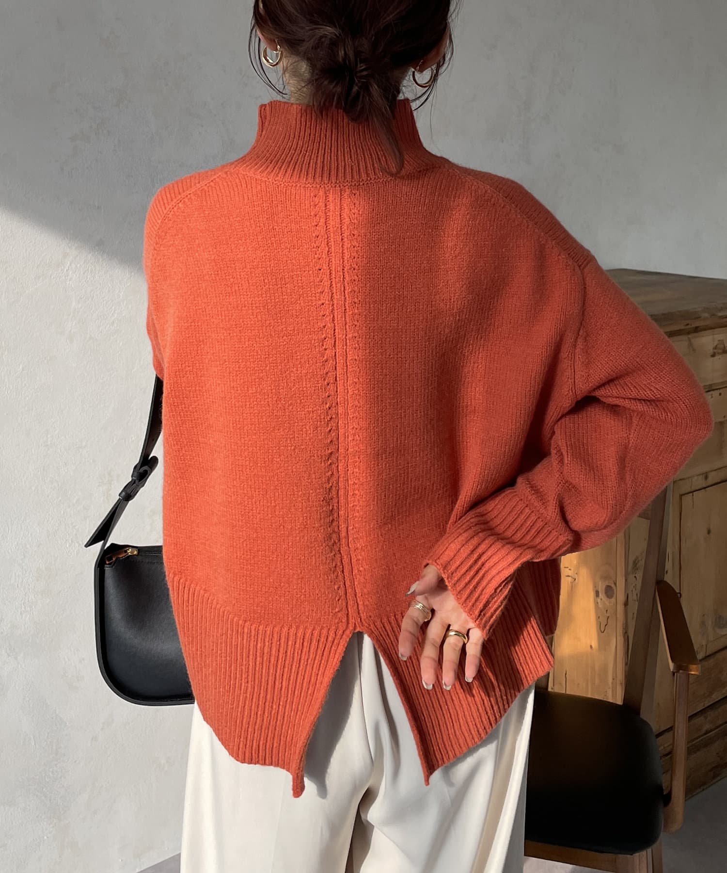 ・シンプルながらトレンド感のあるルーズニットは