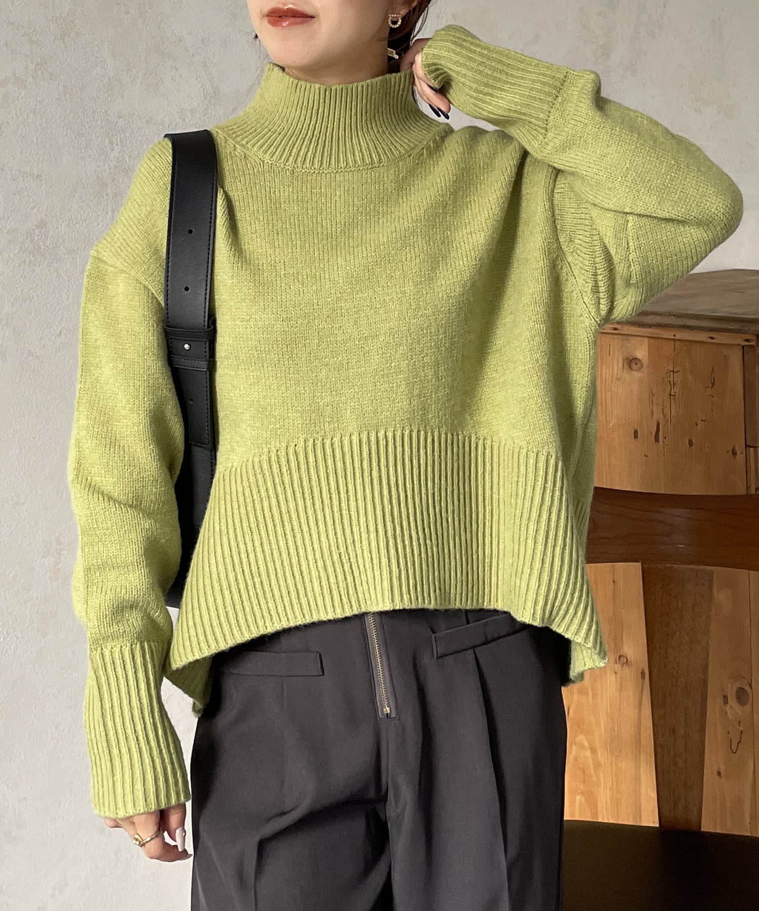 ハイネックショート丈ニット