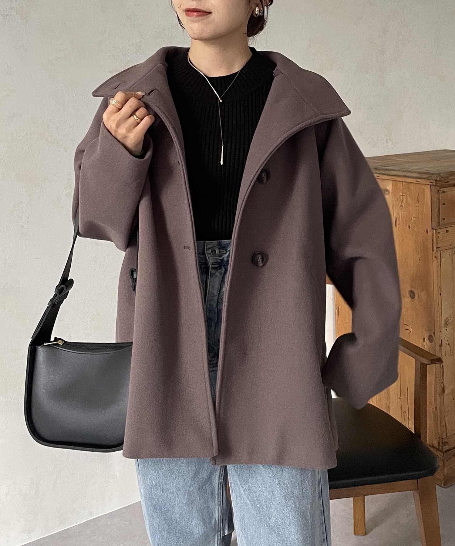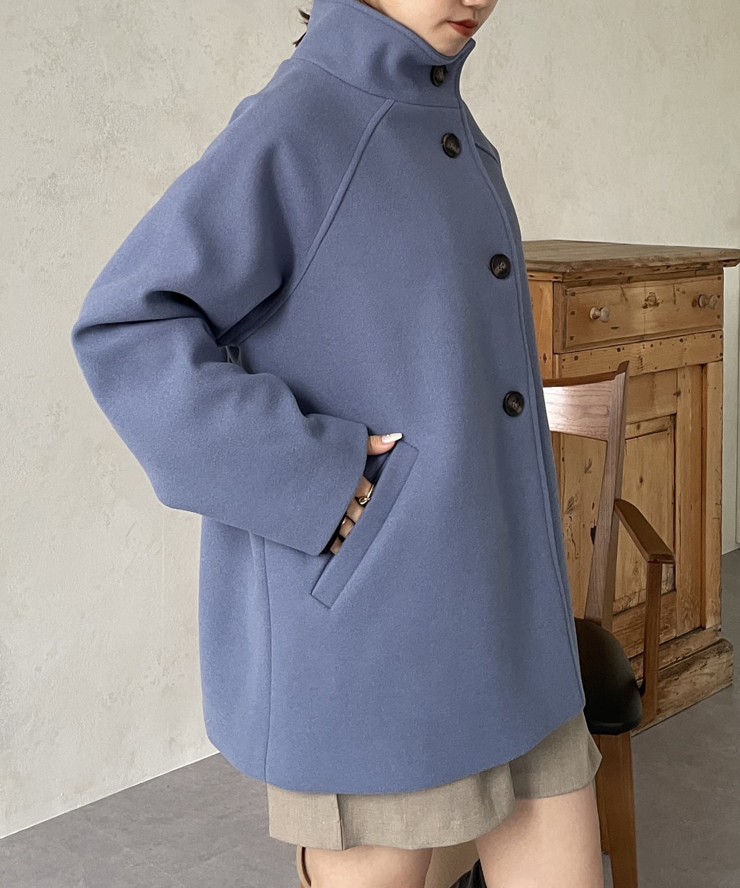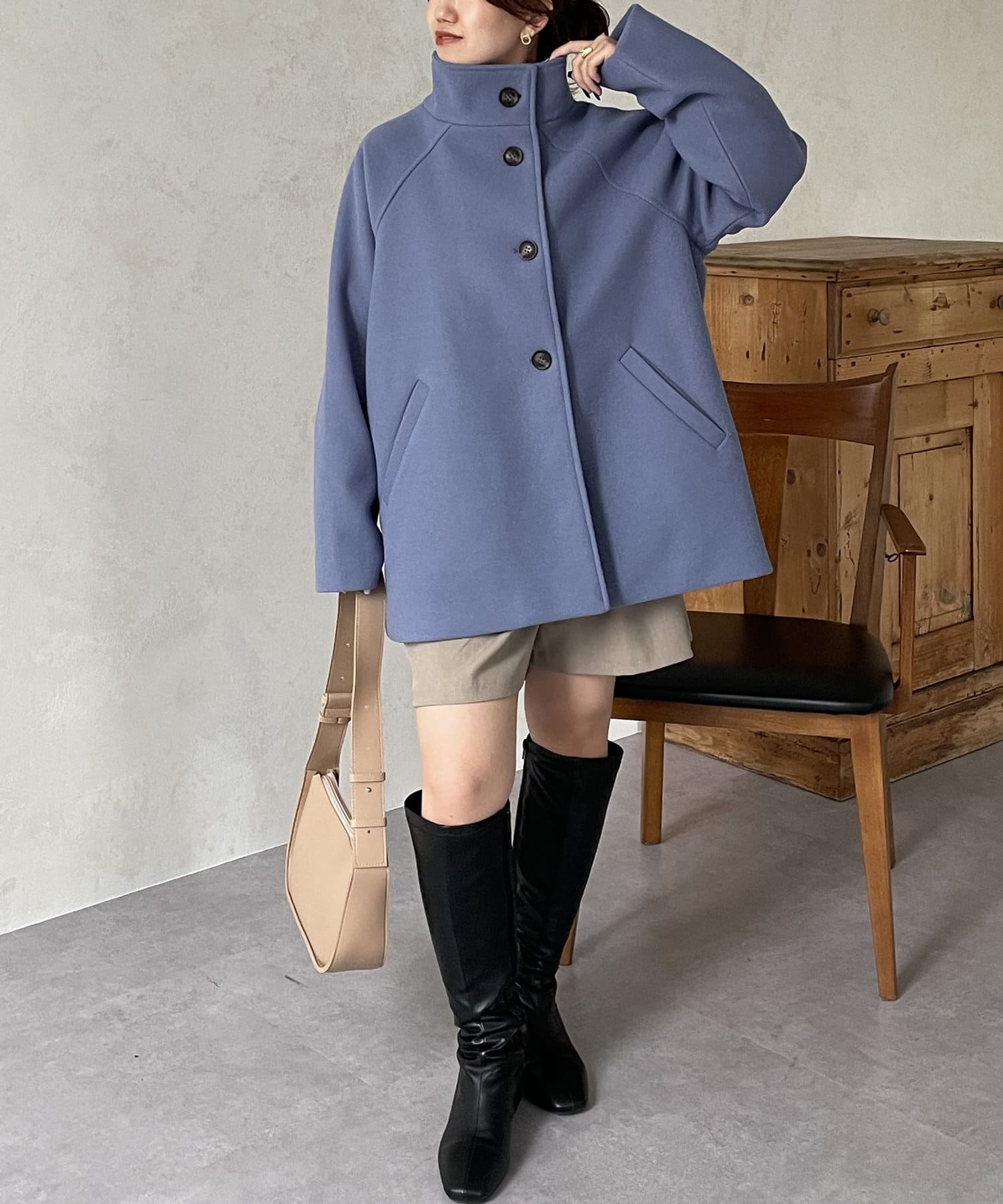 オンオフ問わず使えるスタンドネックコート