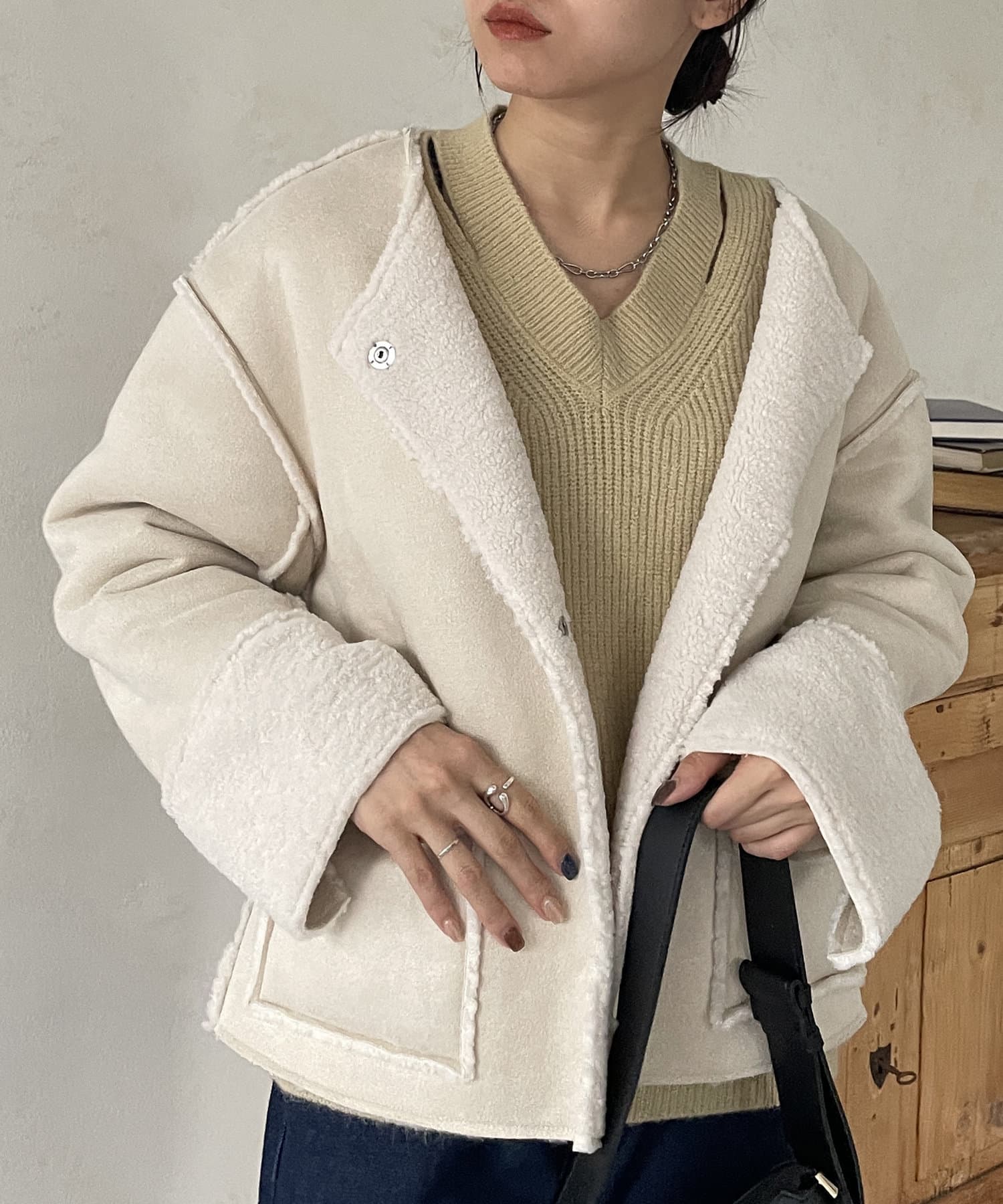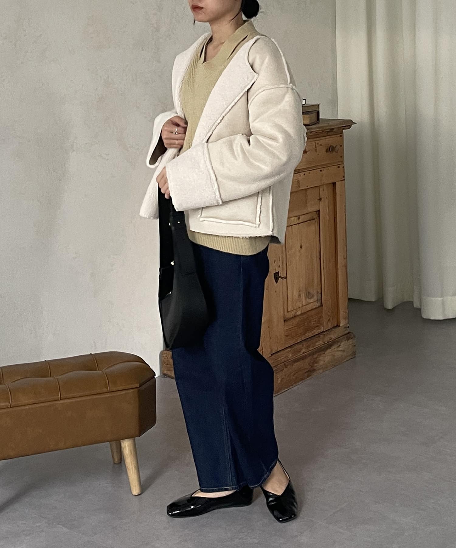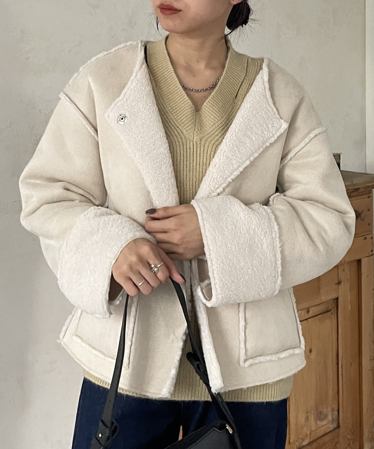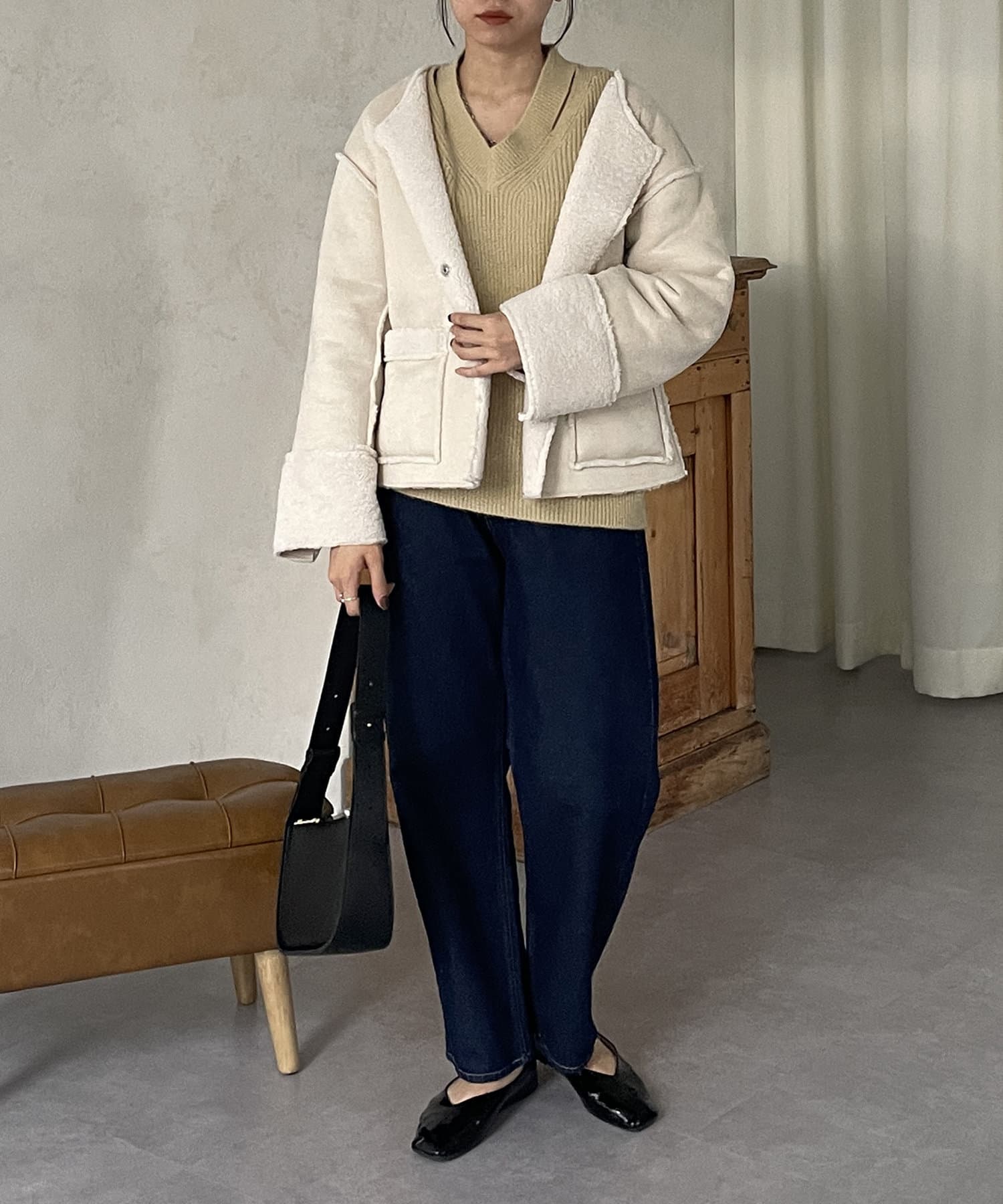 #冬アウター #ムートン #カジュアル #キレイめ #Thevon_jacket