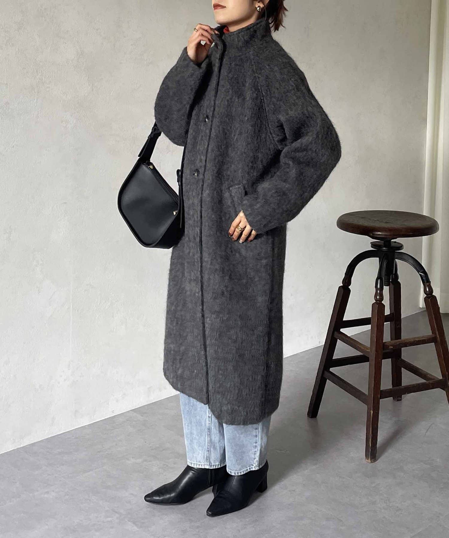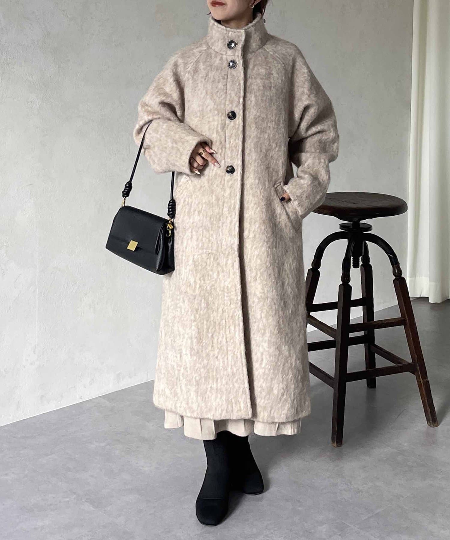 最旬のシャギー×スタンドカラーコート