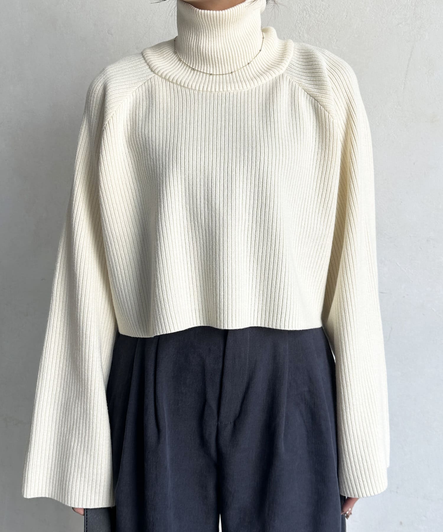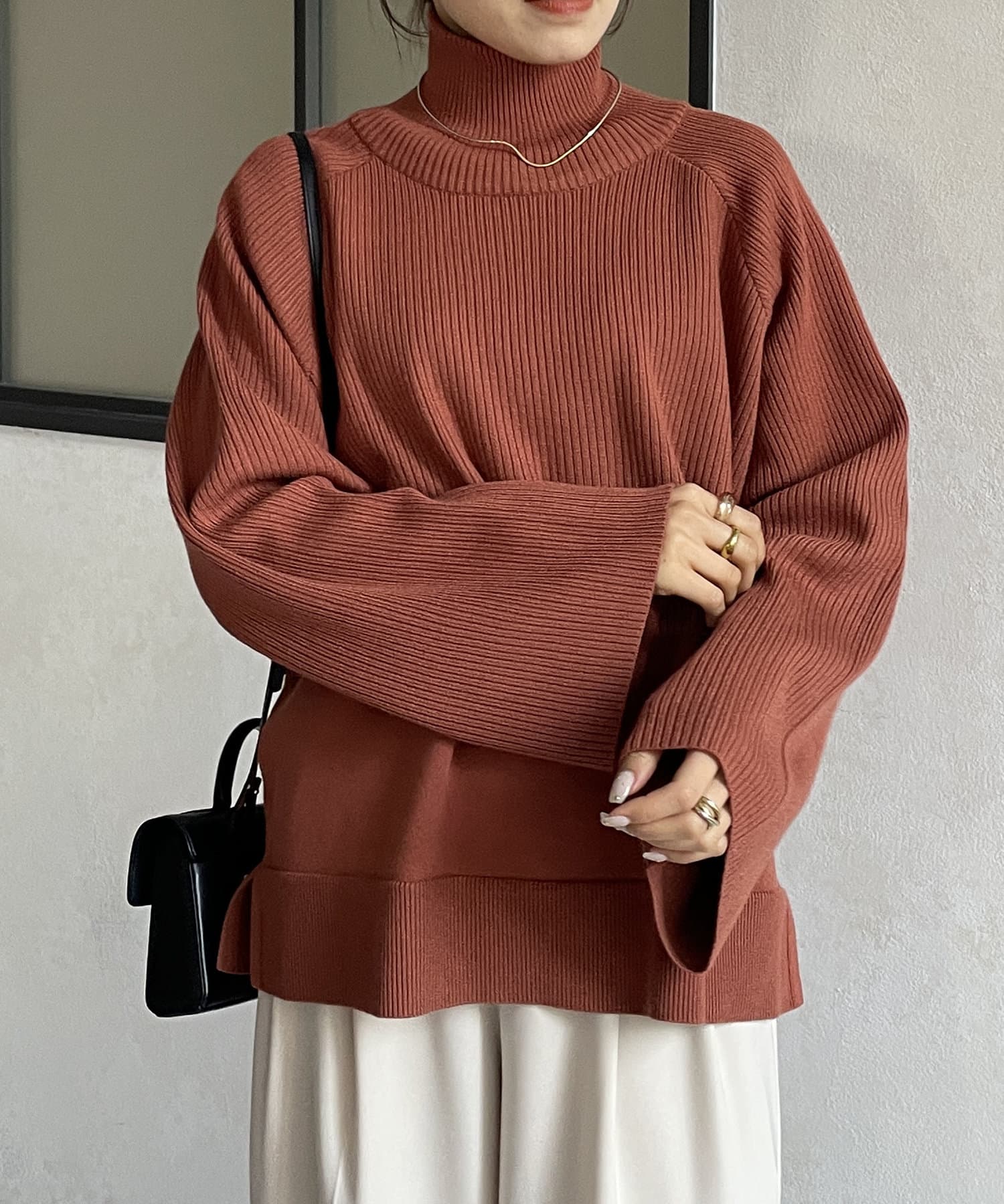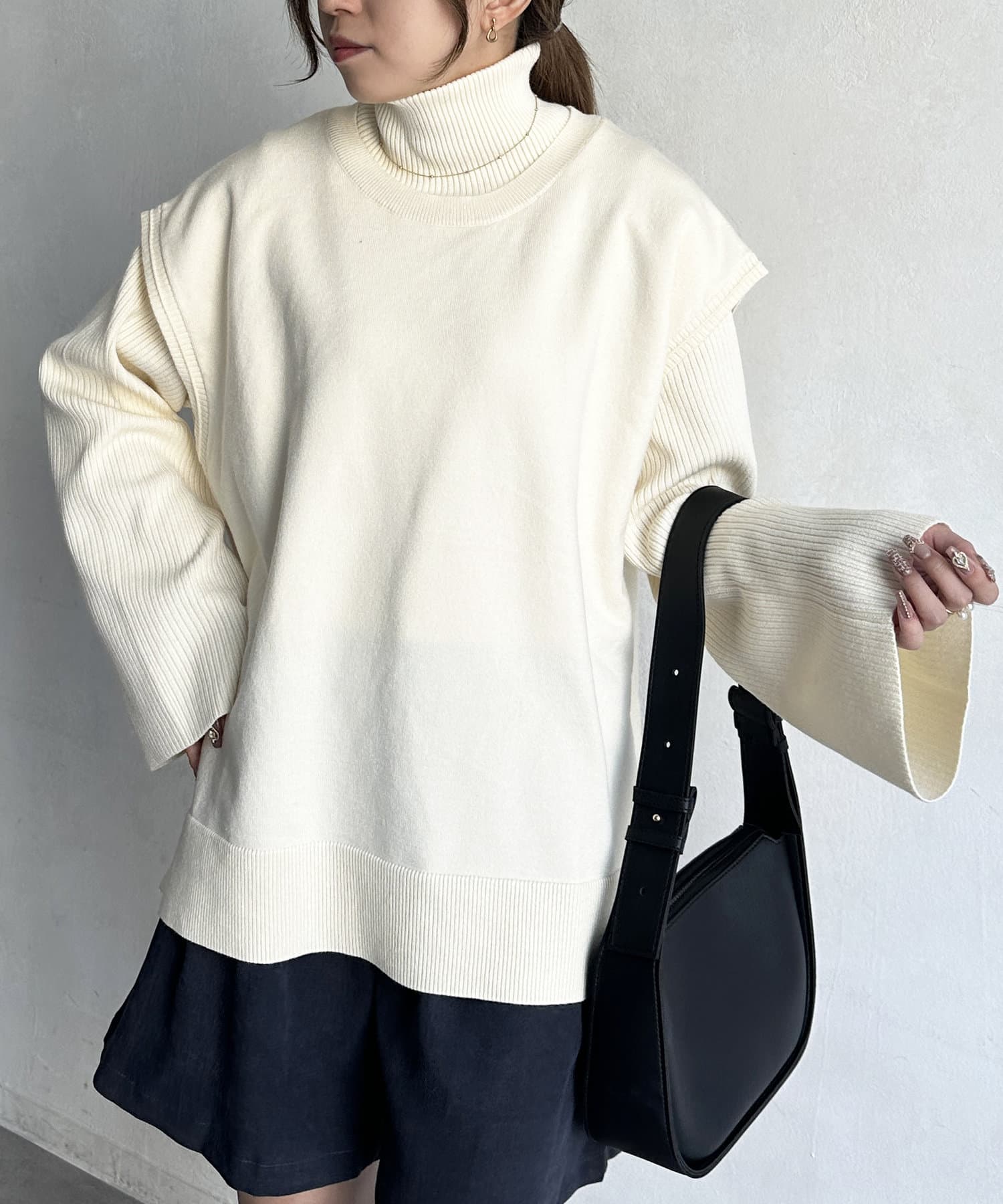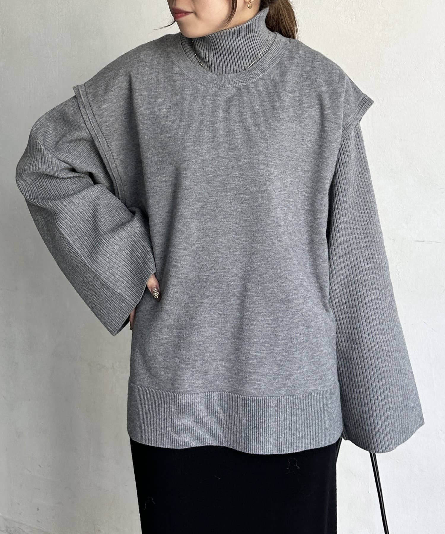 ・短丈×ワイドスリーブのトレンド感のあるニットと