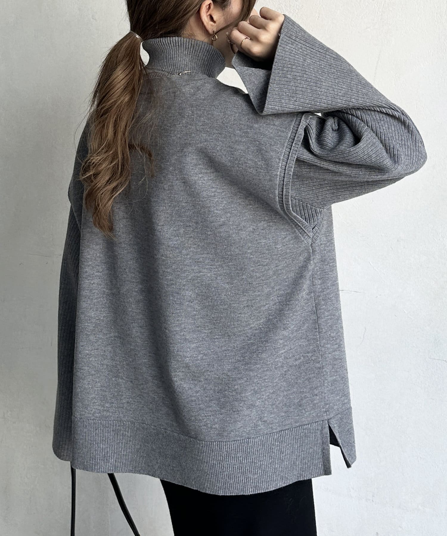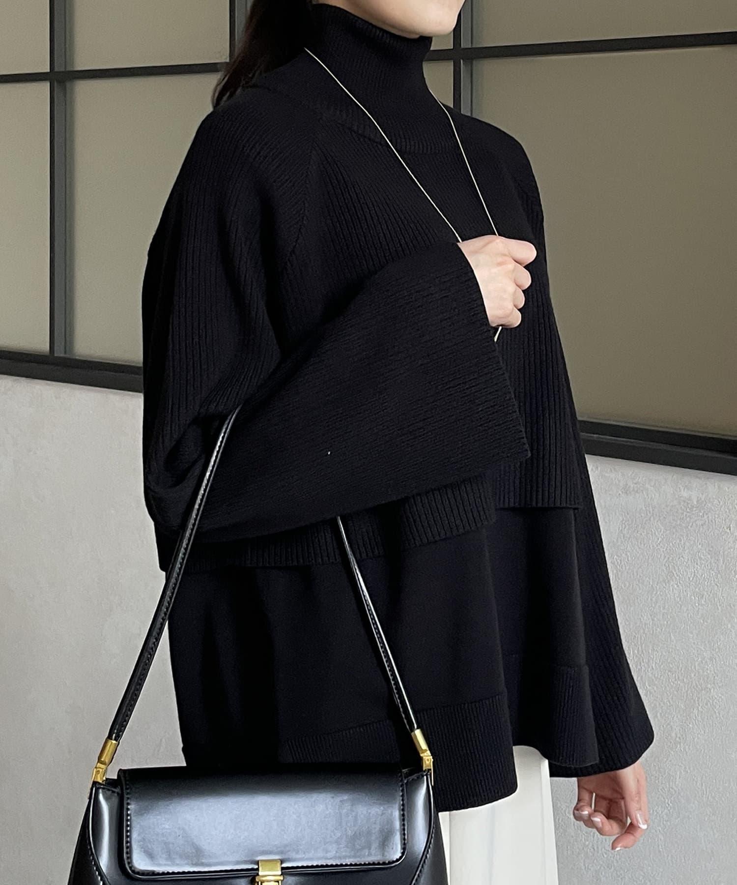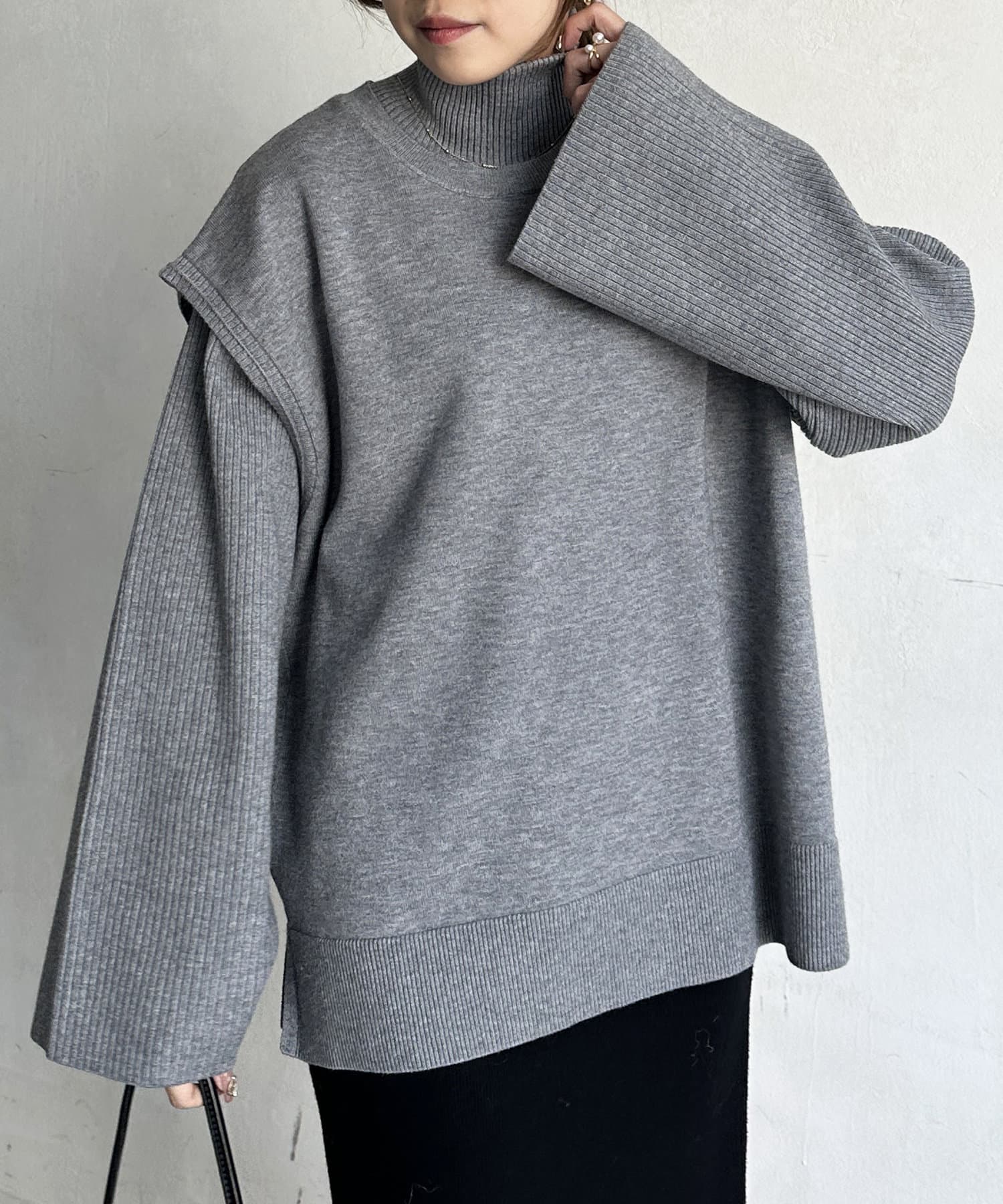 ・短丈×ワイドスリーブのトレンド感のあるニットと