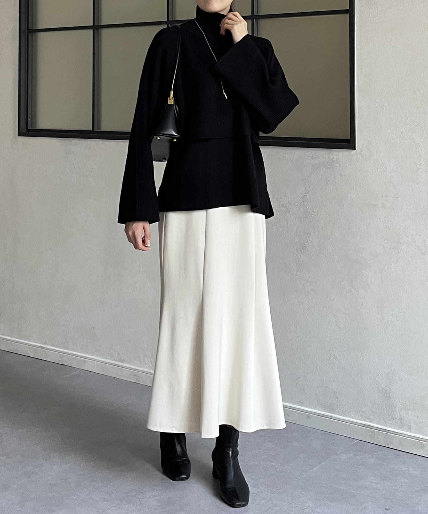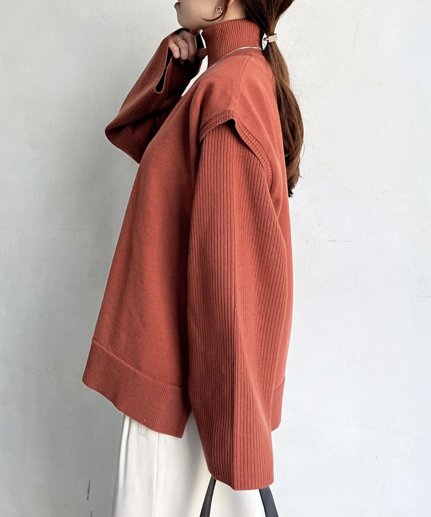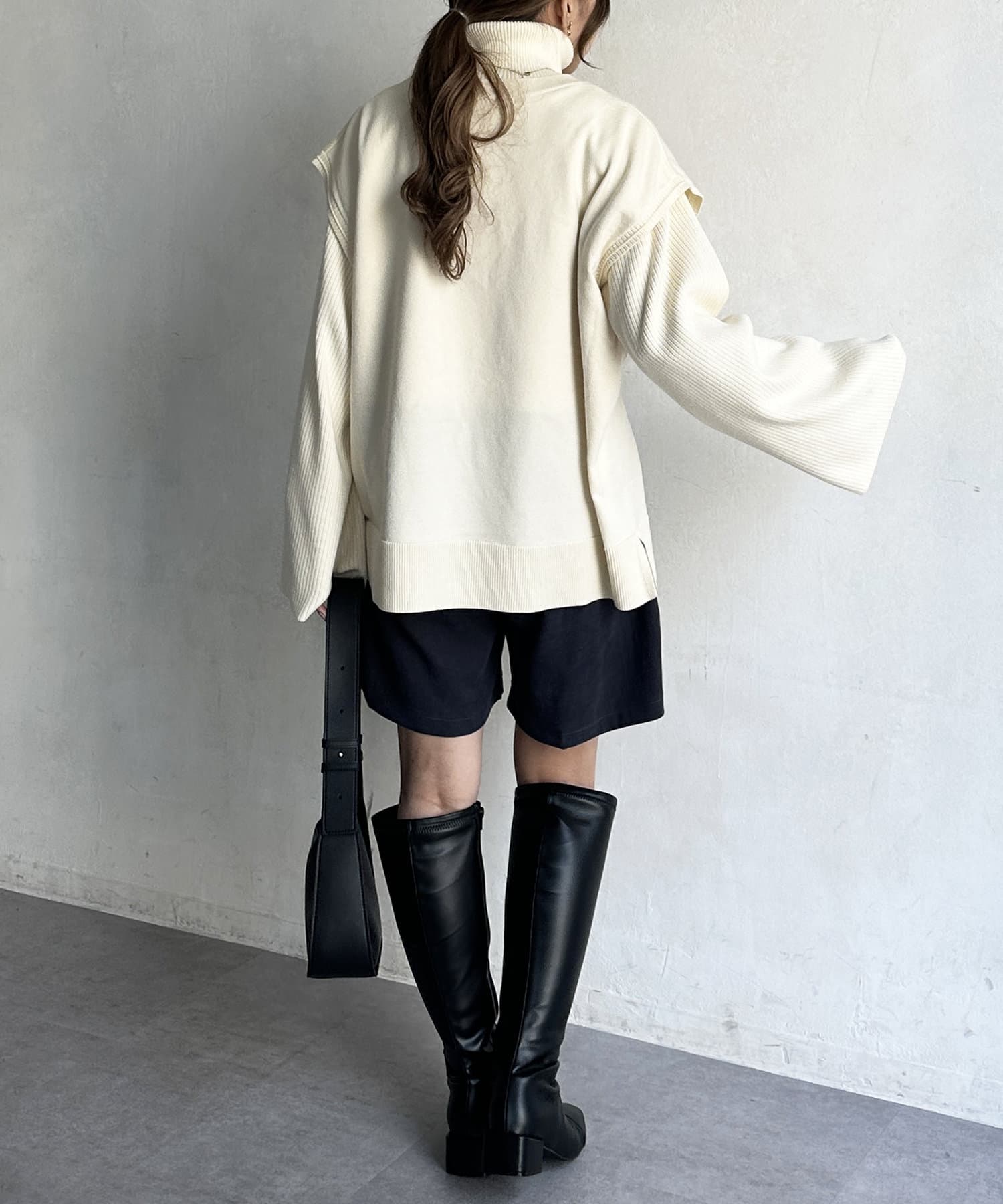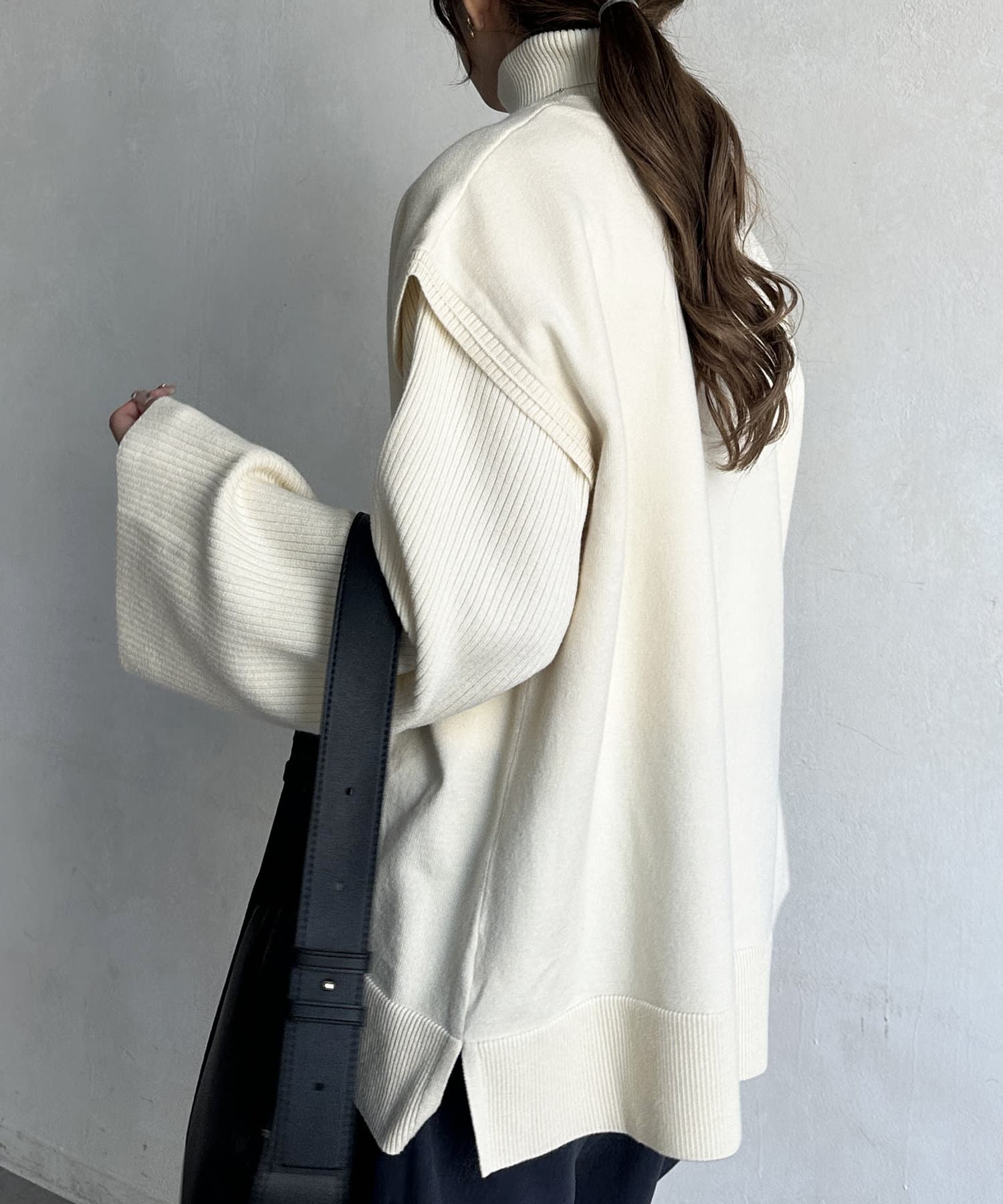 ・短丈×ワイドスリーブのトレンド感のあるニットと