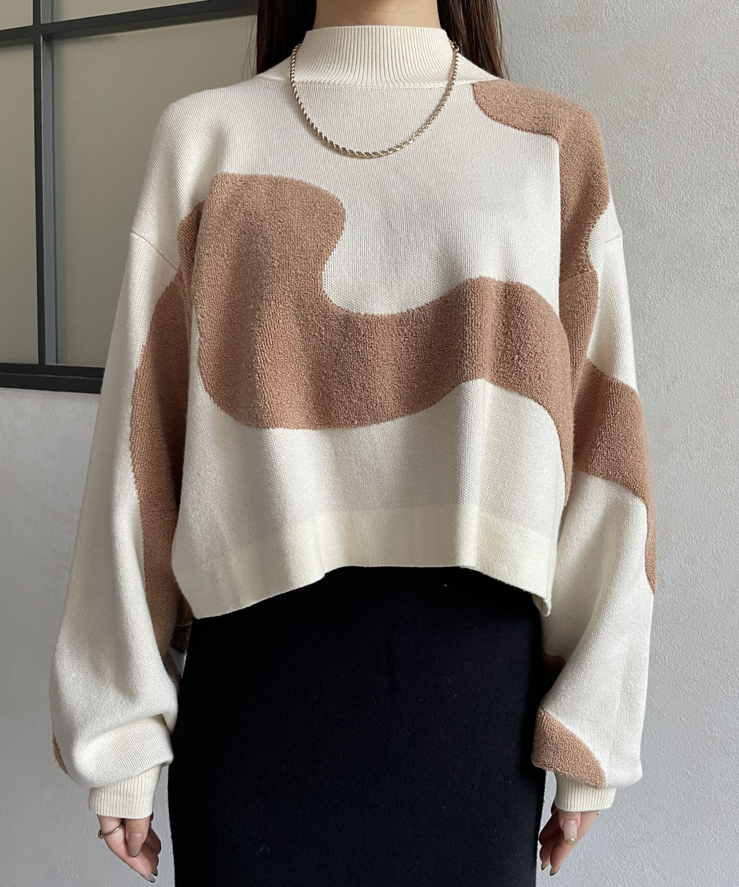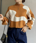 ウェーブラインがアクセントのショート丈ニット