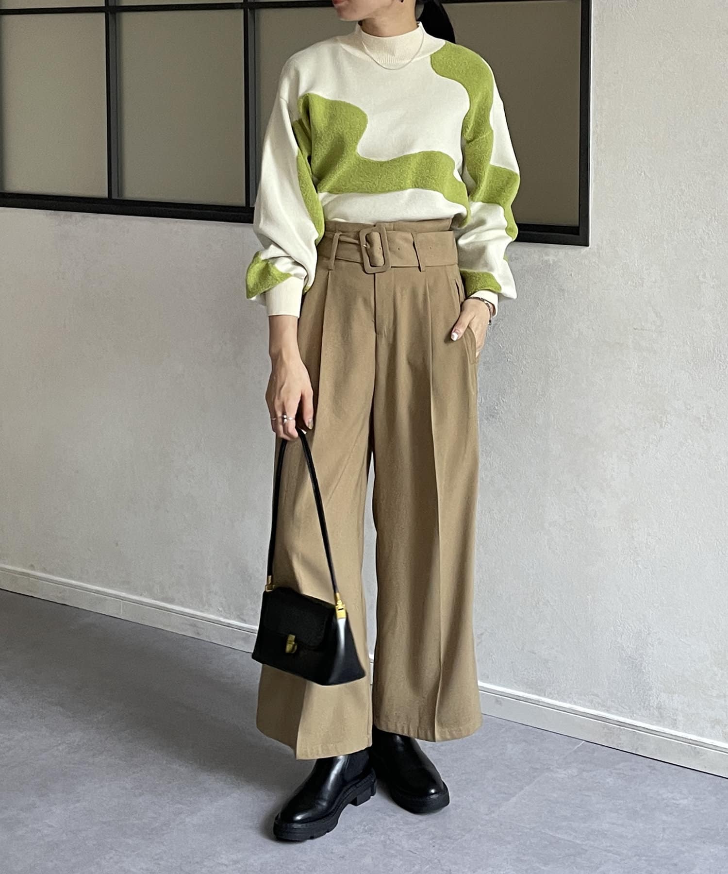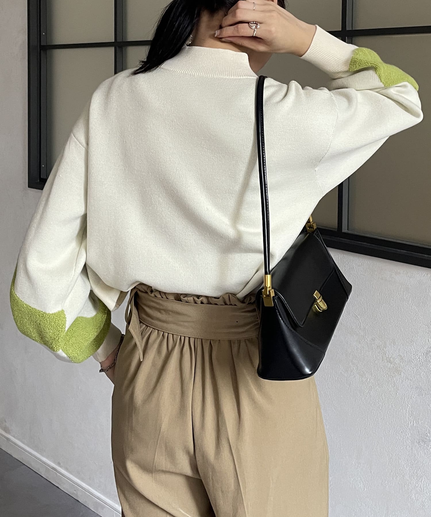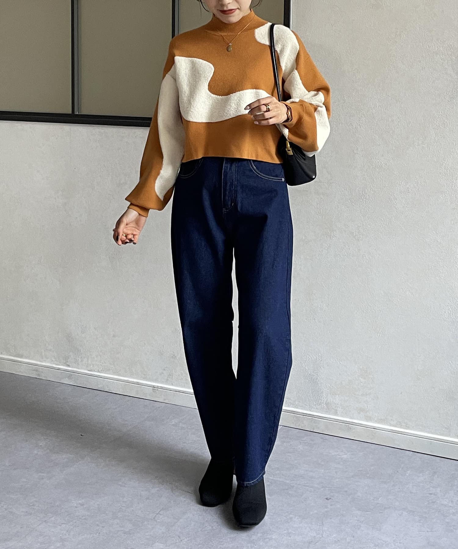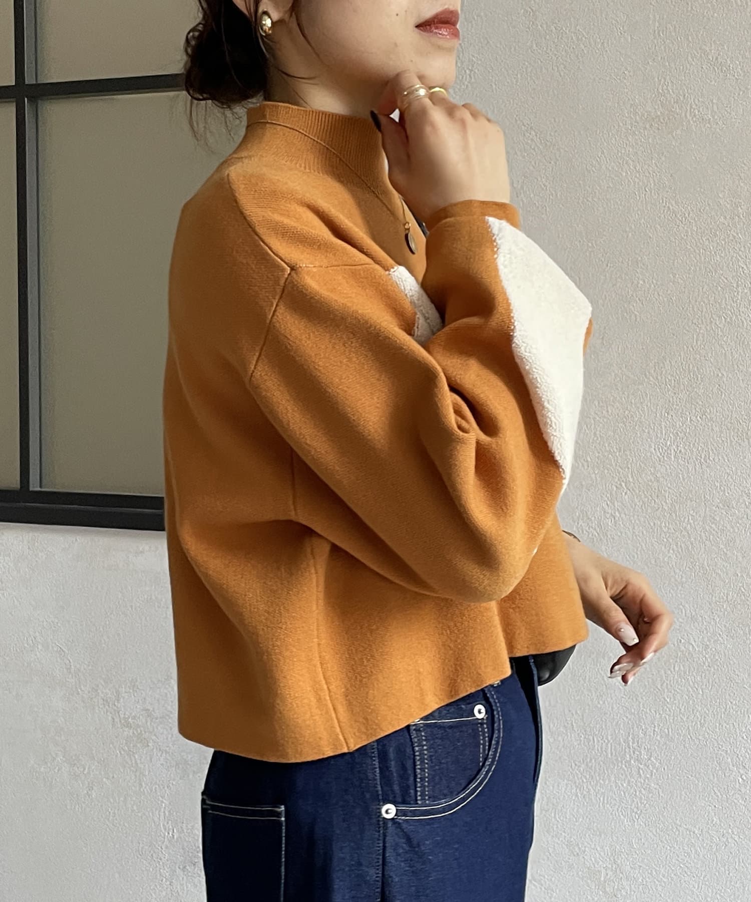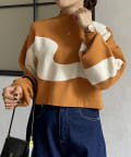 ・ショート丈ニットなので、ワイドパンツなどボリュームのあるボトムスとも好相性◎
