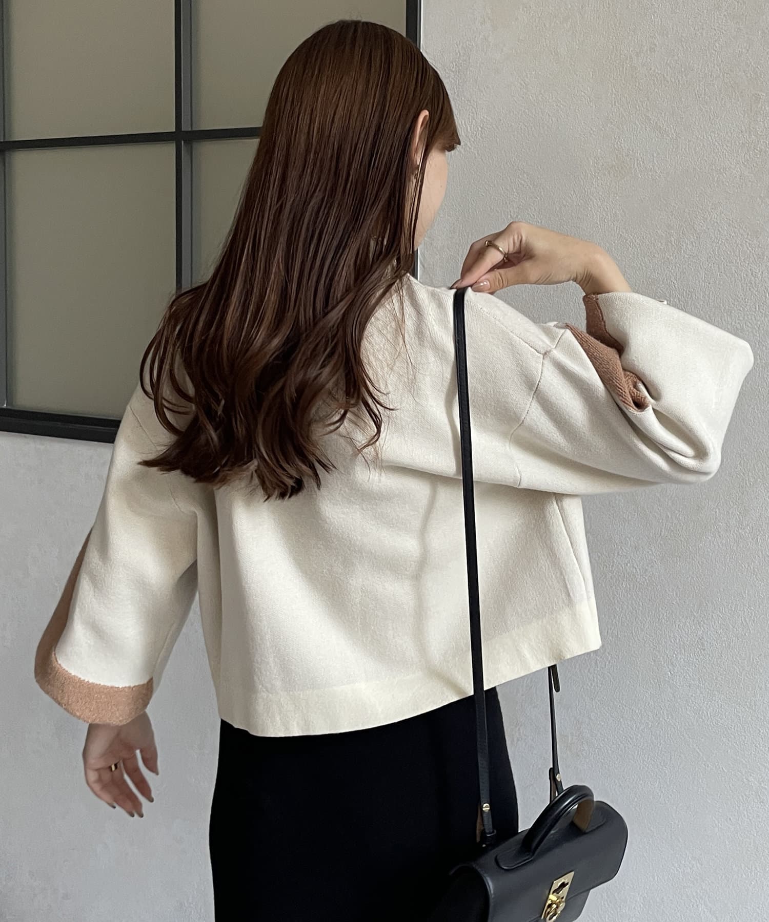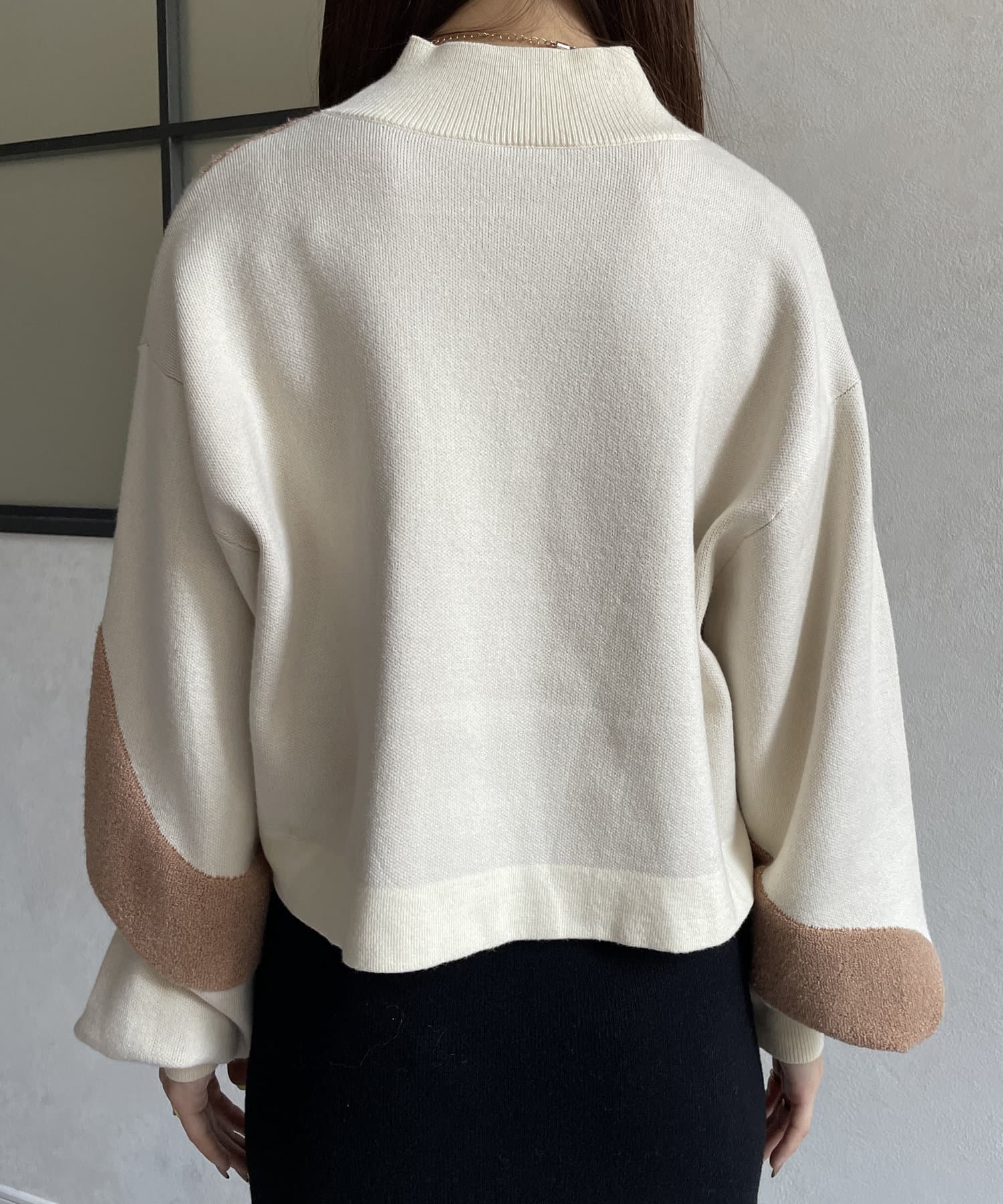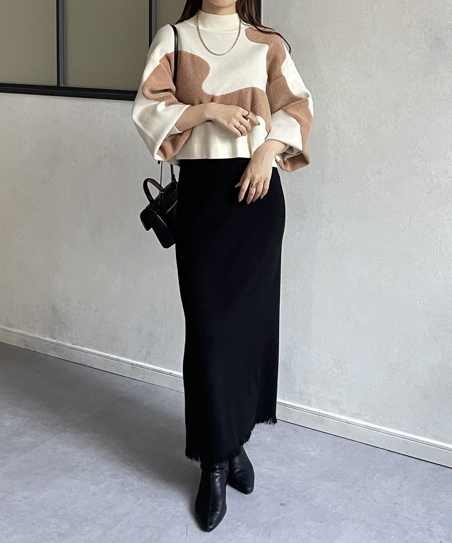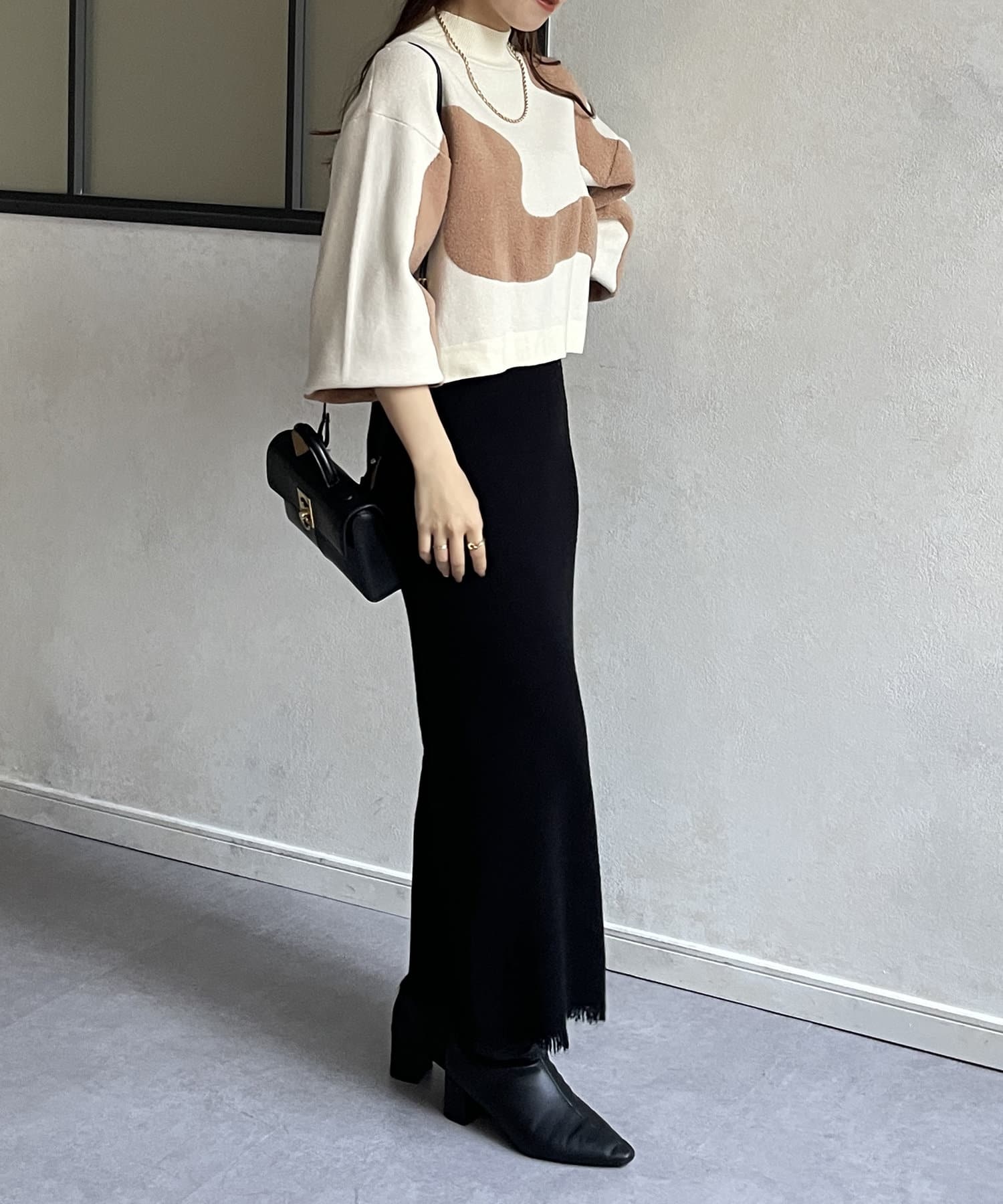 ・ショート丈ニットなので、ワイドパンツなどボリュームのあるボトムスとも好相性◎
