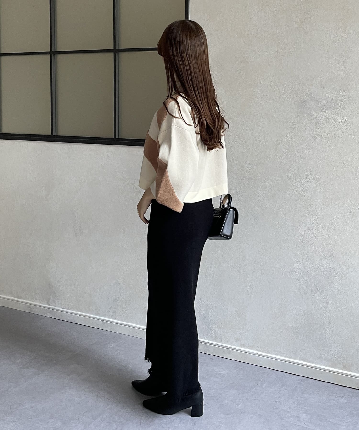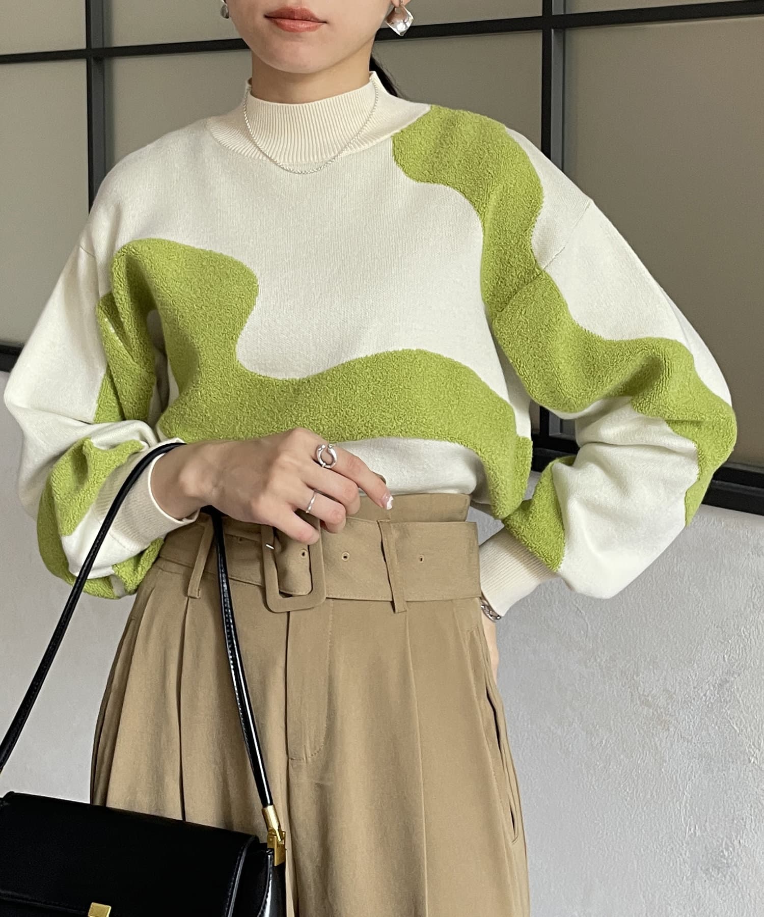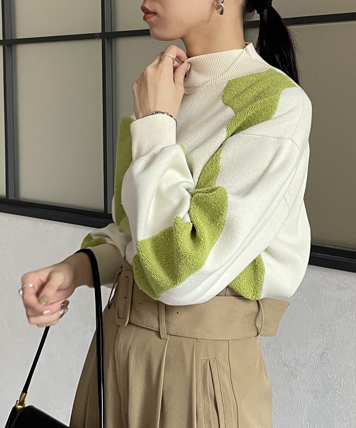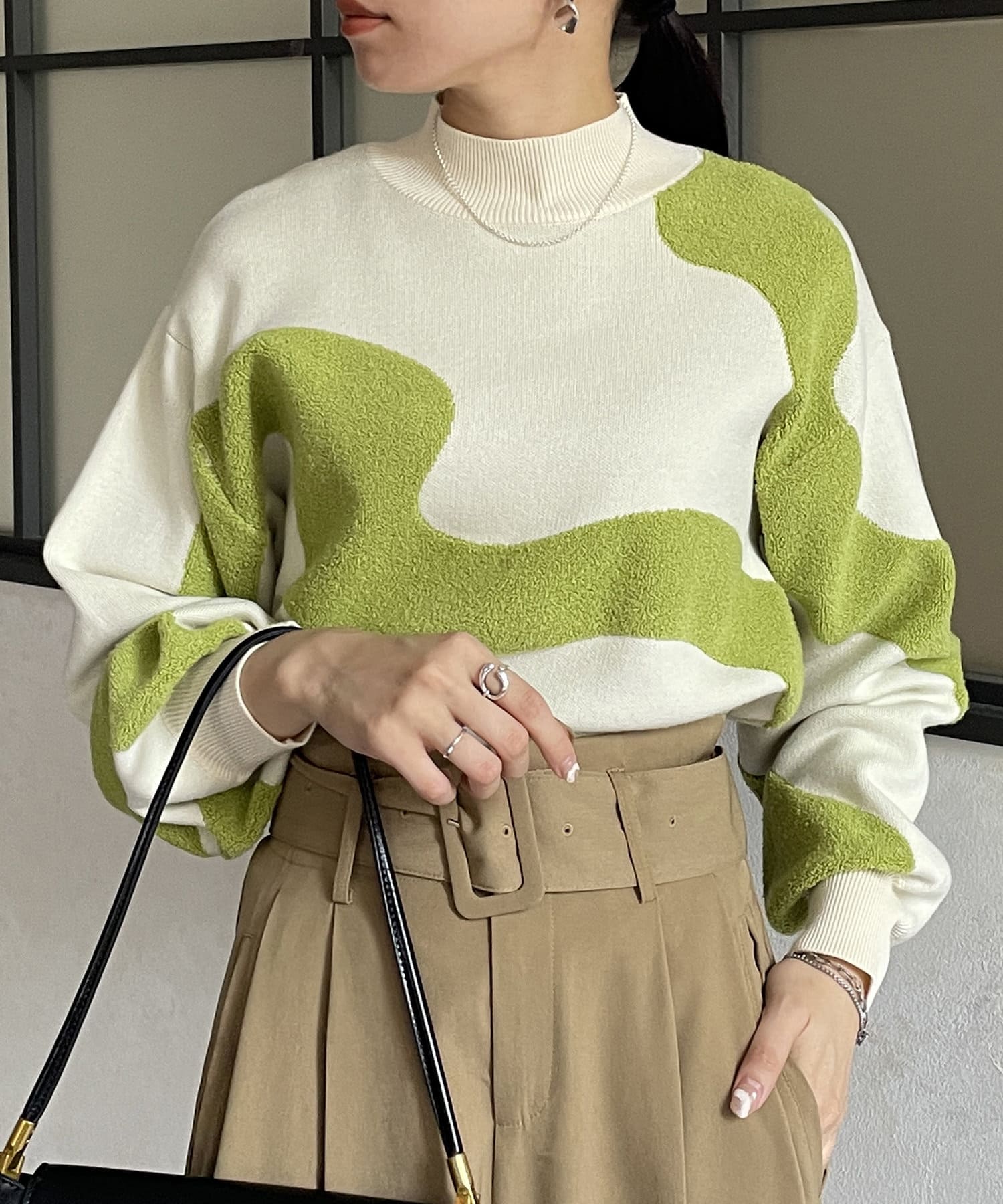 ・ショート丈ニットなので、ワイドパンツなどボリュームのあるボトムスとも好相性◎
