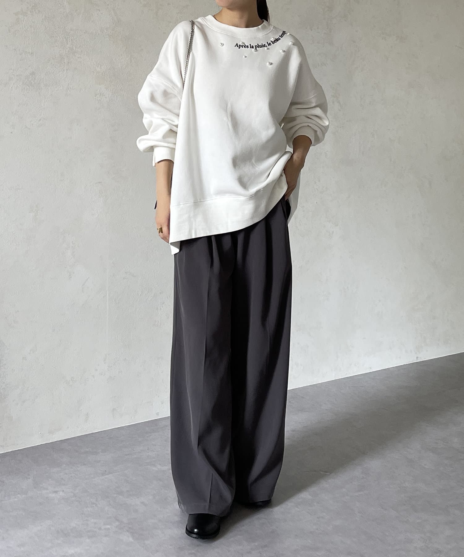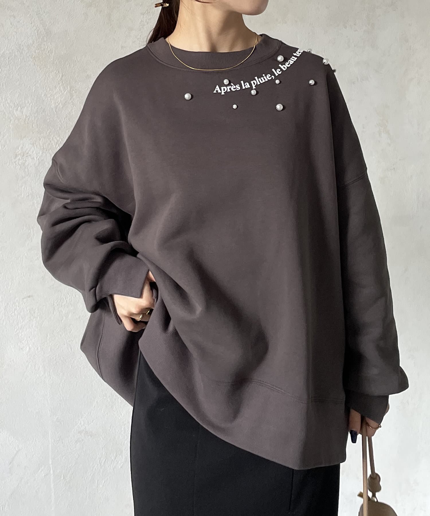 TOP > Thevon. > レディース > トップス > Tシャツ/カットソー > パール×ネックロゴ裏起毛プルオーバー