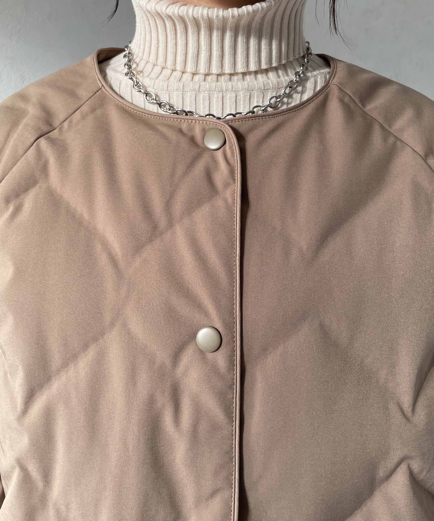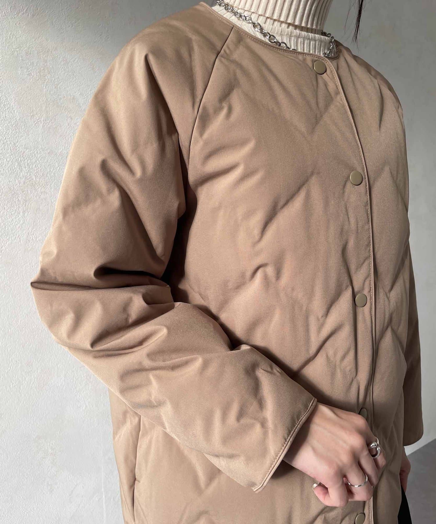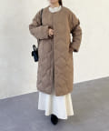 • Thevon.(ゼヴォン) 格子柄ノーカラーロングダウンジャケット