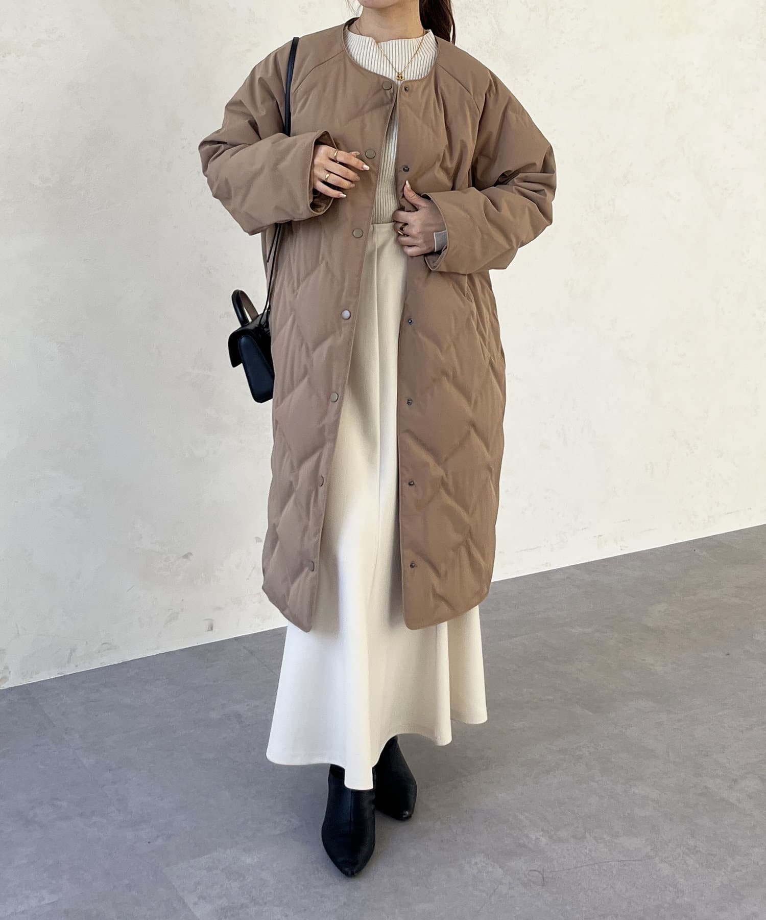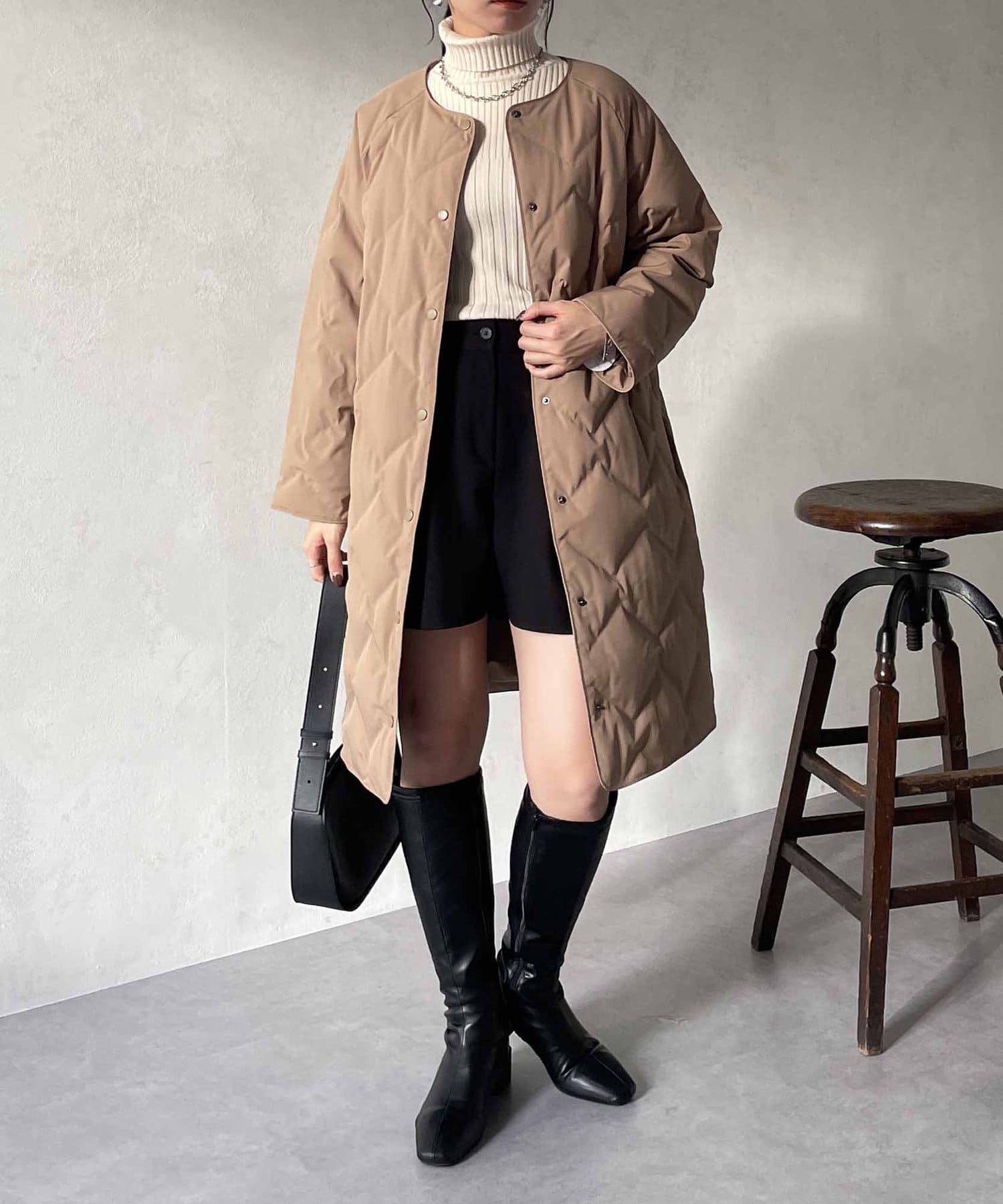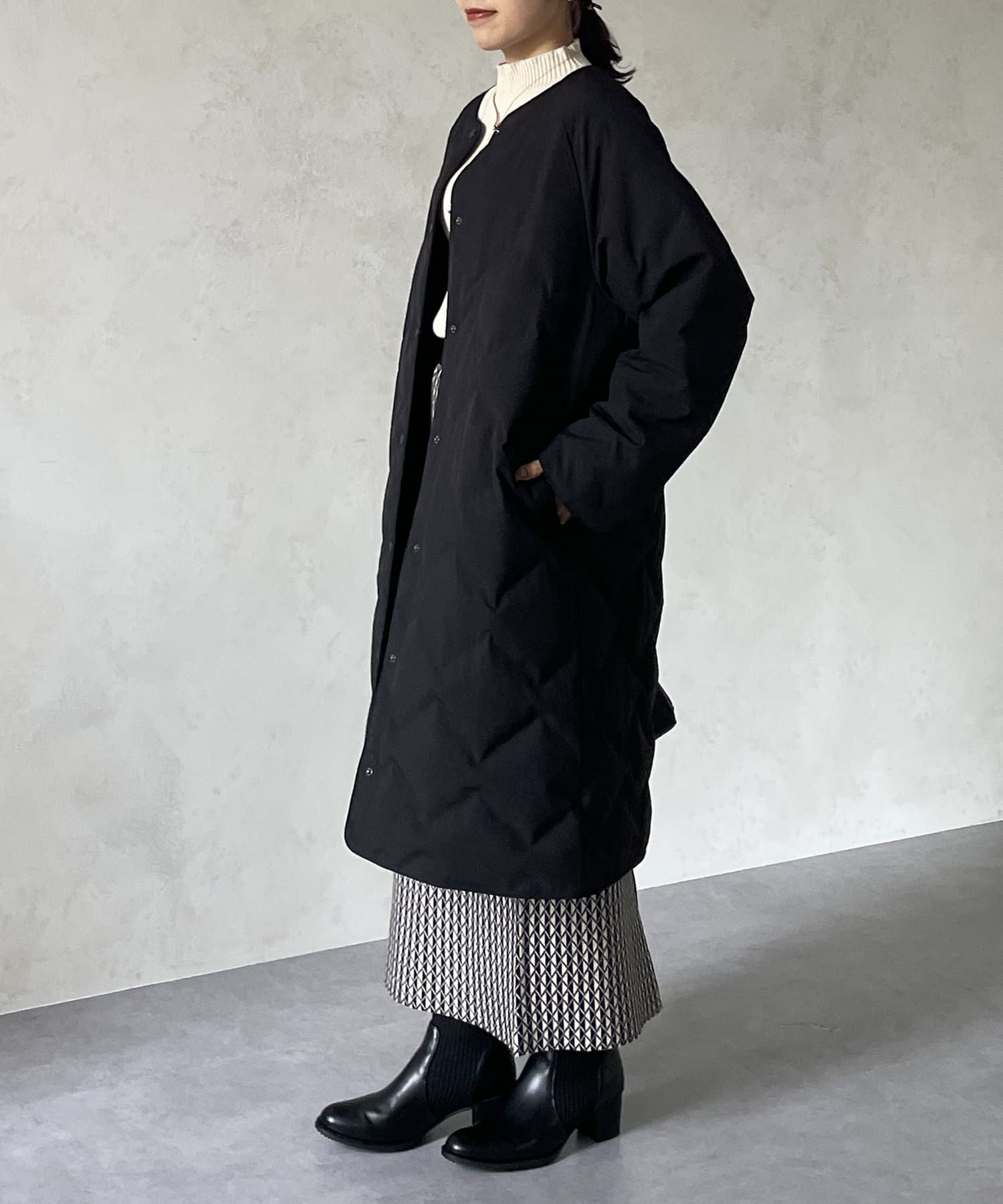 ・ノーカラーなのでストールとも相性抜群で、防寒対策もバッチリできます◎