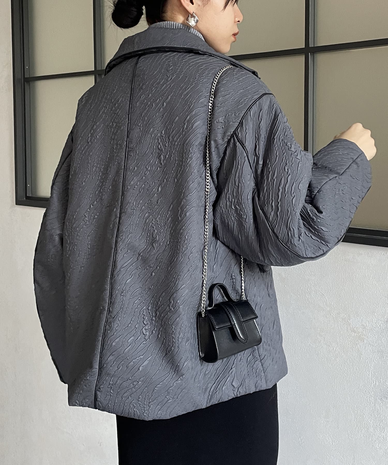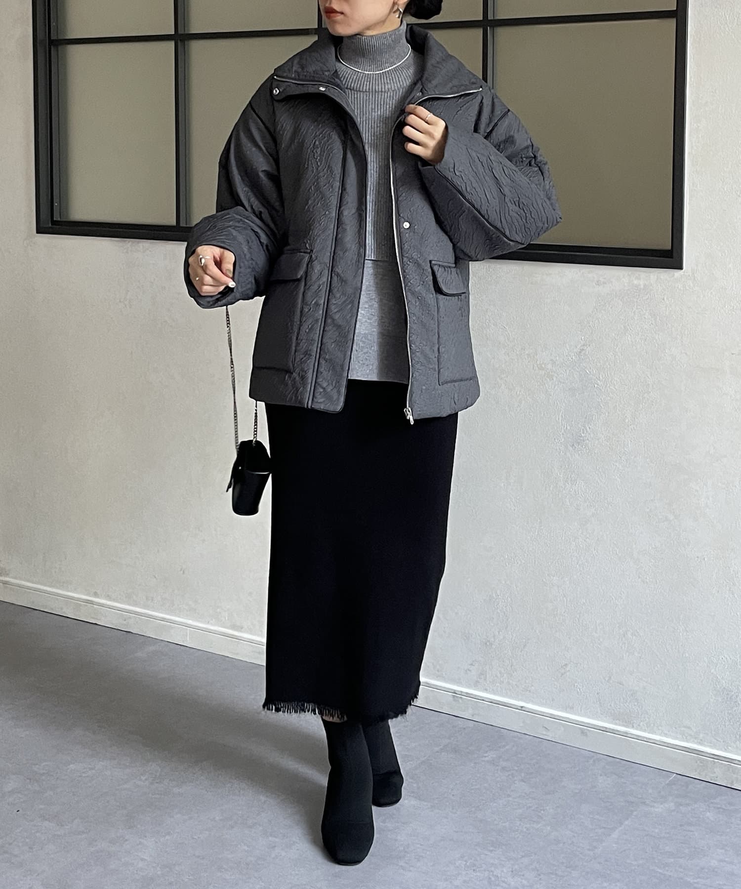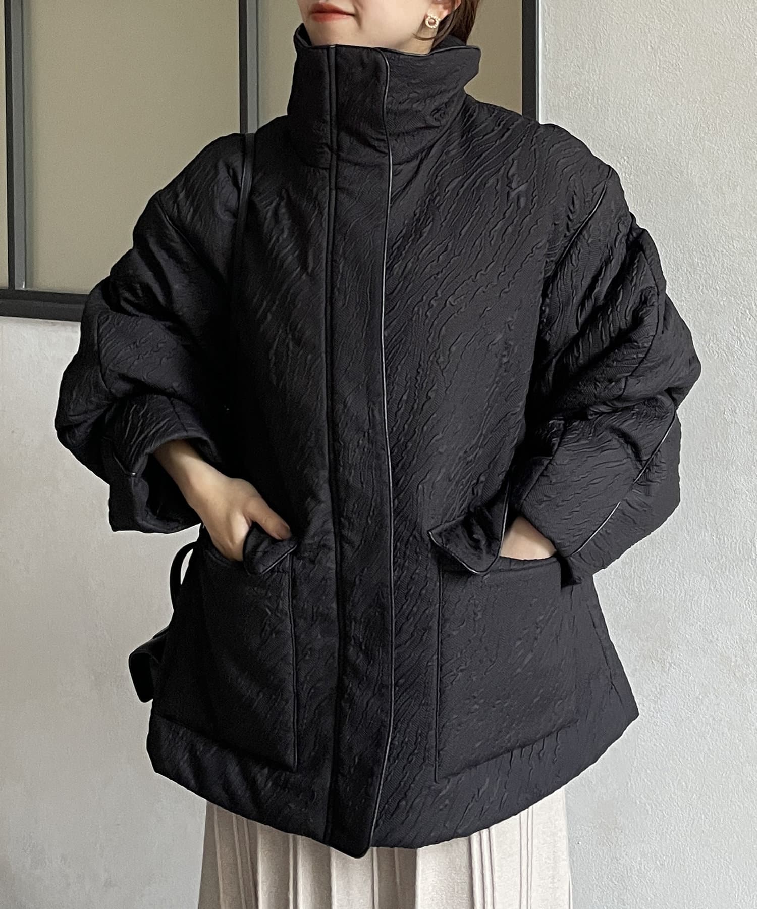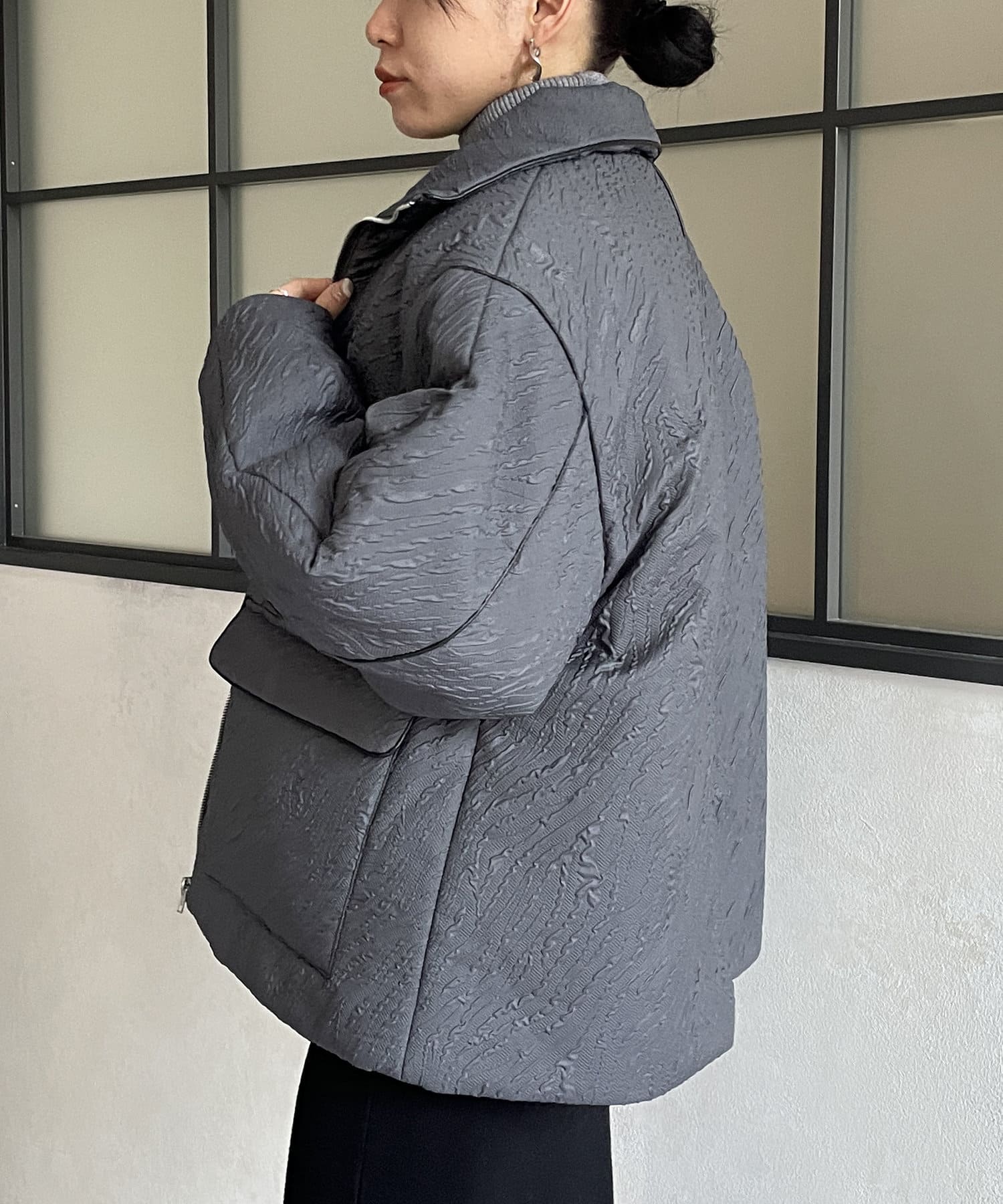・凹凸感のあるジャガード柄が魅力的な中綿ブルゾン