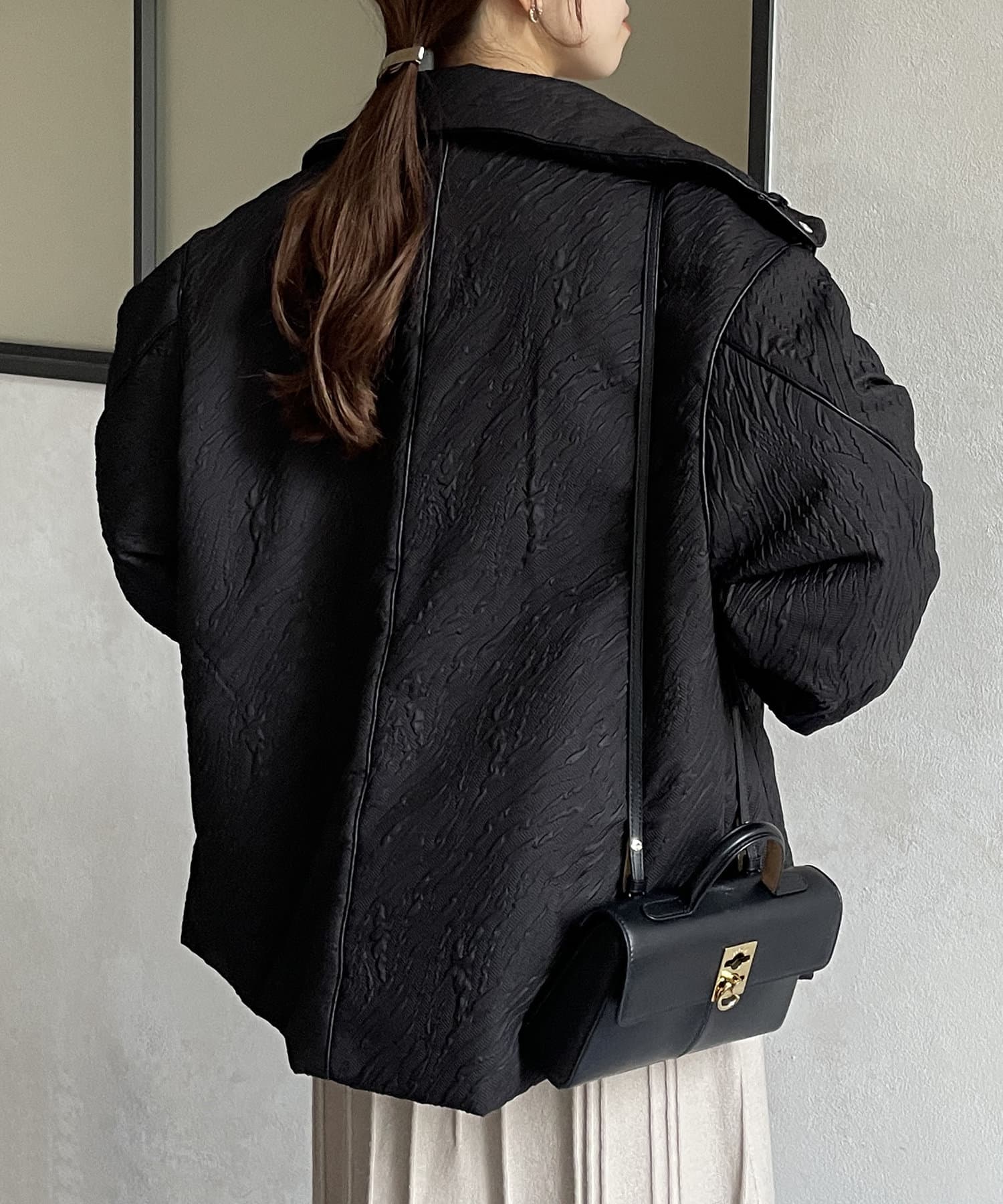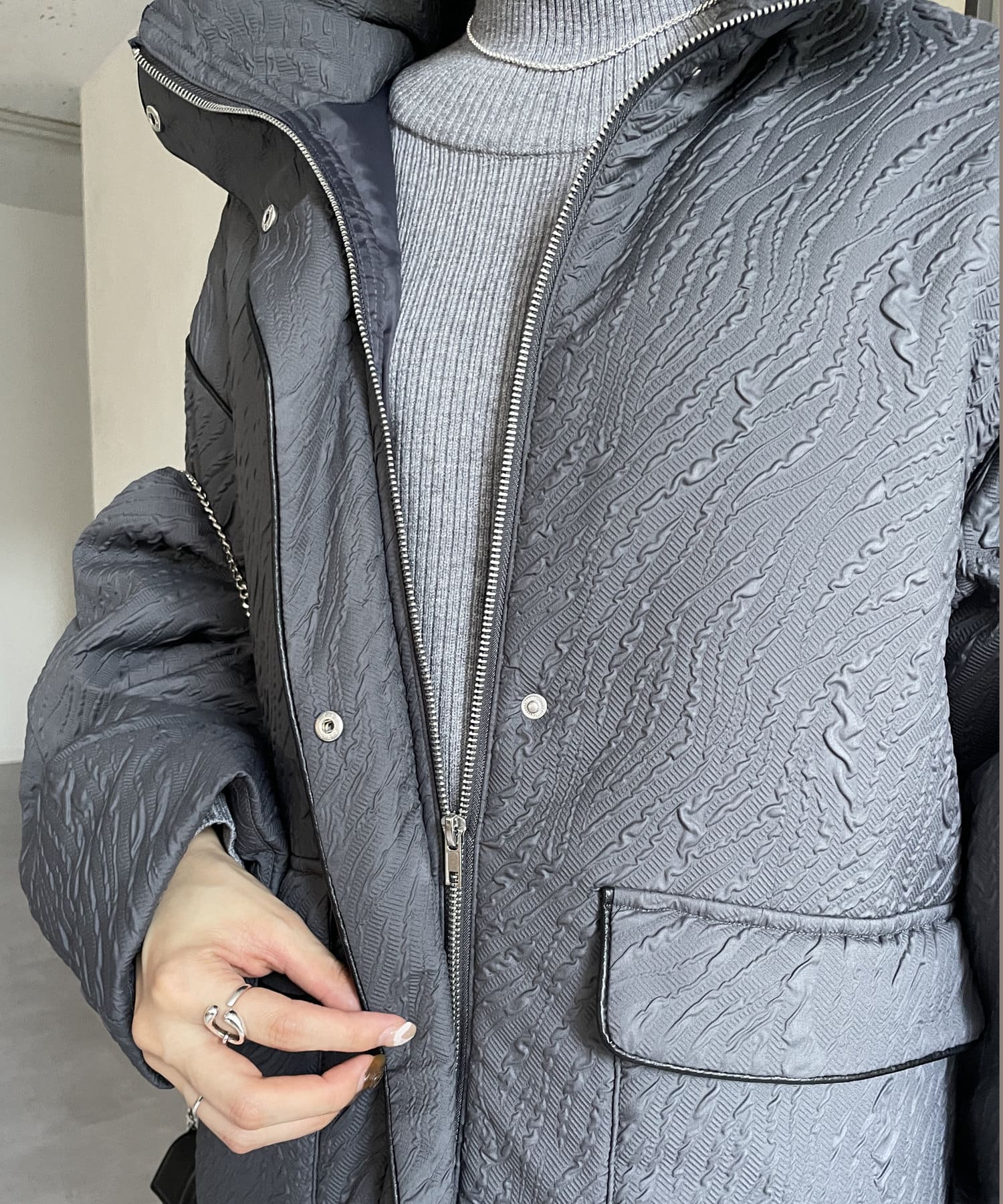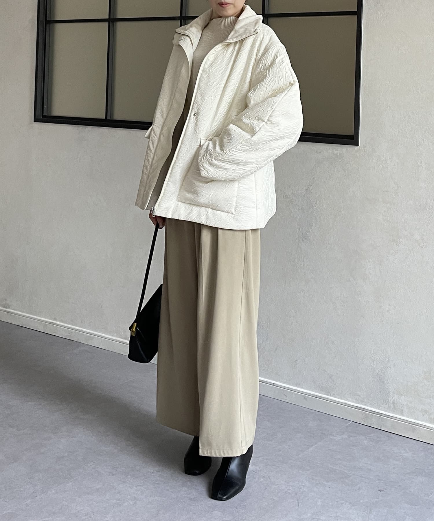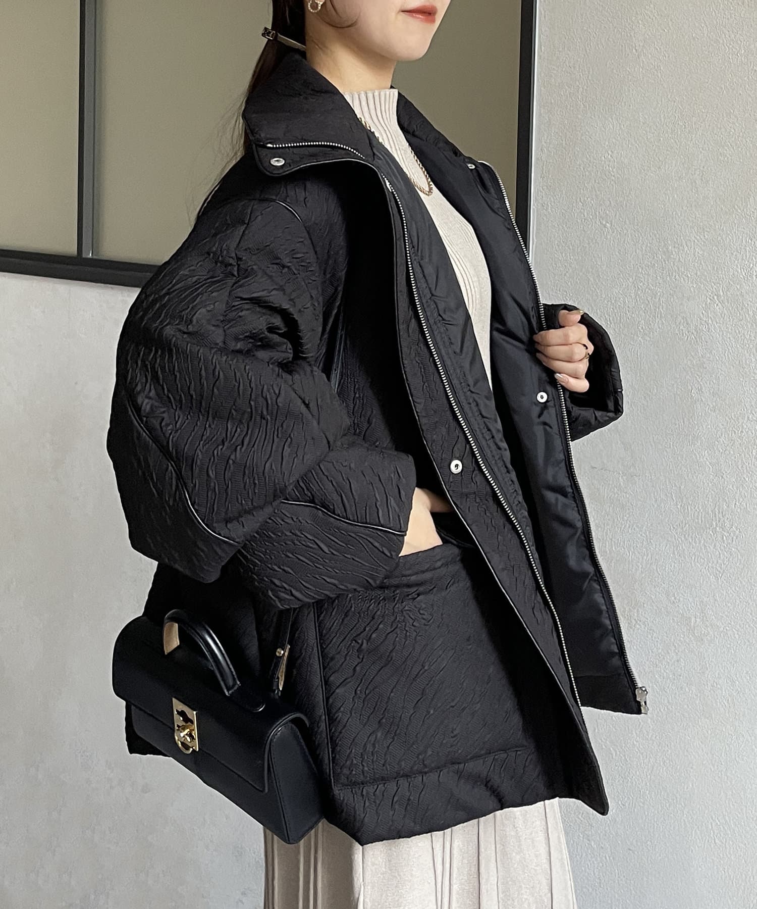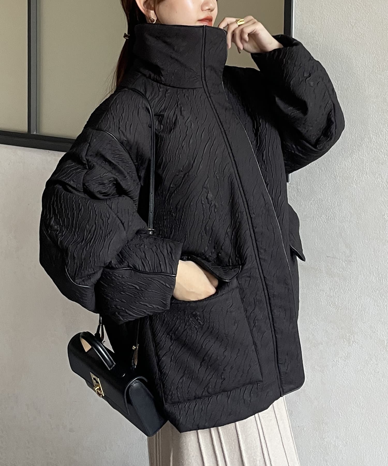 ・凹凸感のあるジャガード柄が魅力的な中綿ブルゾン