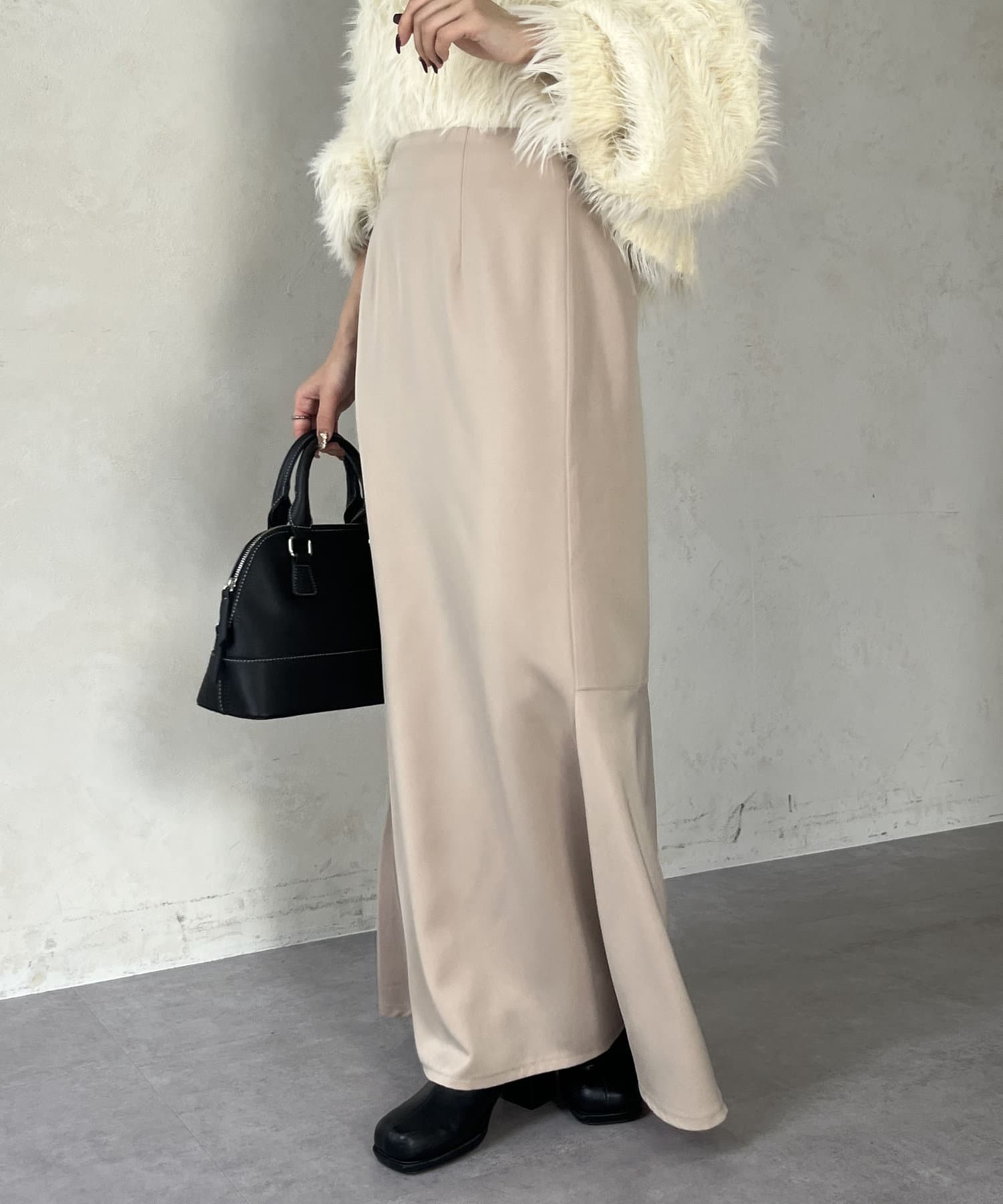 ・シンプルなデザインのためシャギーニットといった素材感のあるトップスとも相性抜群!