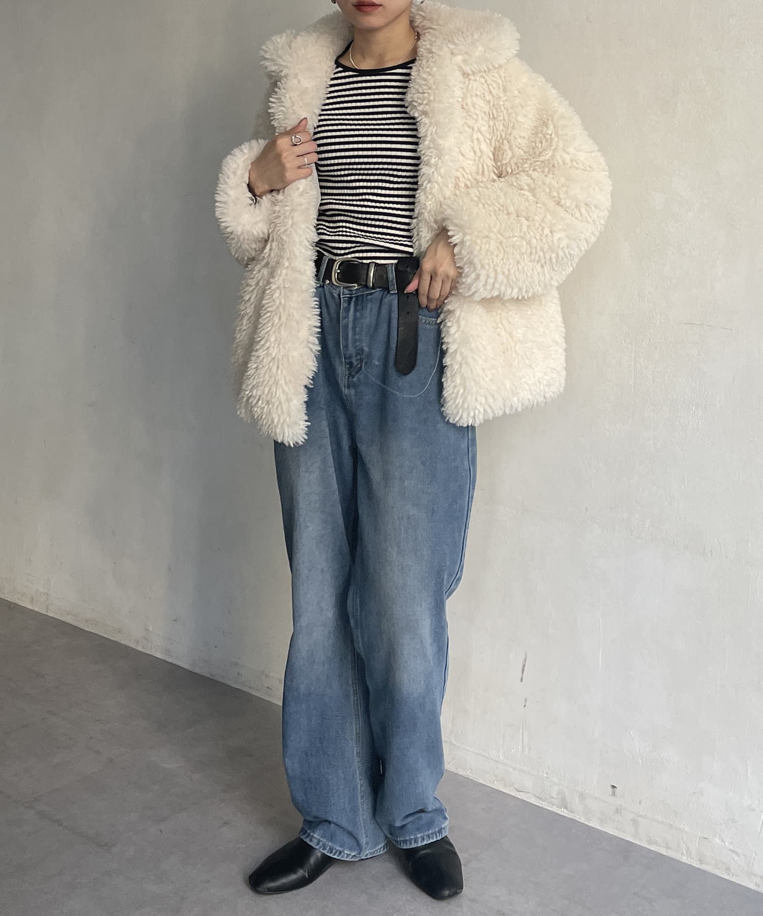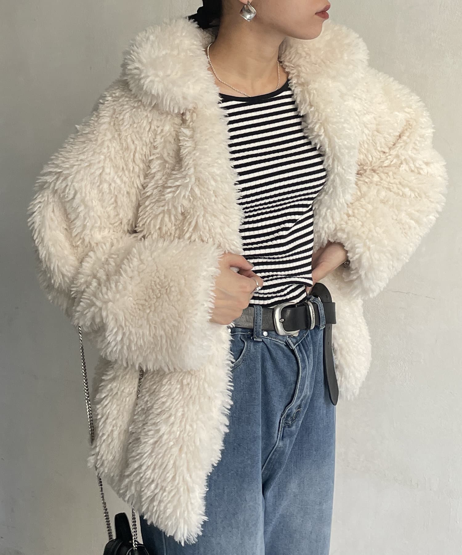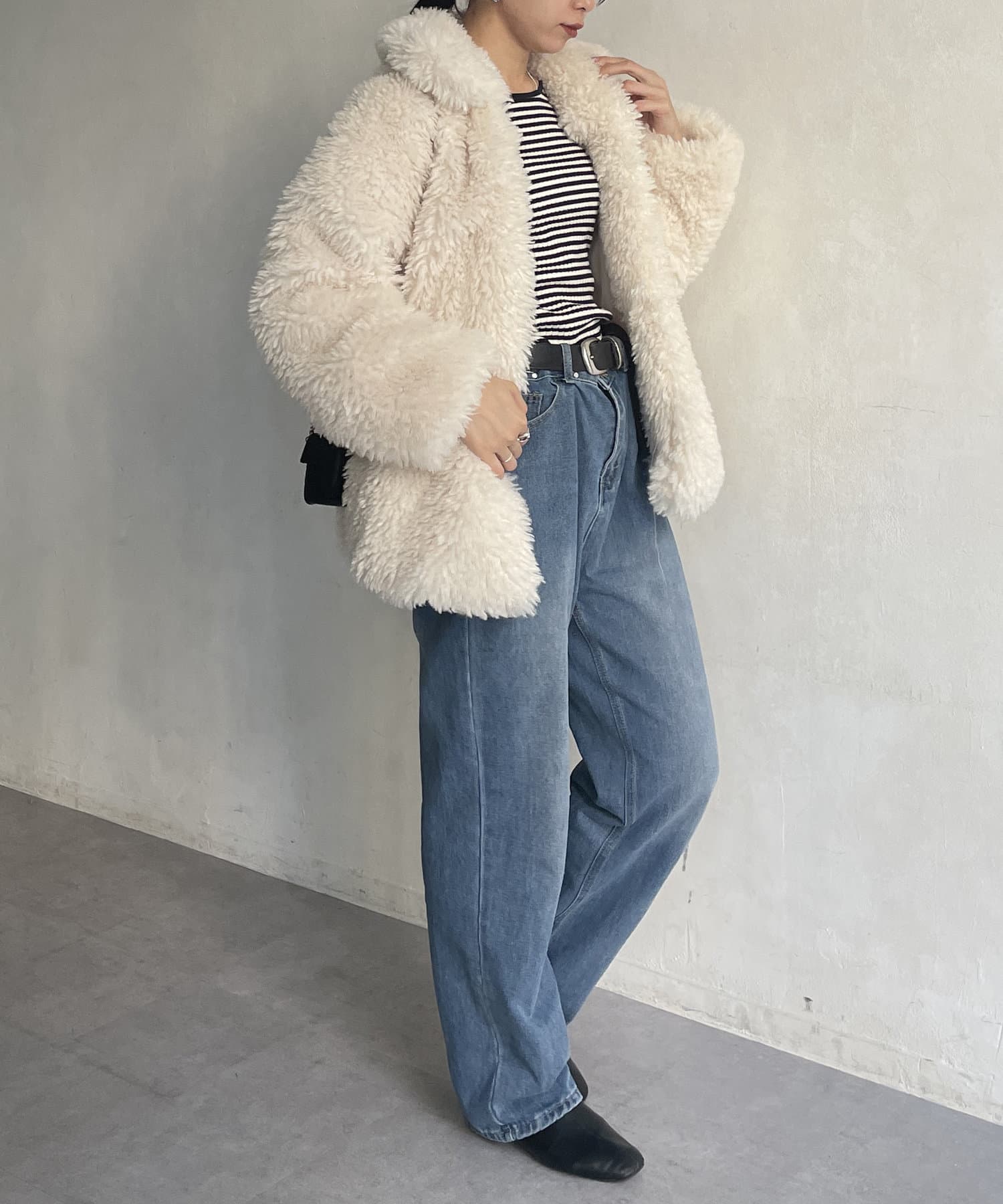 くるくるのシープファーでシンプルなコーデも一気に華やかに!