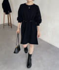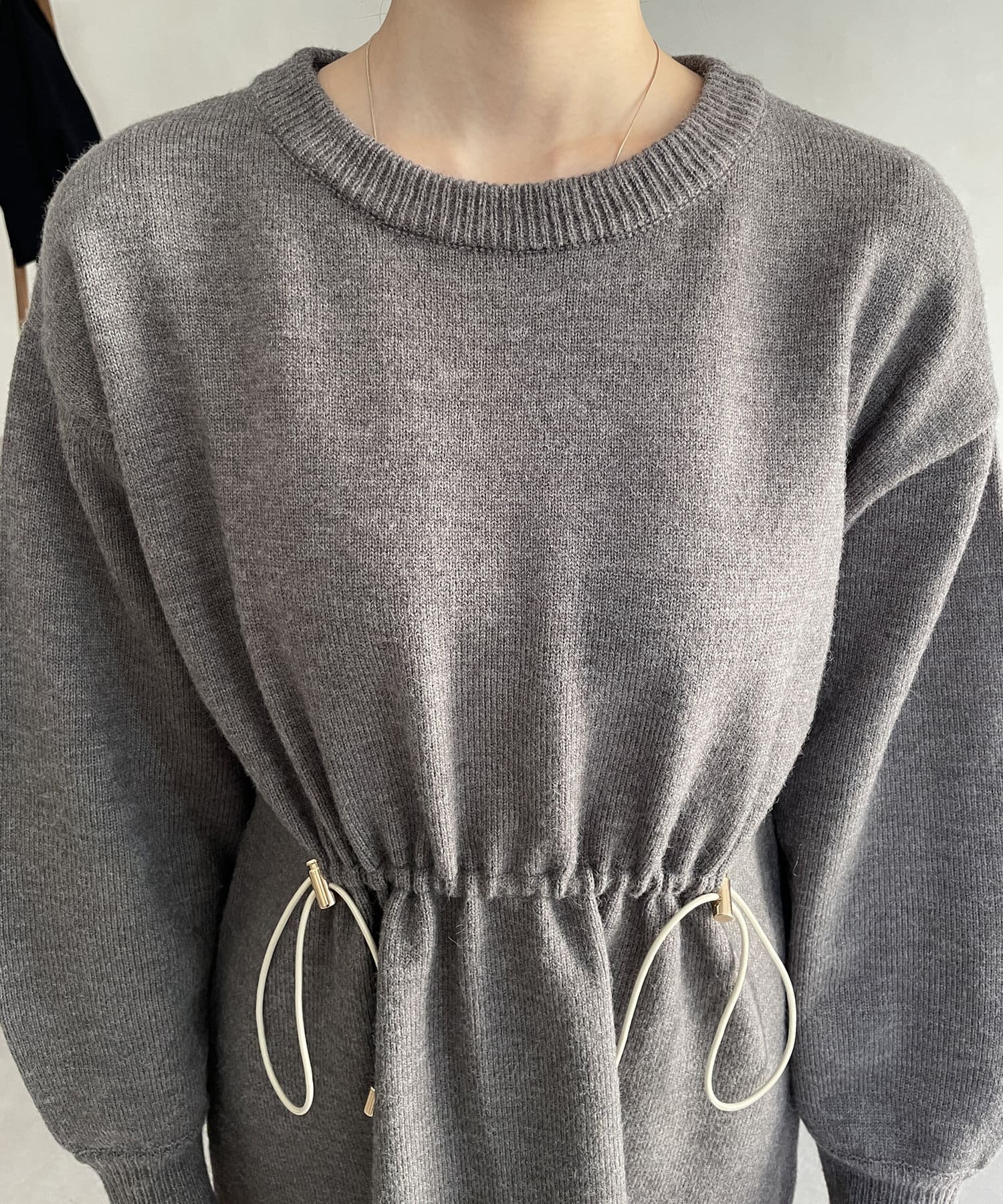 ・コードを絞ってウエストをマークしたメリハリのあるシルエット
