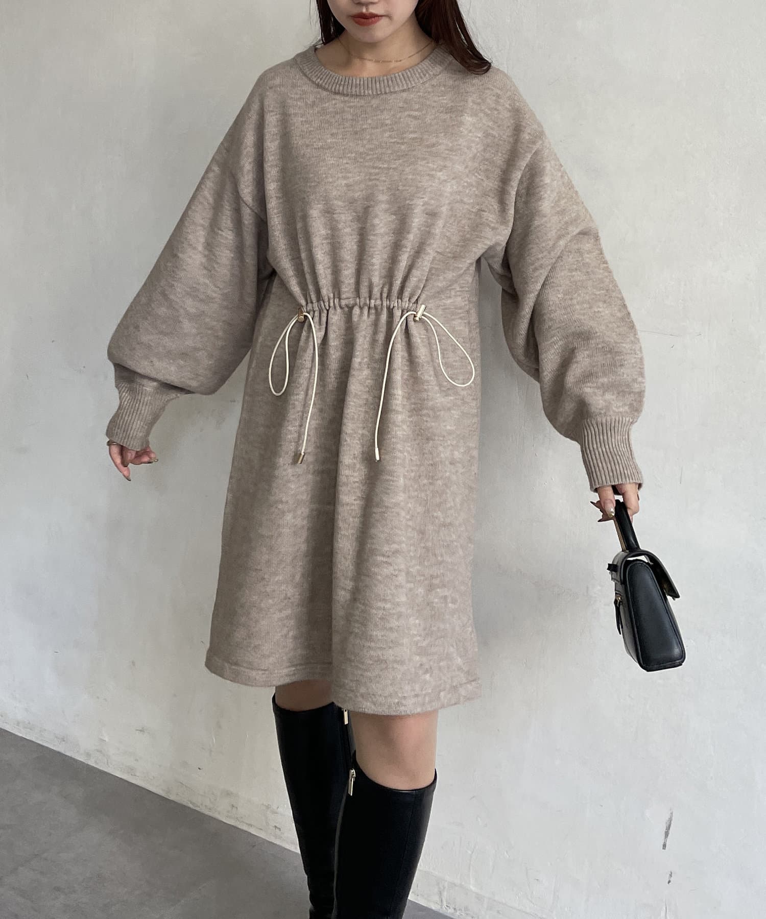 TOP > Thevon. > レディース > ワンピース > ワンピース > ドロストニットミニワンピース
