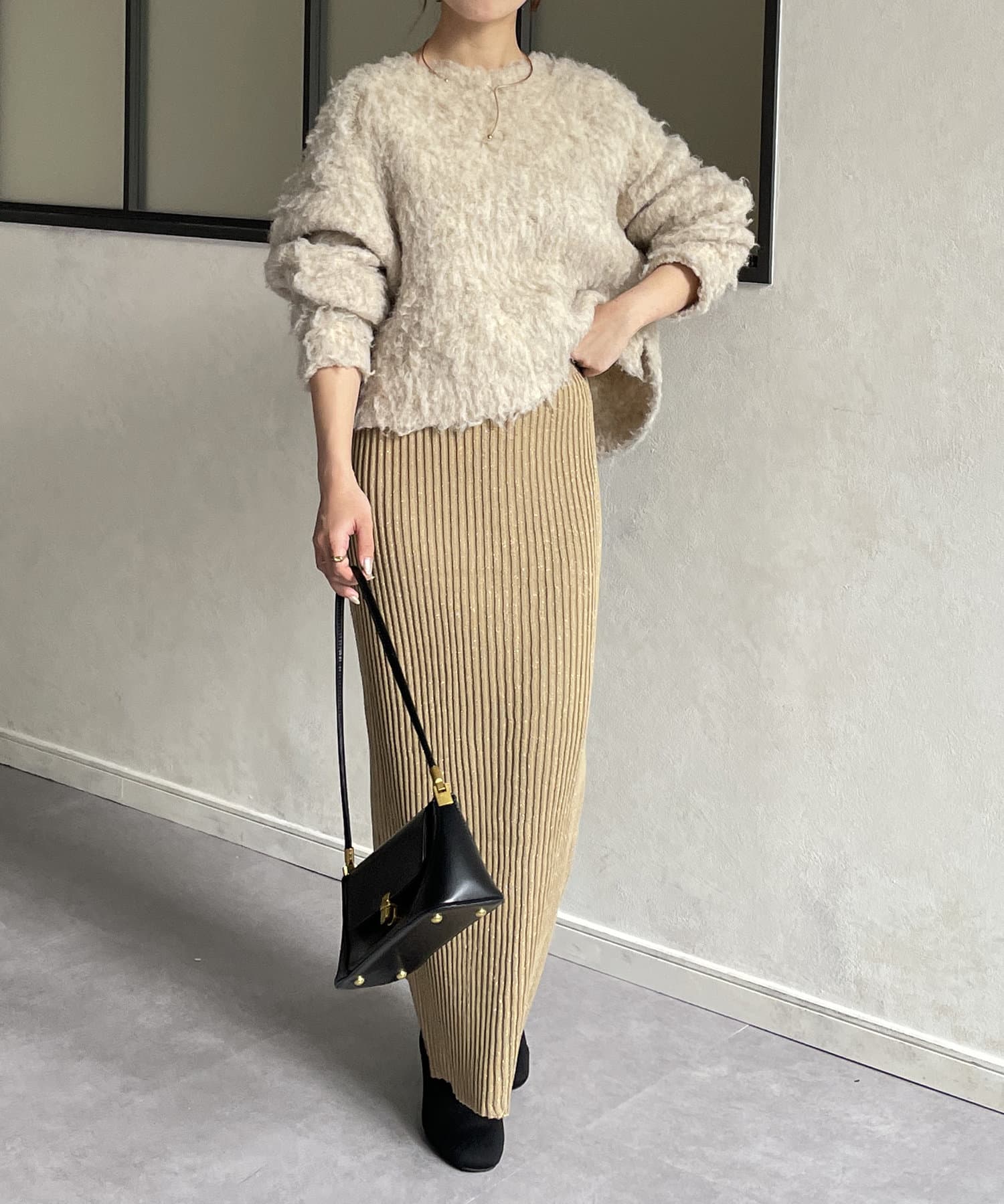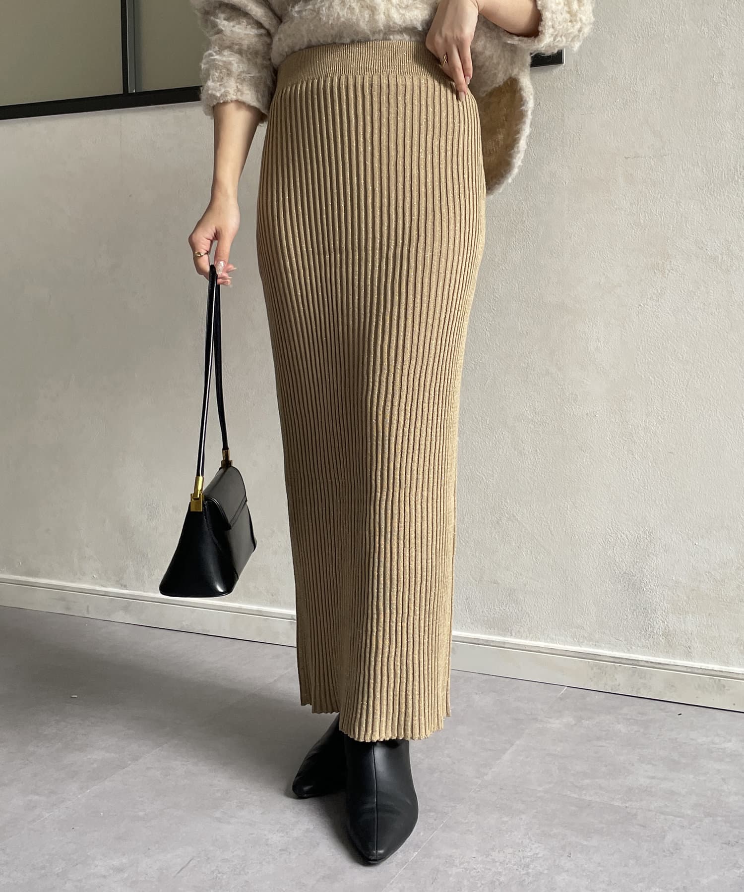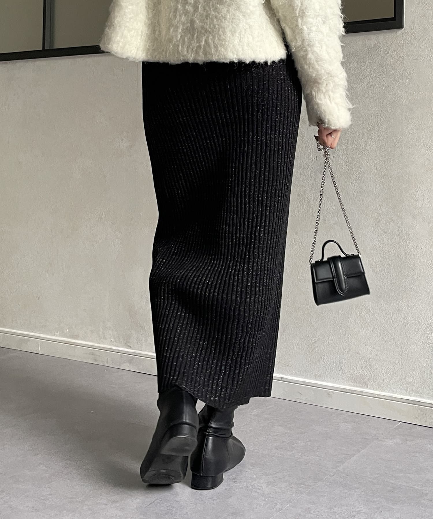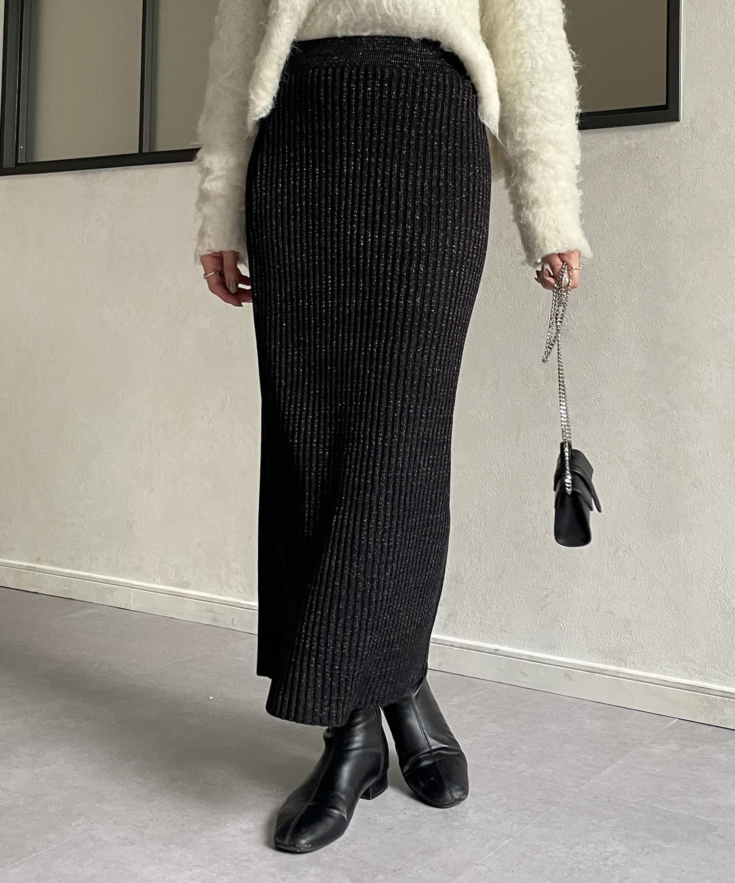 ラメリブニットナロースカート