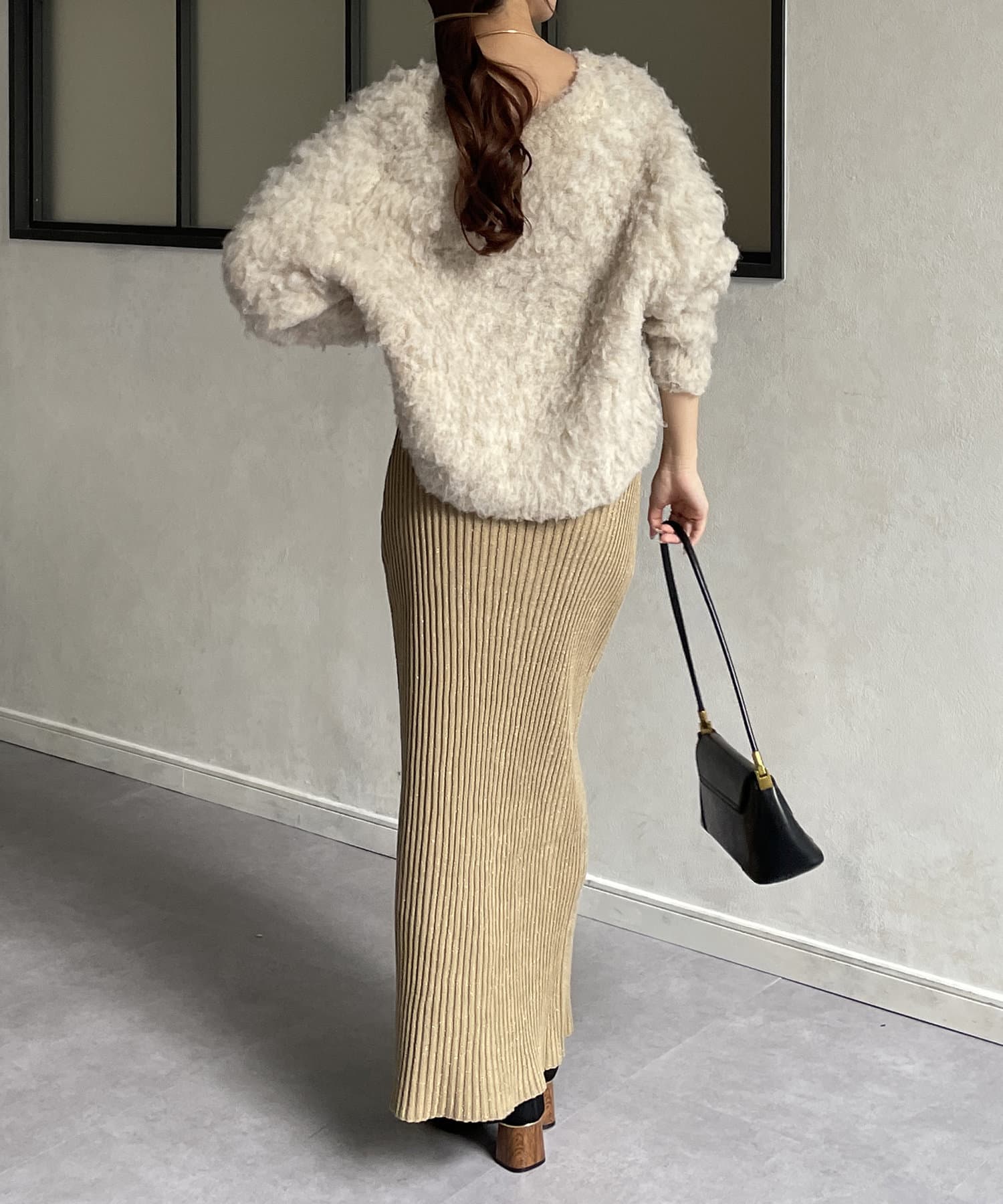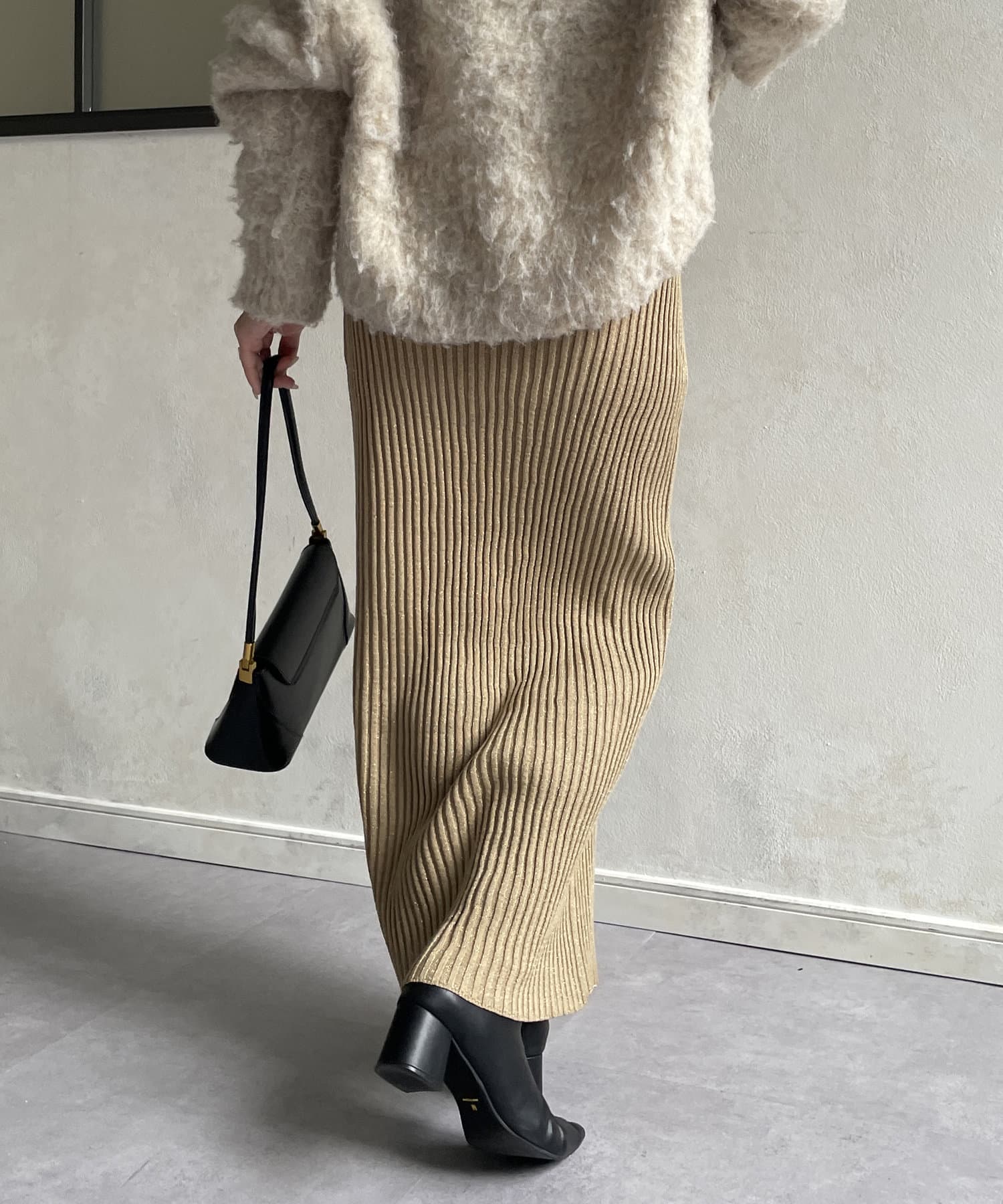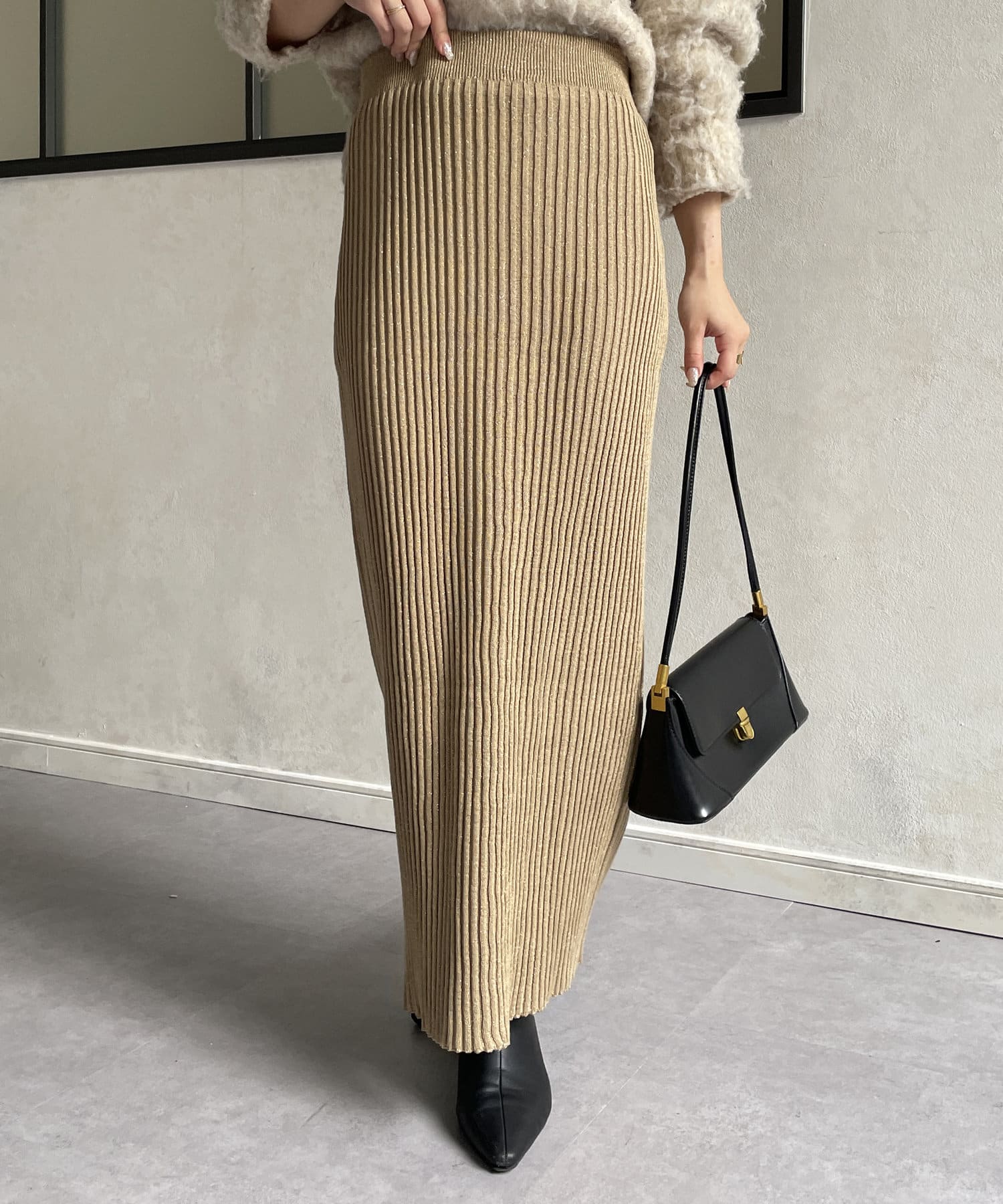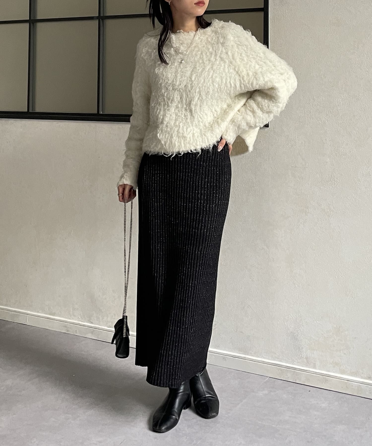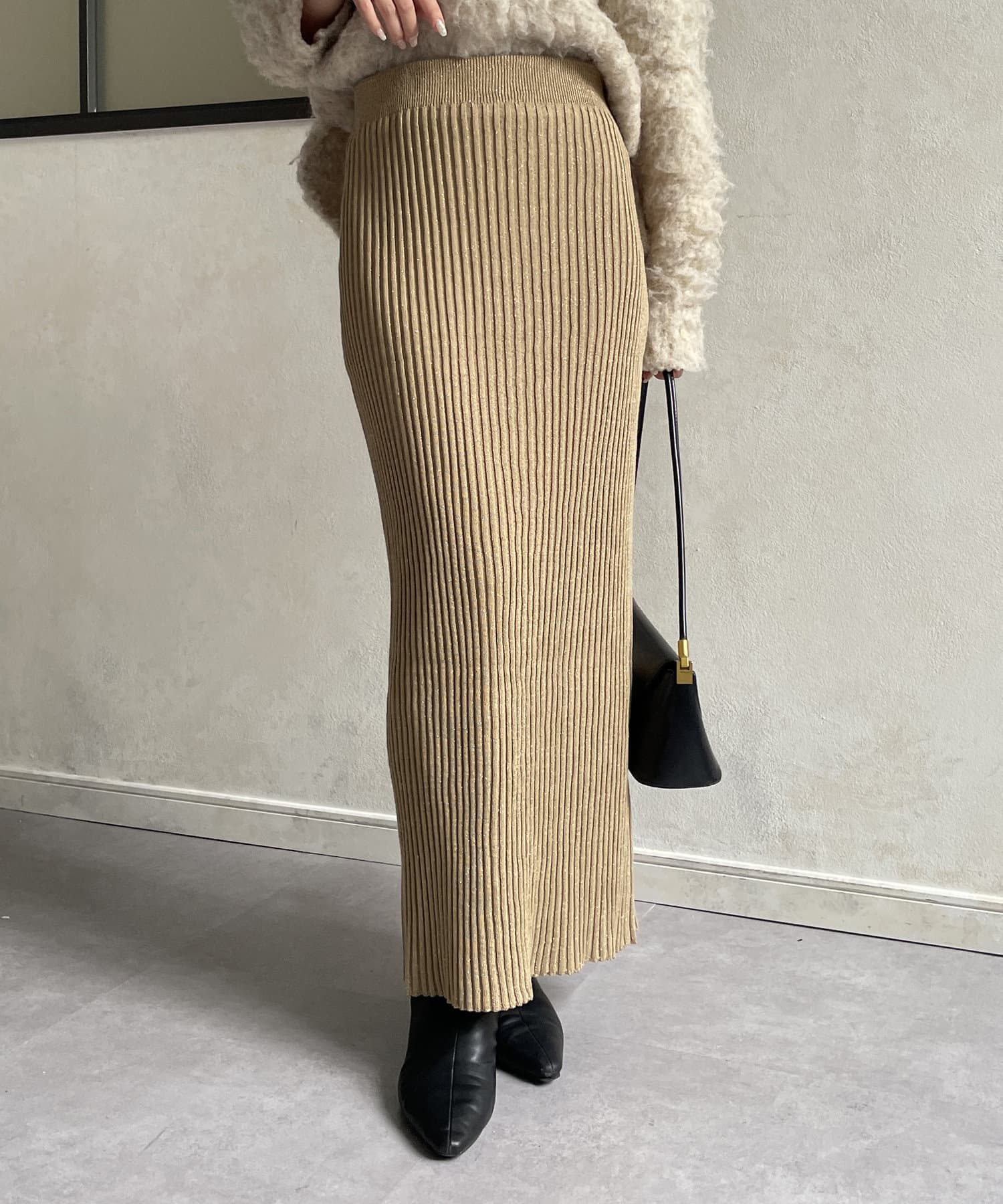 ラメリブニットナロースカート