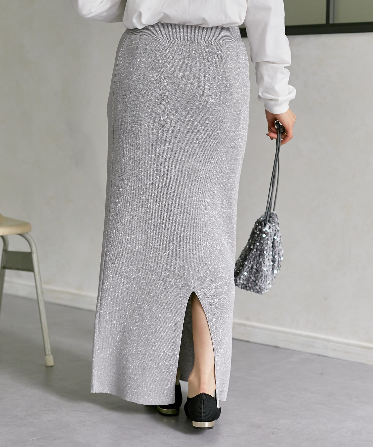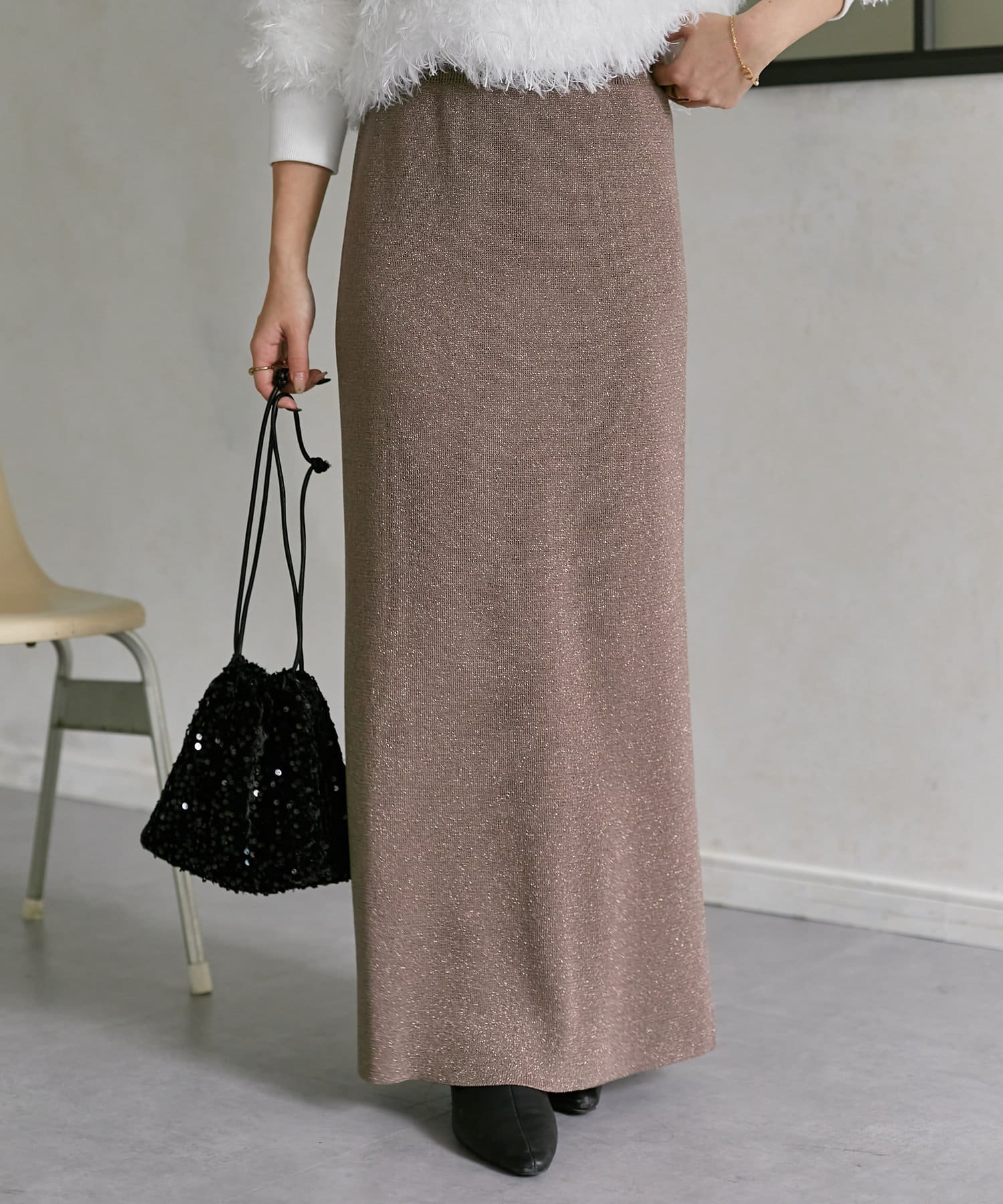 ラメ使いが上品なナロースカート