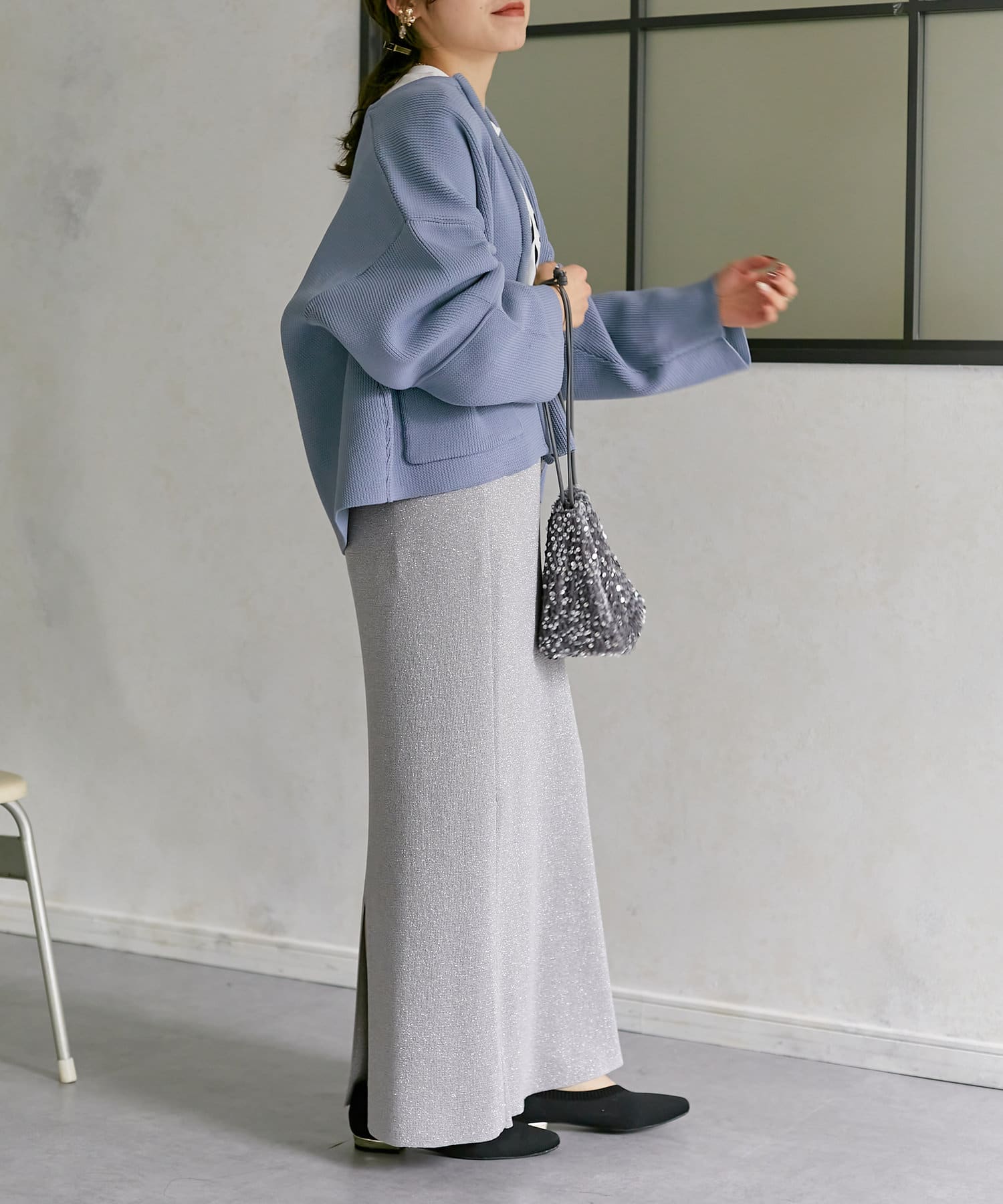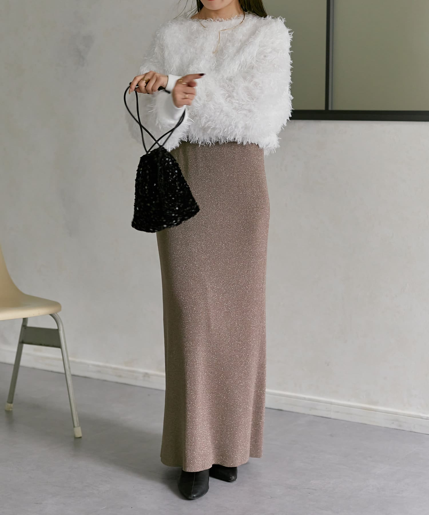 #ラメ #ナロースカート #ラメニット