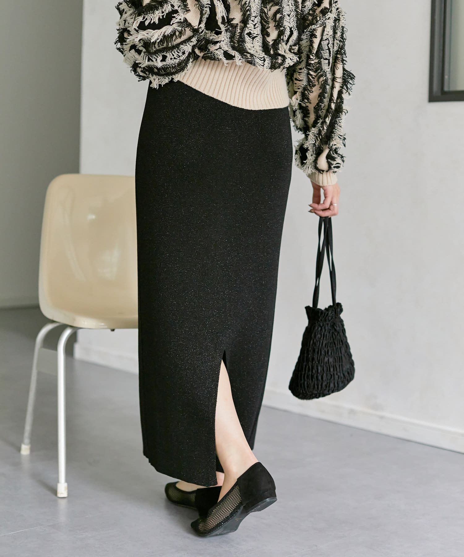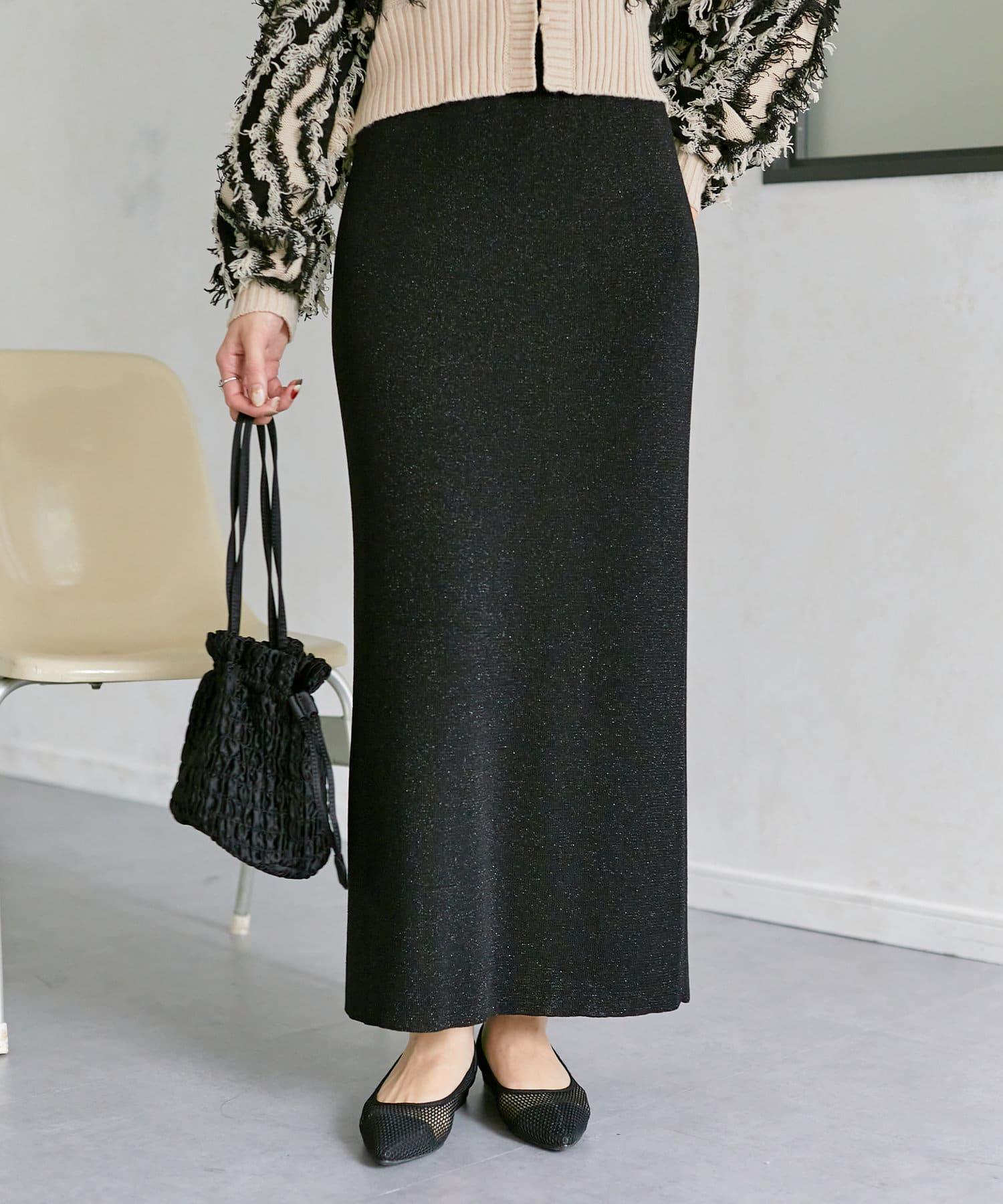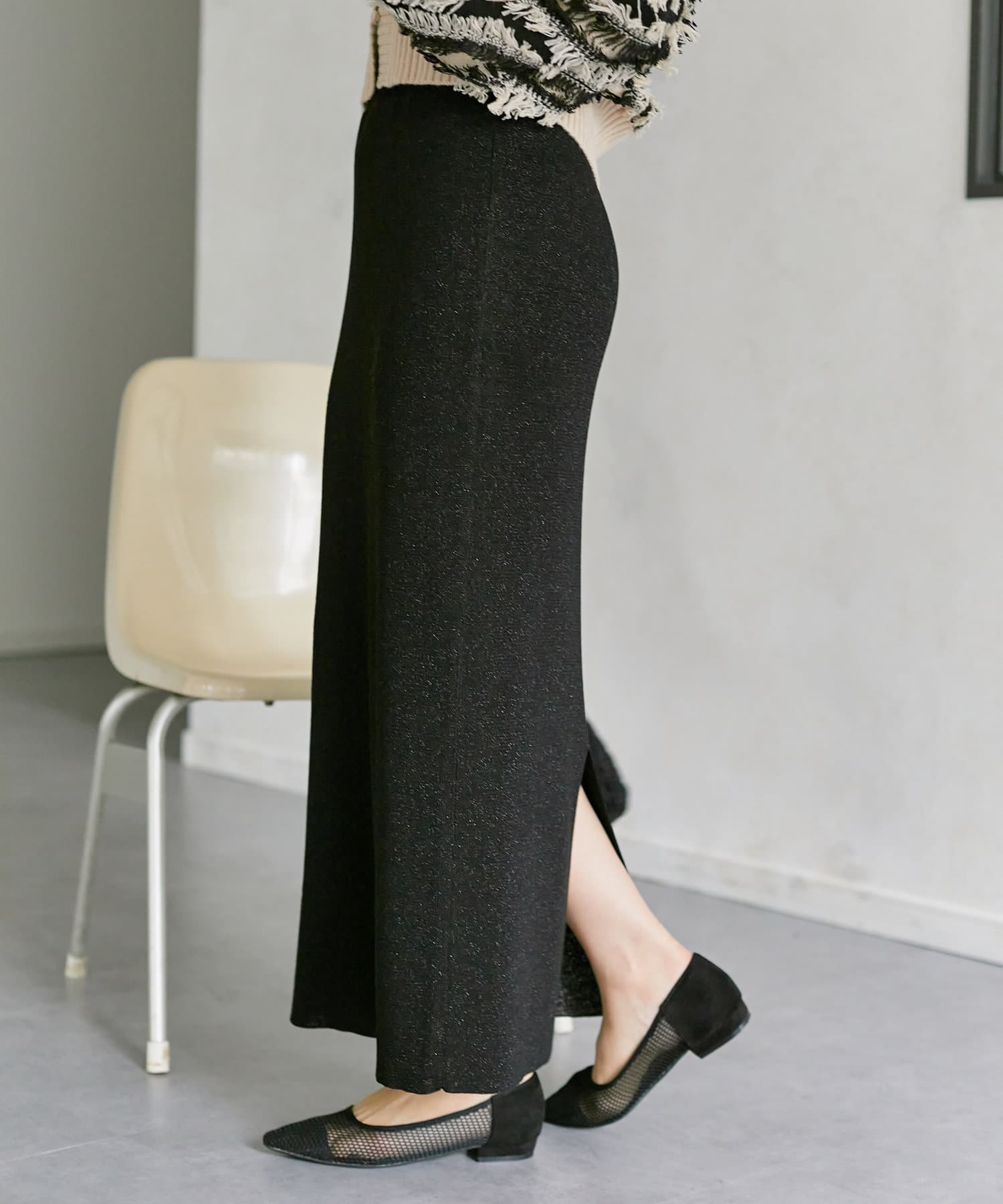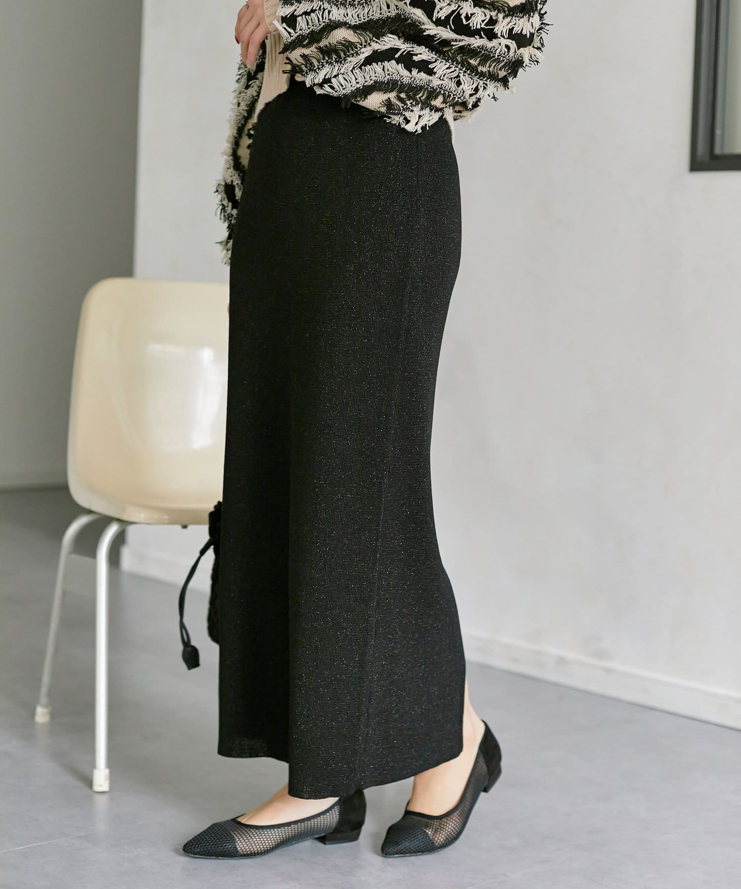 ラメ混ニットナロースカート