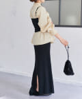 ナロースカートなどすっきりとしたボトムスでスタイルアップした着こなしが◎