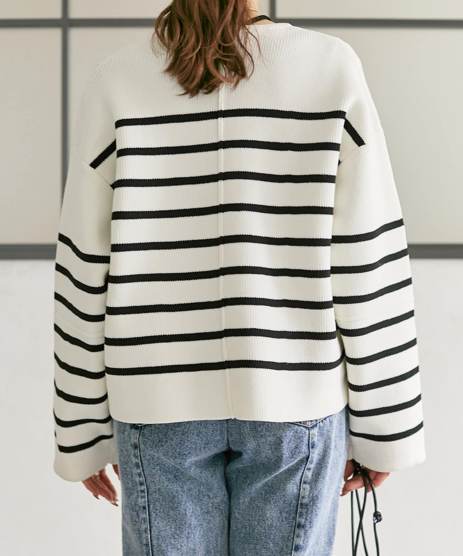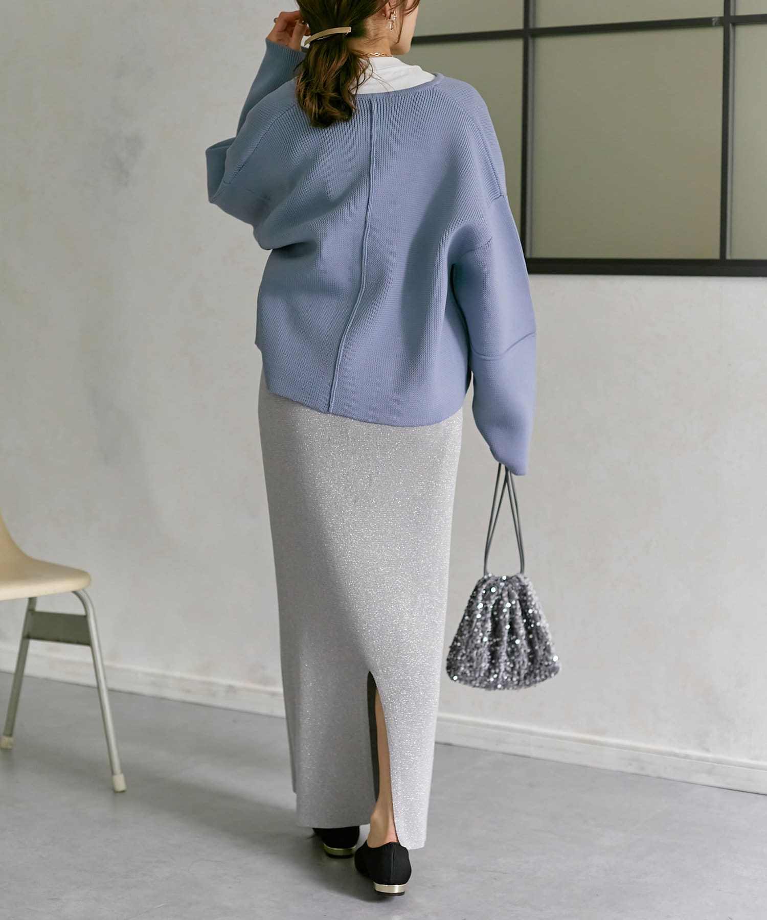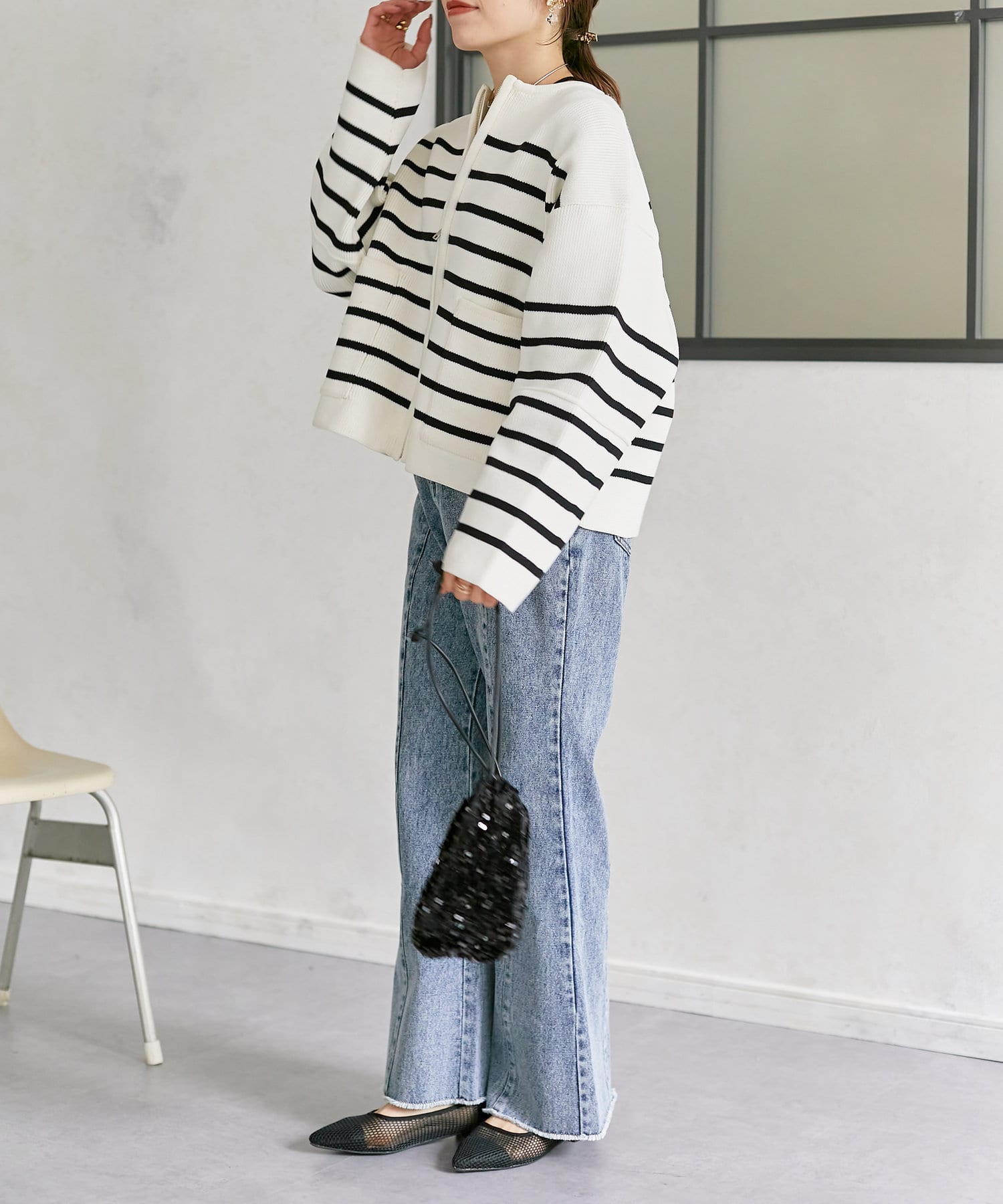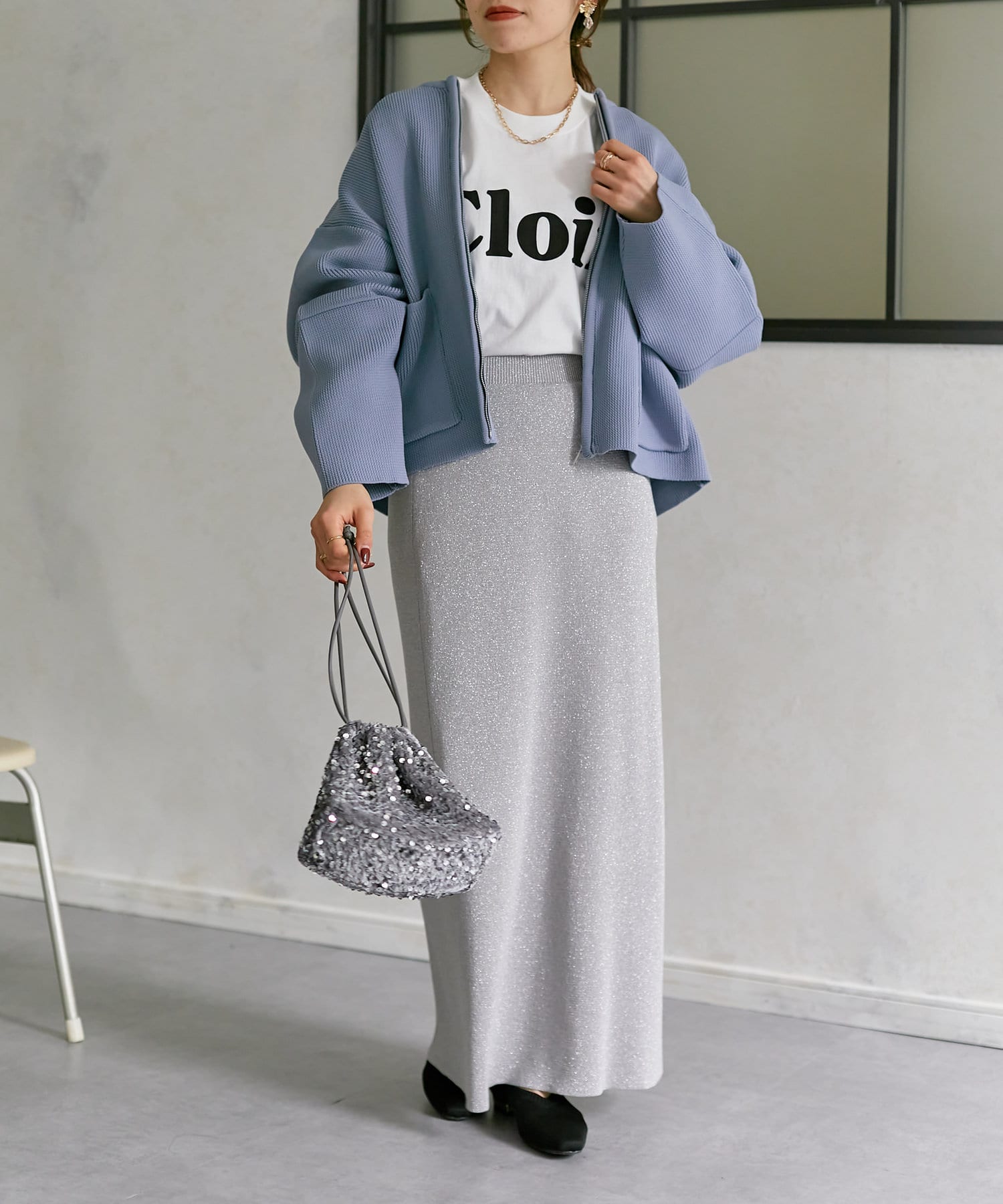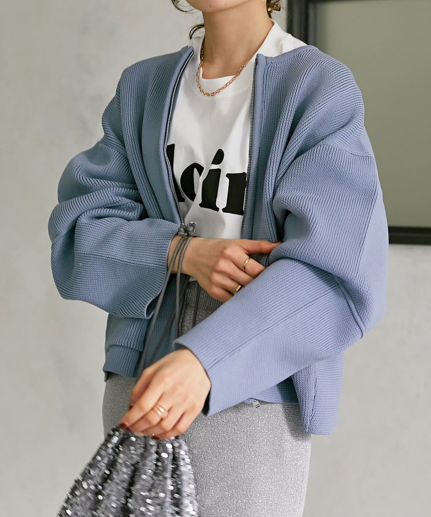 程よい丈感なので、ナロースカートやフレアデニムなどすっきりとしたボトムスに