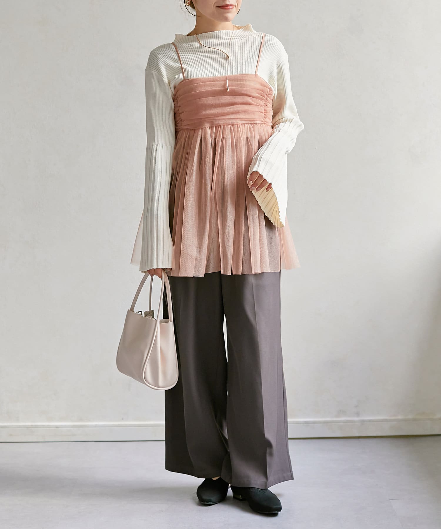 さらにパンツ合わせだと甘めが苦手な方も取り入れやすのでおすすめ