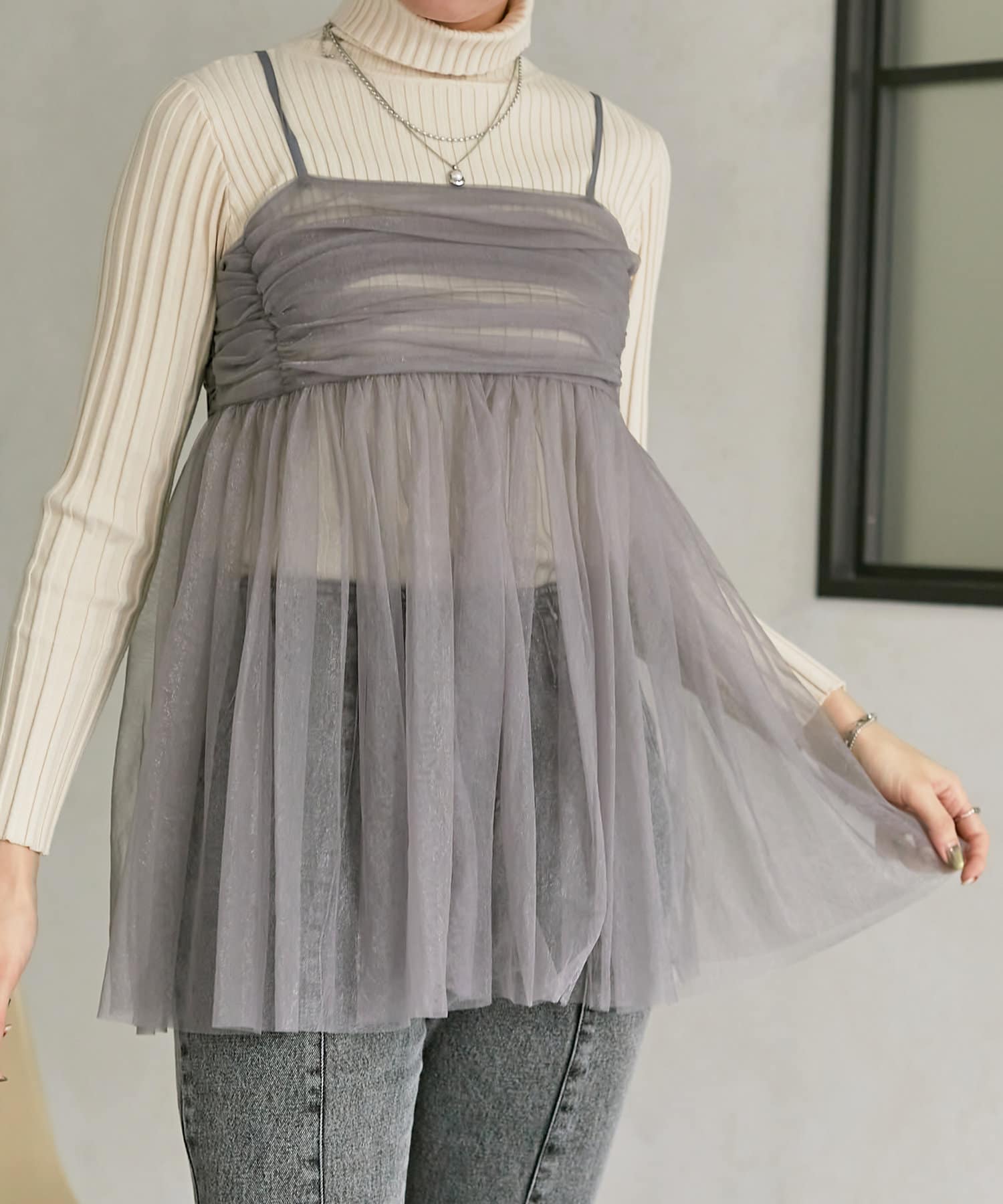 ・シャイニー感がトレンドライクなラメチュールキャミチュニック