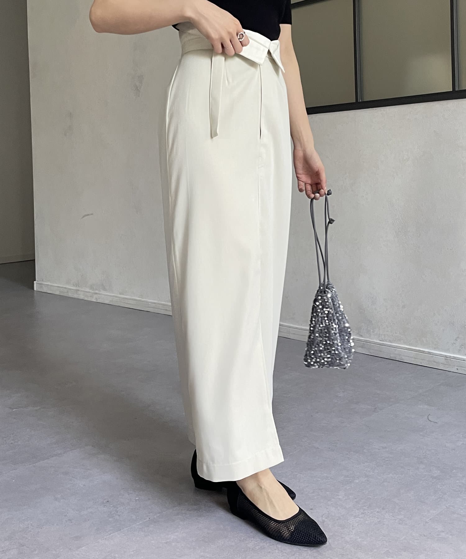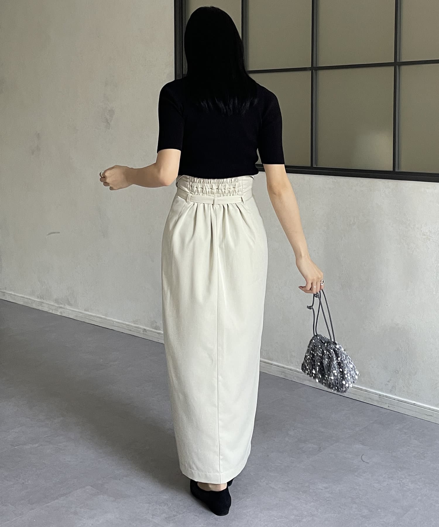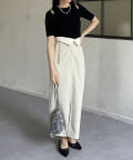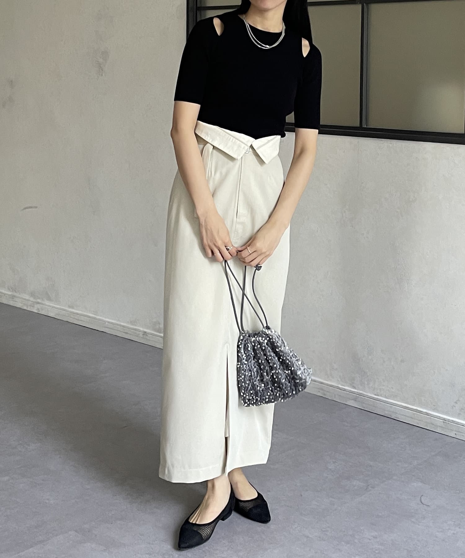 ・ウエストのデザインが特徴なので、折り返してインしやすいニットやブラウスと