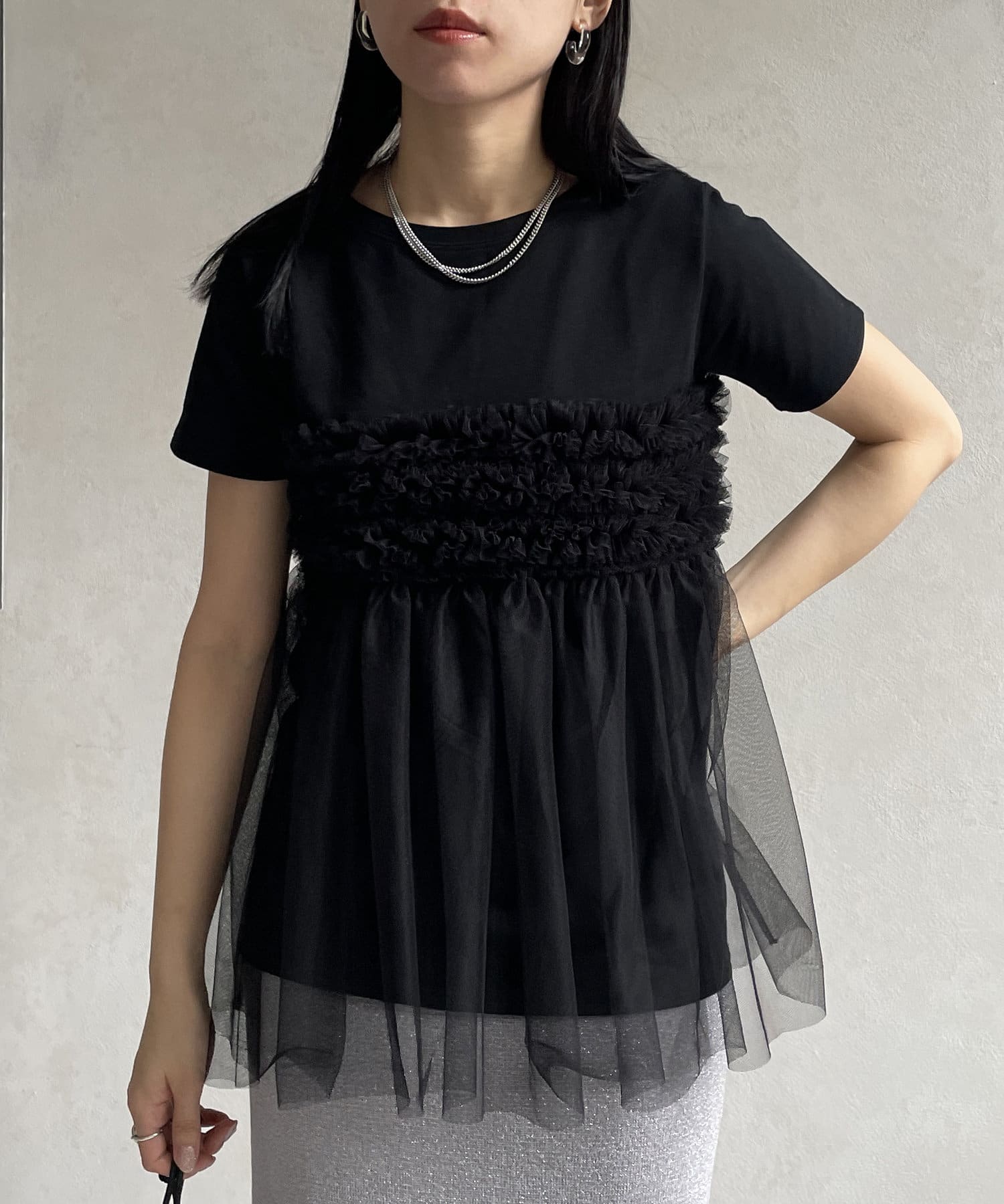 1枚で着映えする!トレンドのチュール×プルオーバー