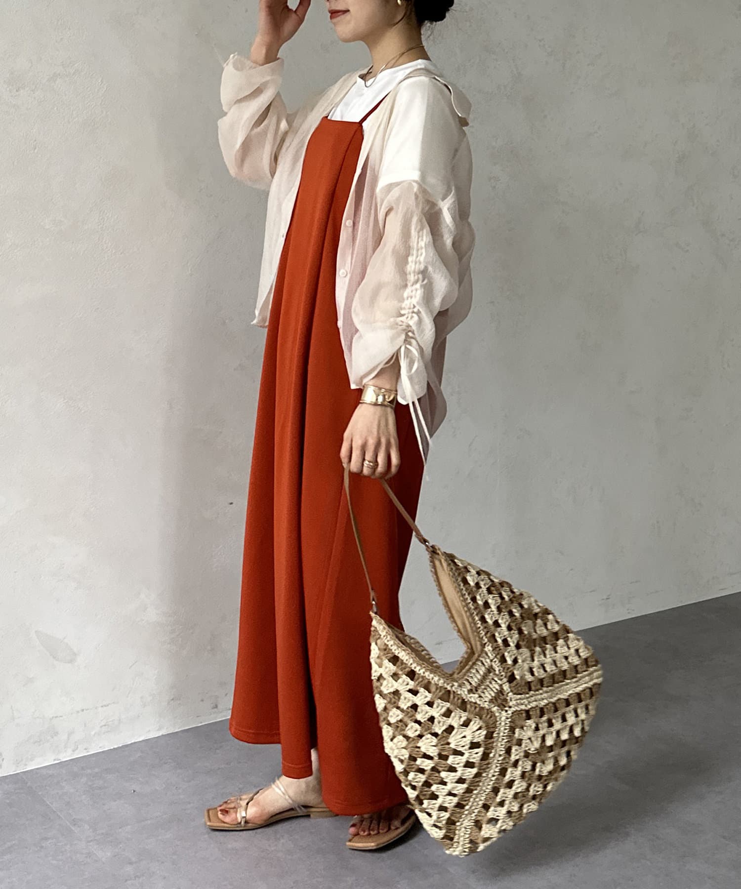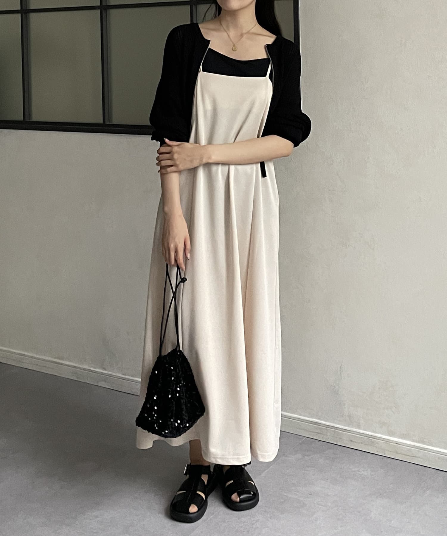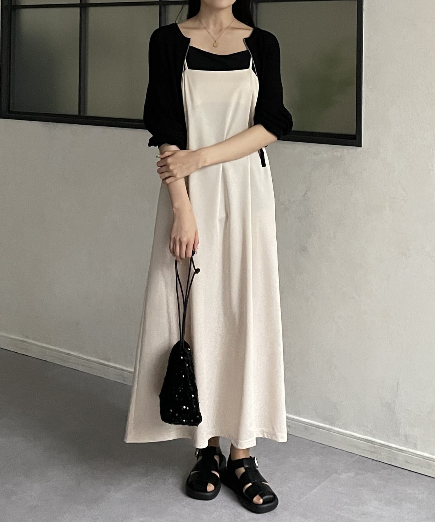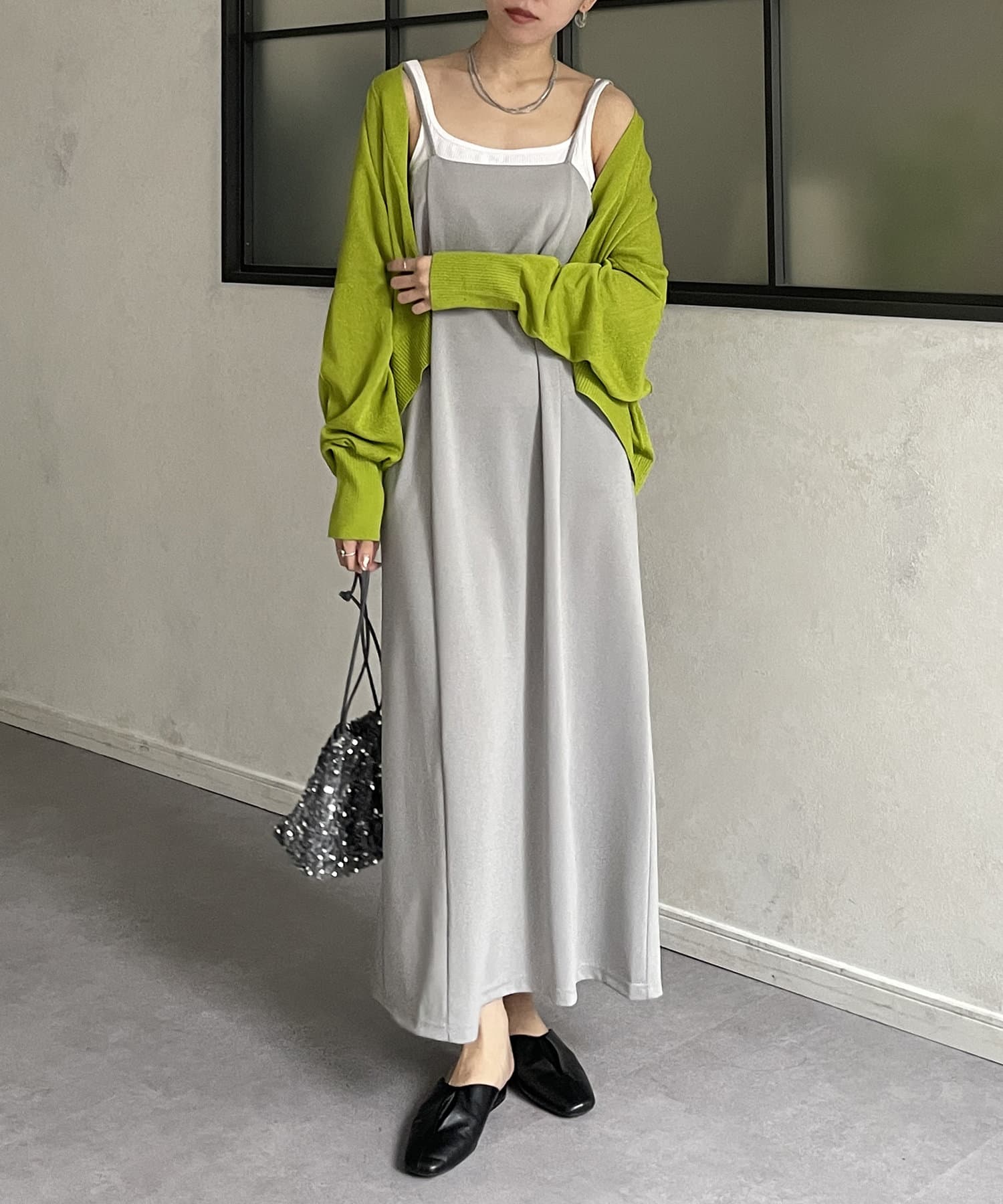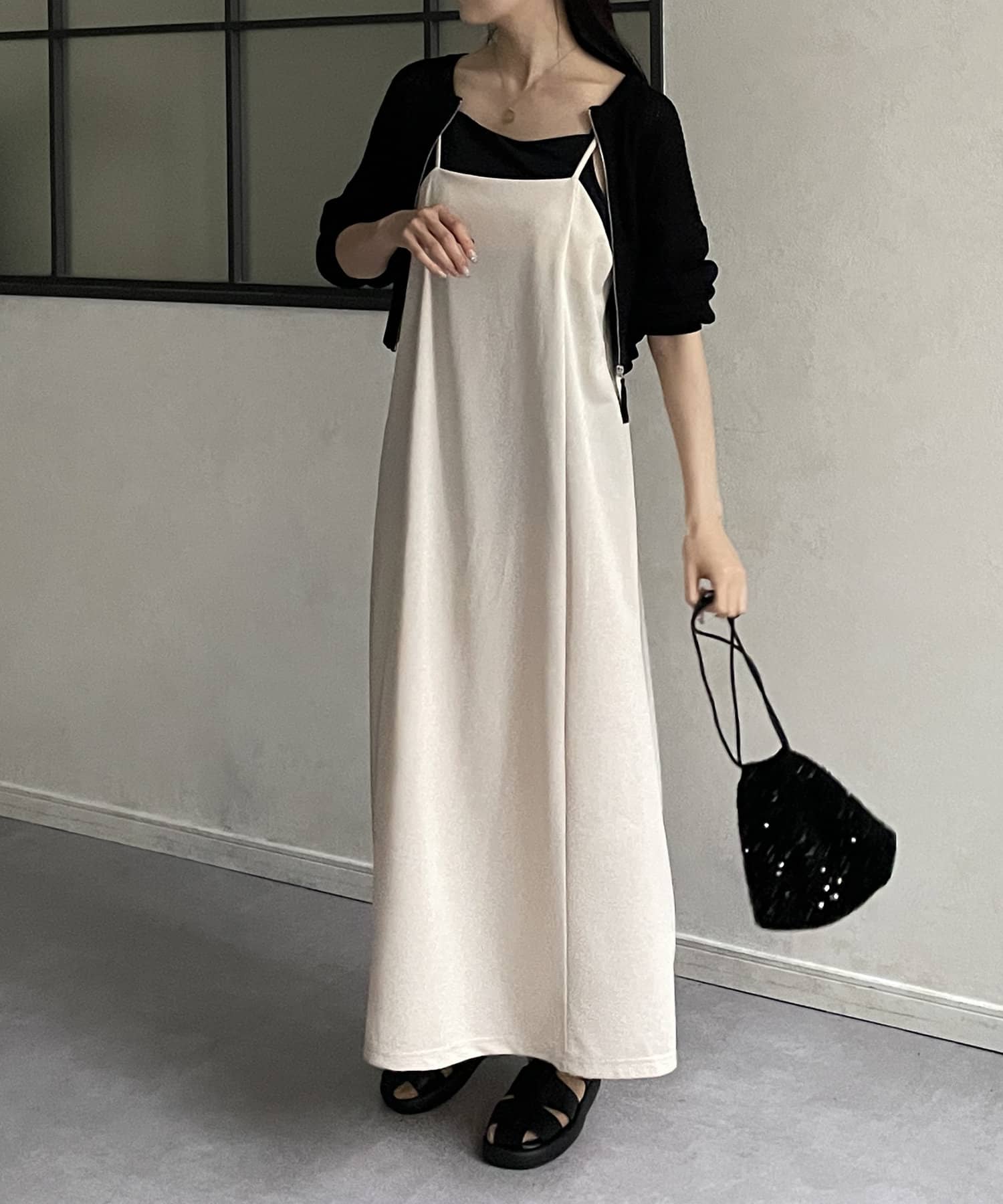 ・中のインナーや羽織り次第で幅広い着こなしができるキャミワンピースです。