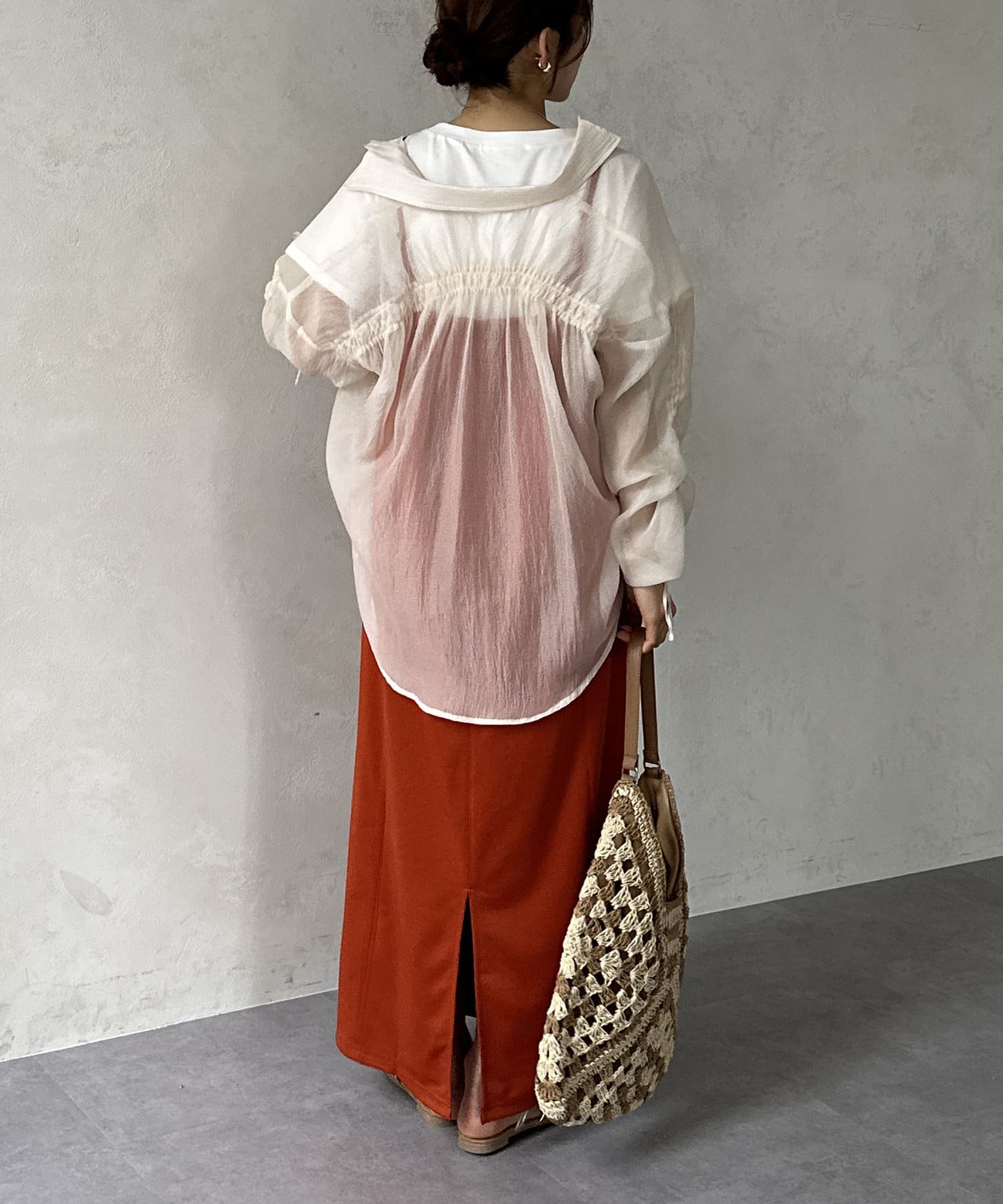 ・タンクトップやTシャツにシアーシャツを合わせて、きれいめカジュアルな