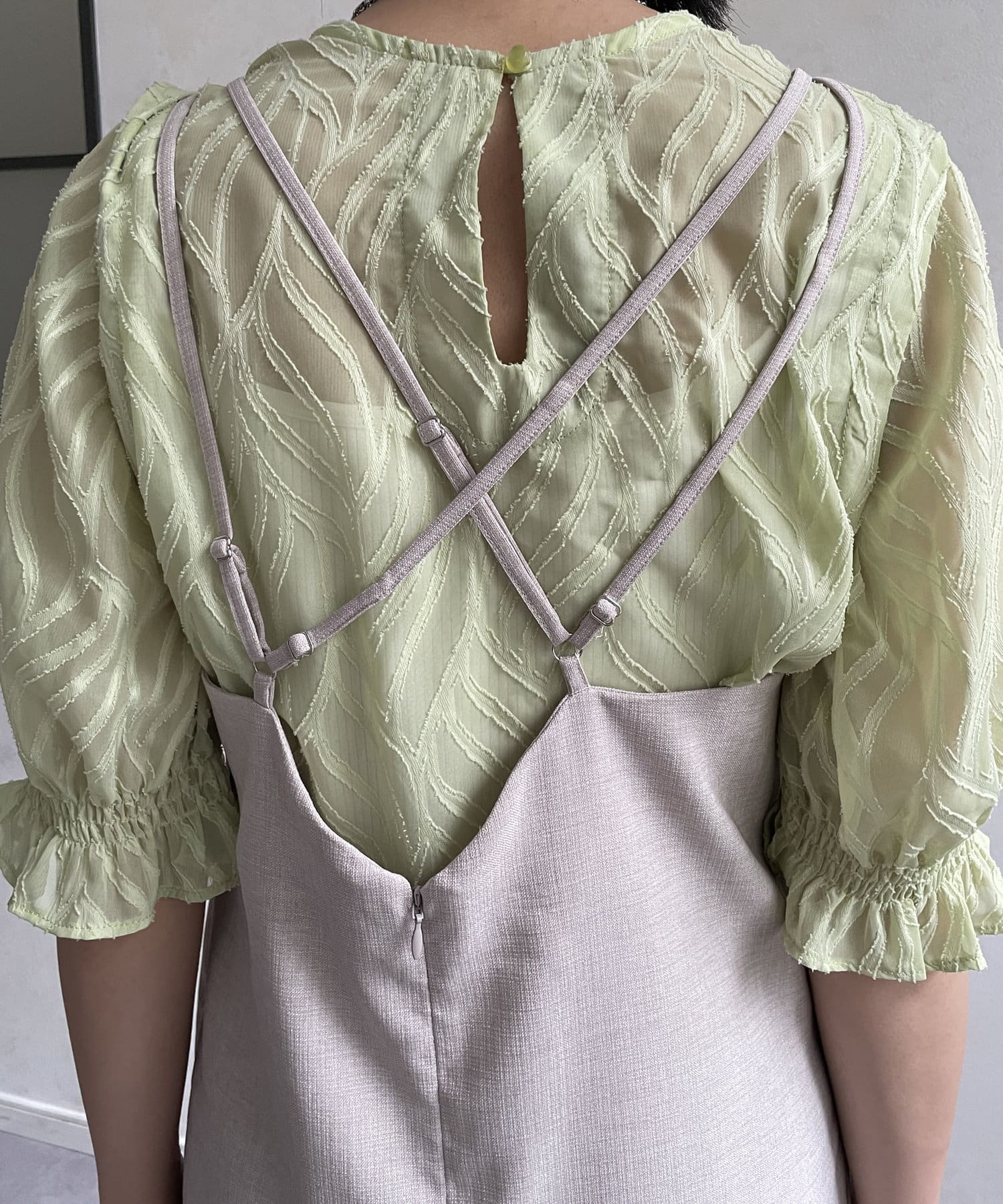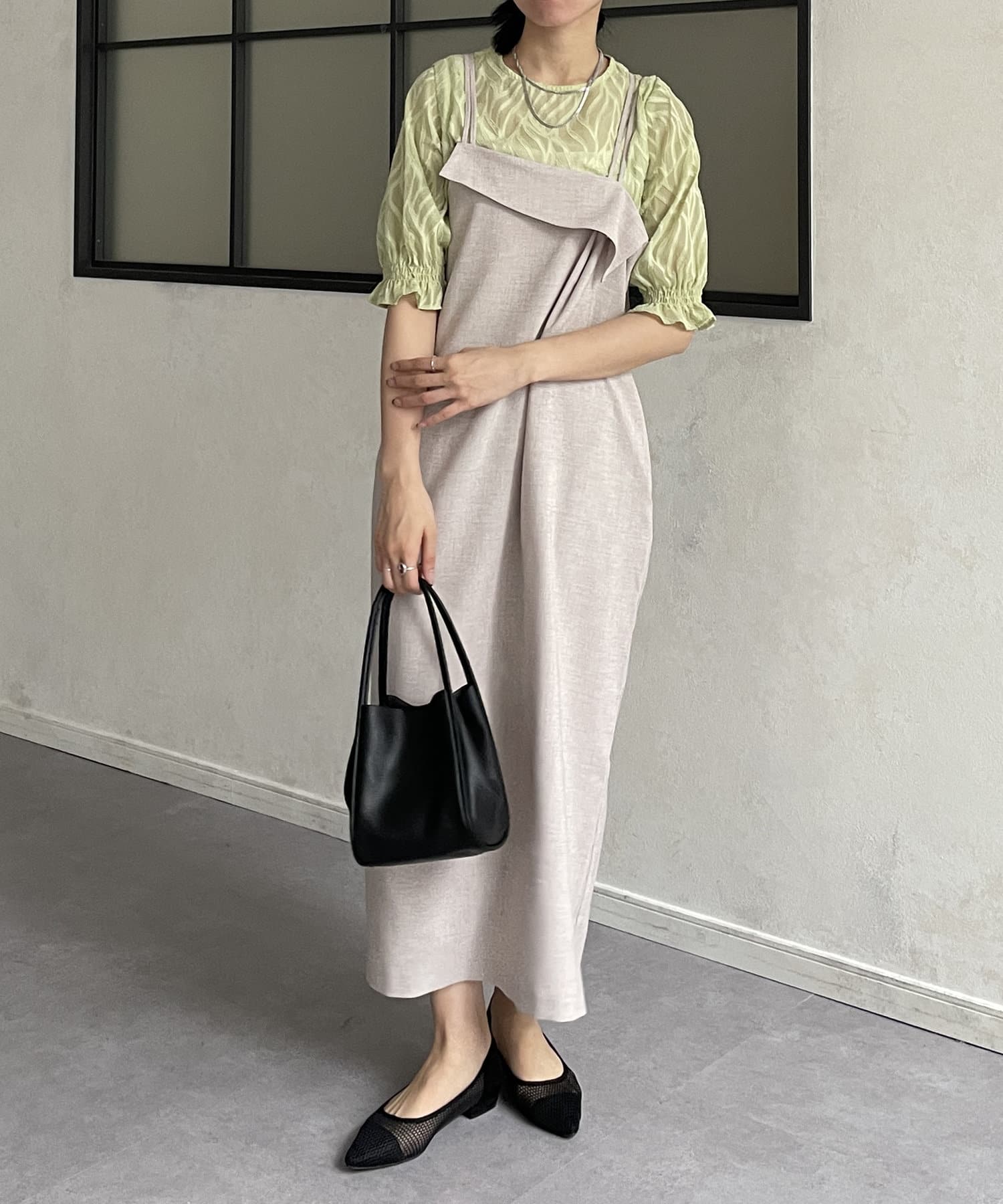 胸元の折り返しデザインが目を惹くキャミワンピース