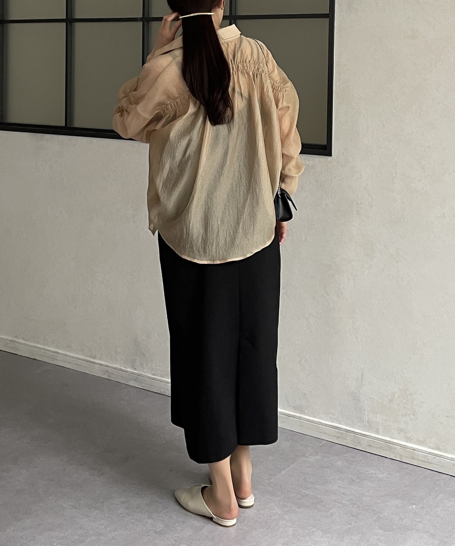 ・シアーシャツやTシャツ、ノースリーブなどを合わせていただくだけで