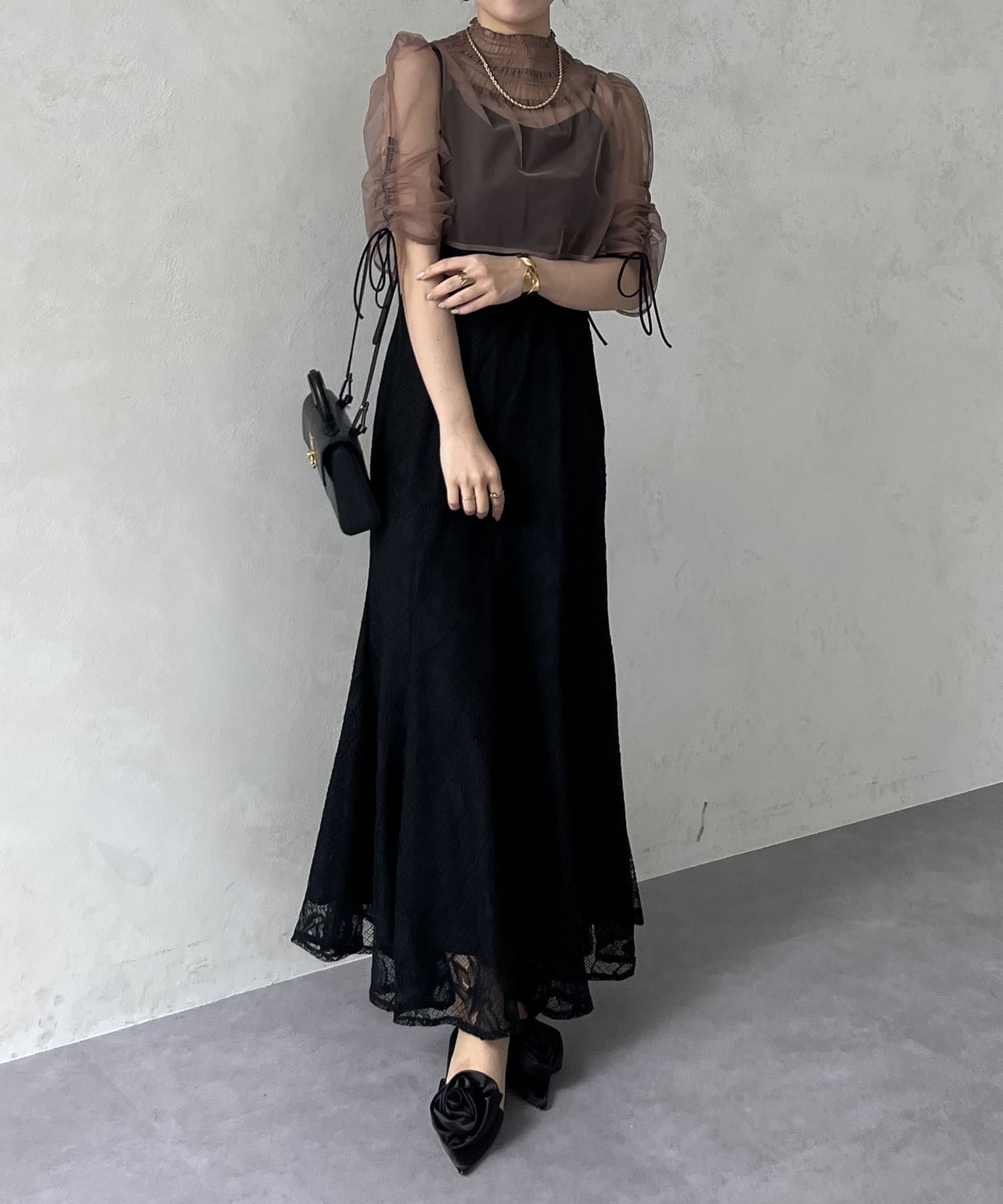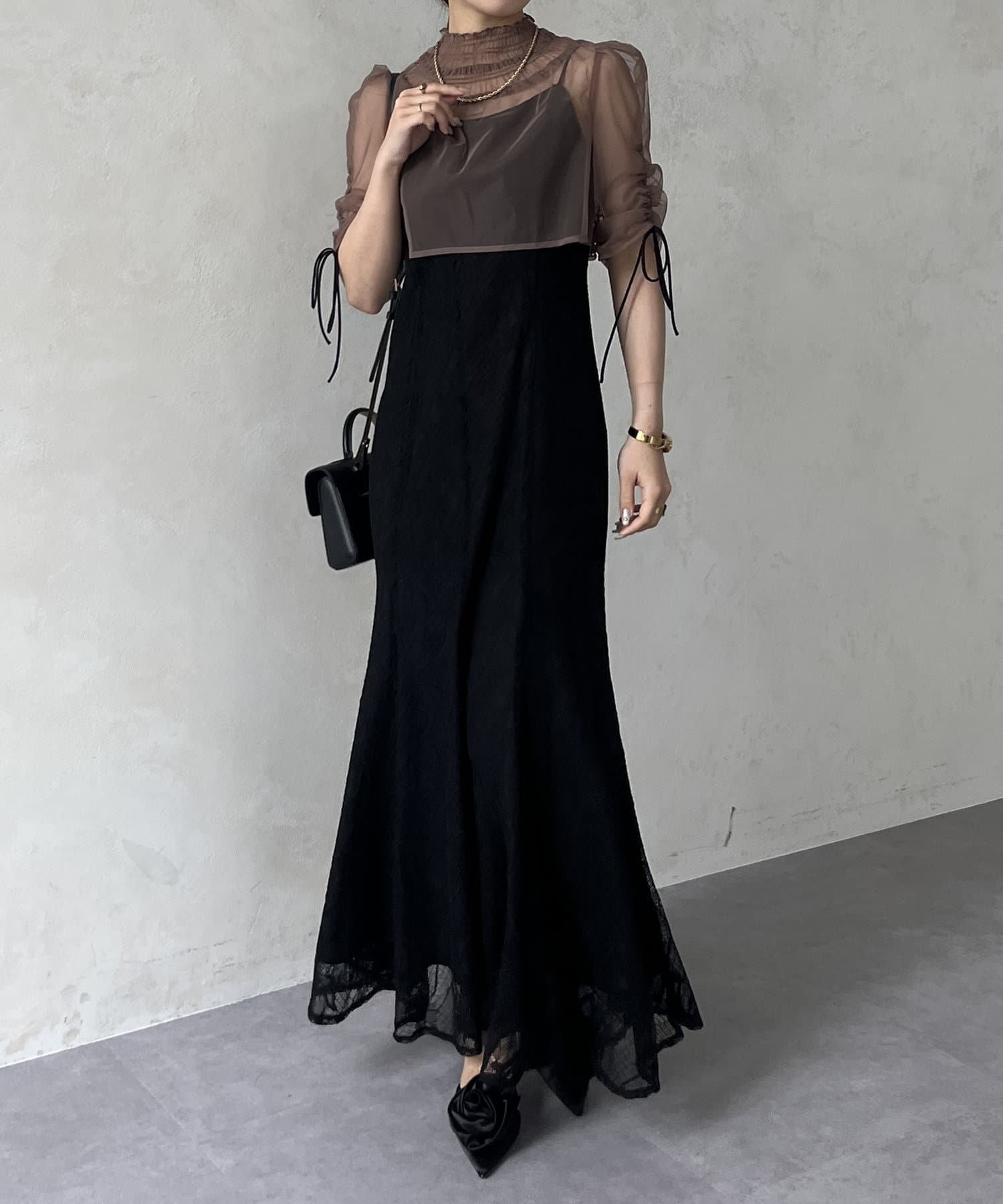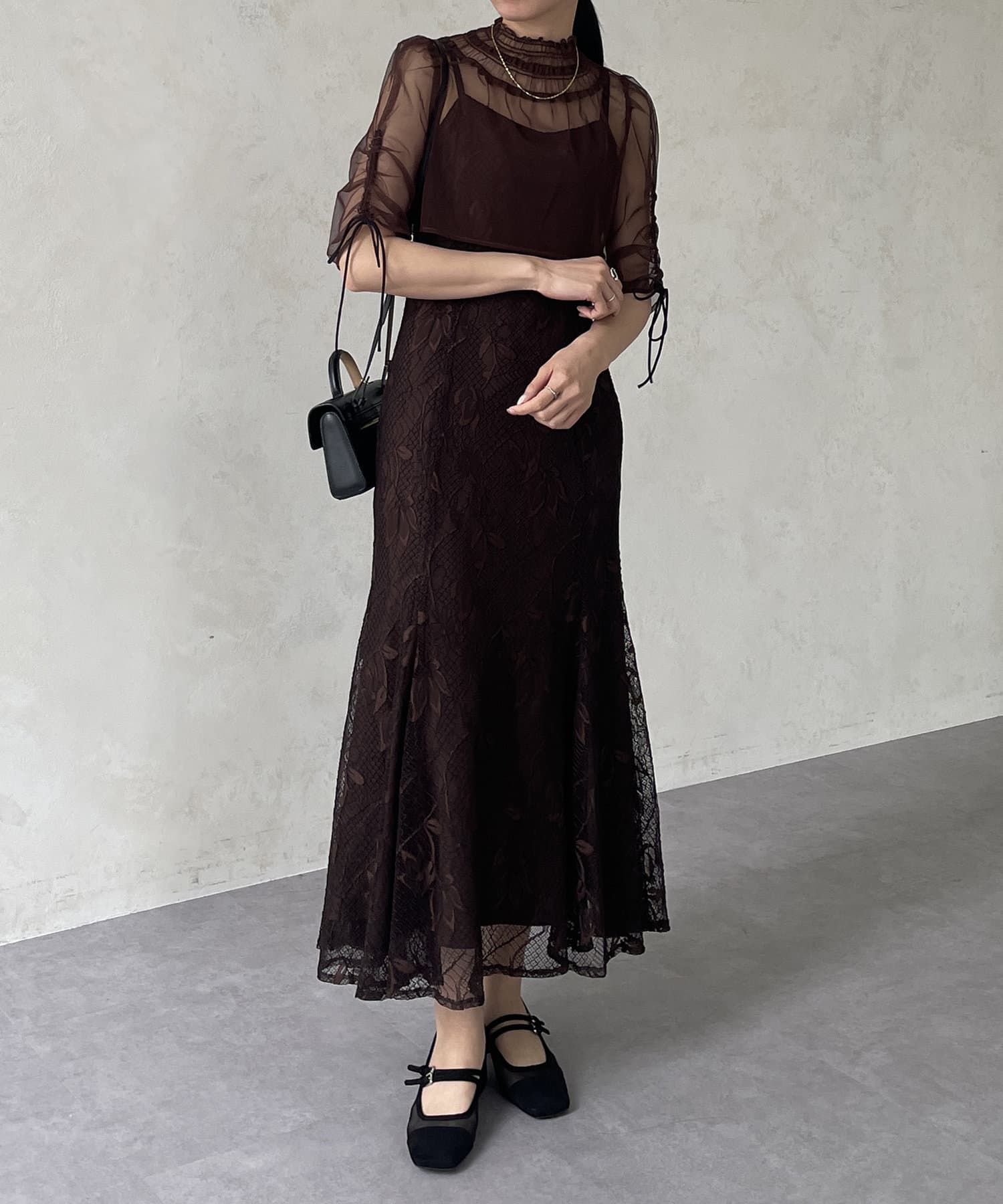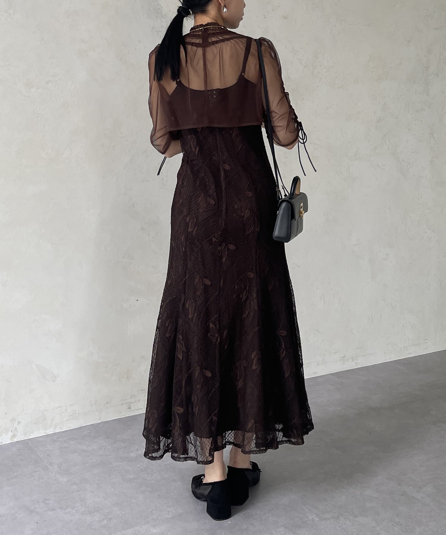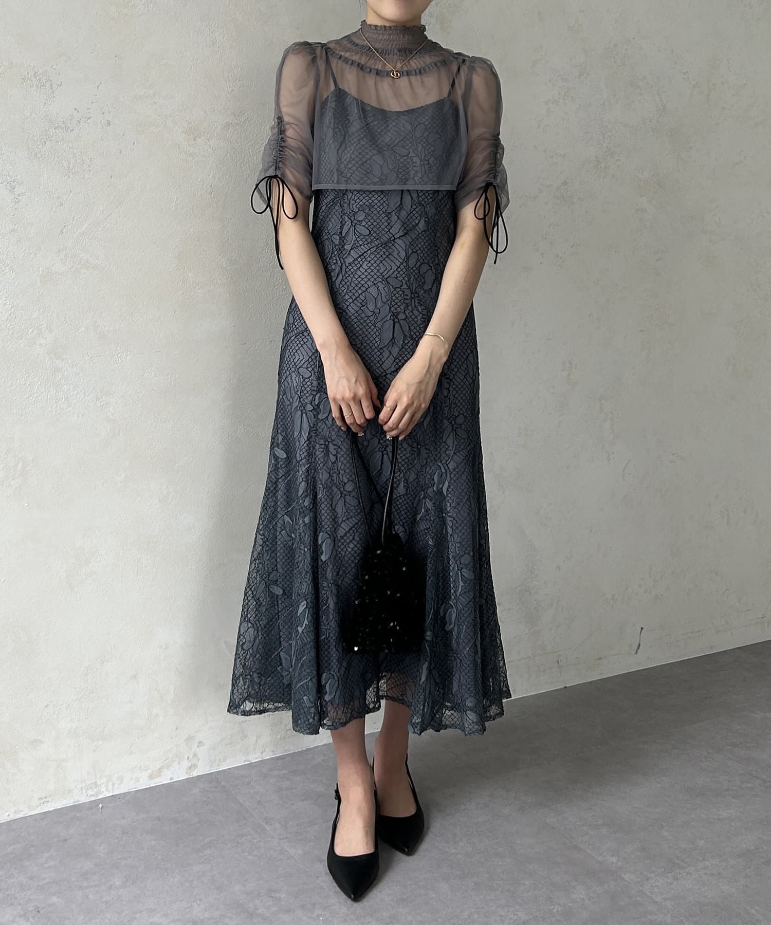 【オケージョン】シアーブラウス×フラワーレースキャミワンピース