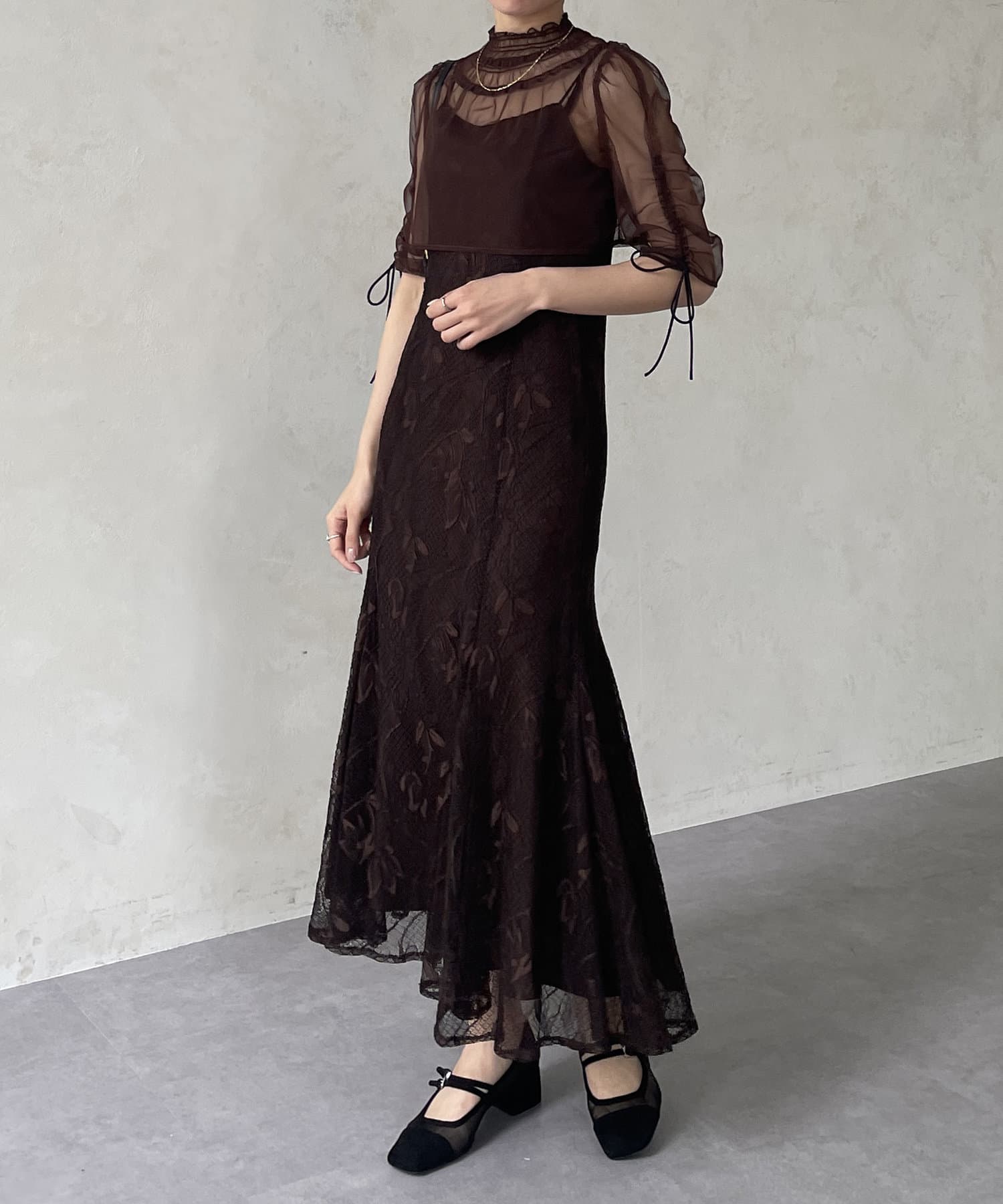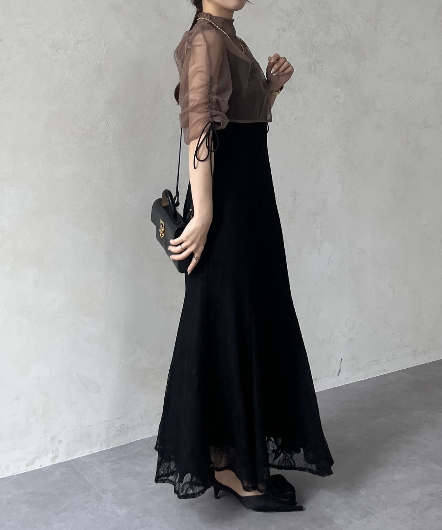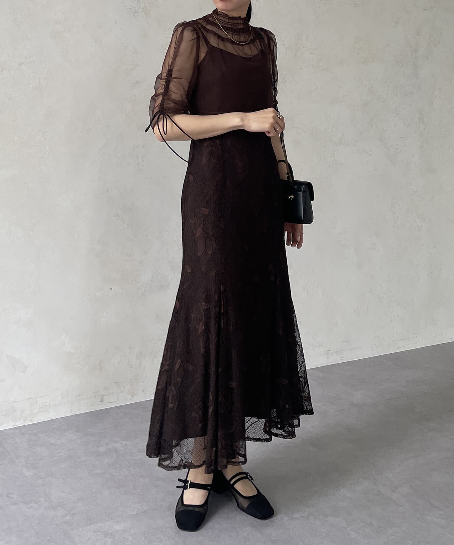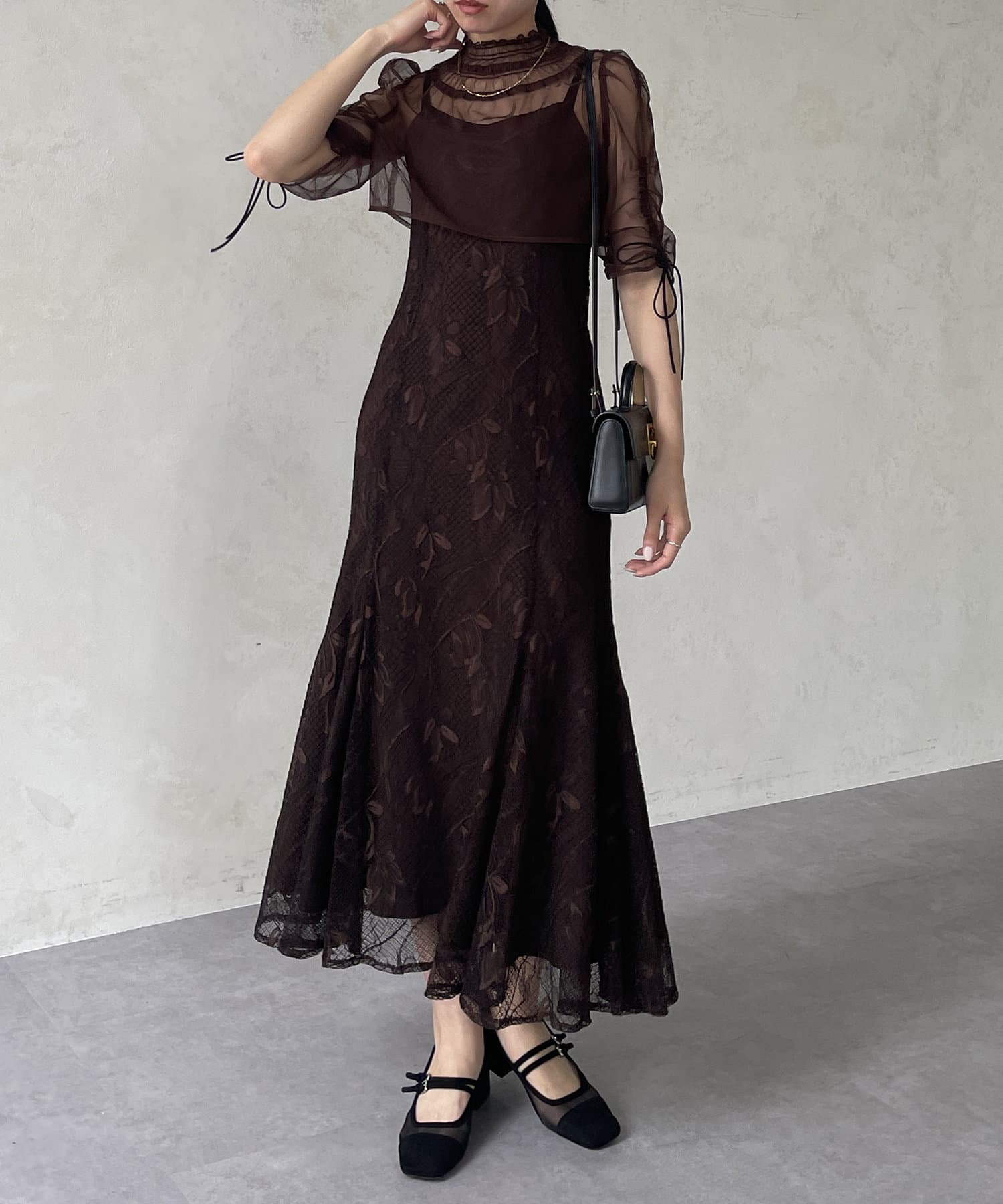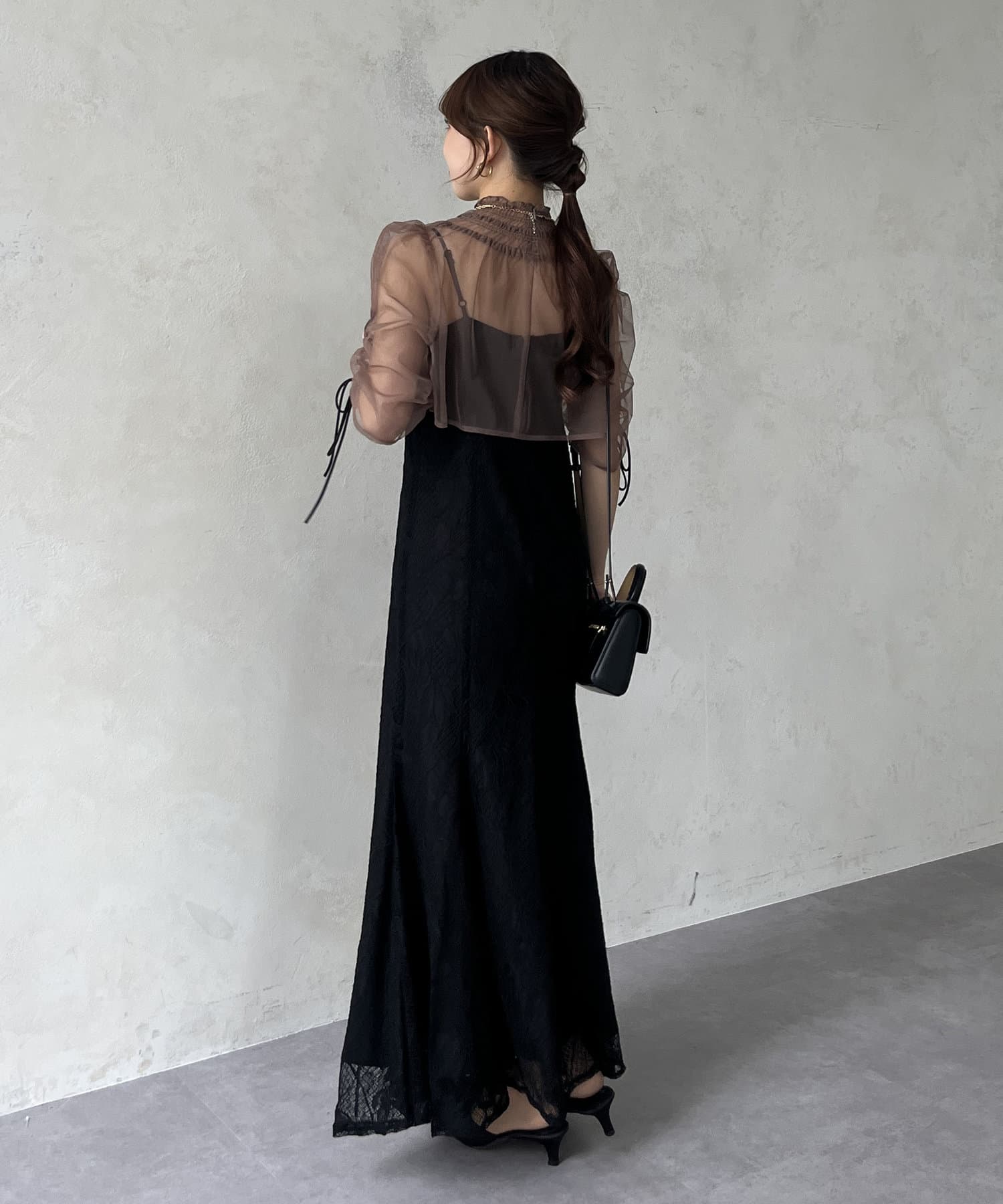 【オケージョン】シアーブラウス×フラワーレースキャミワンピース