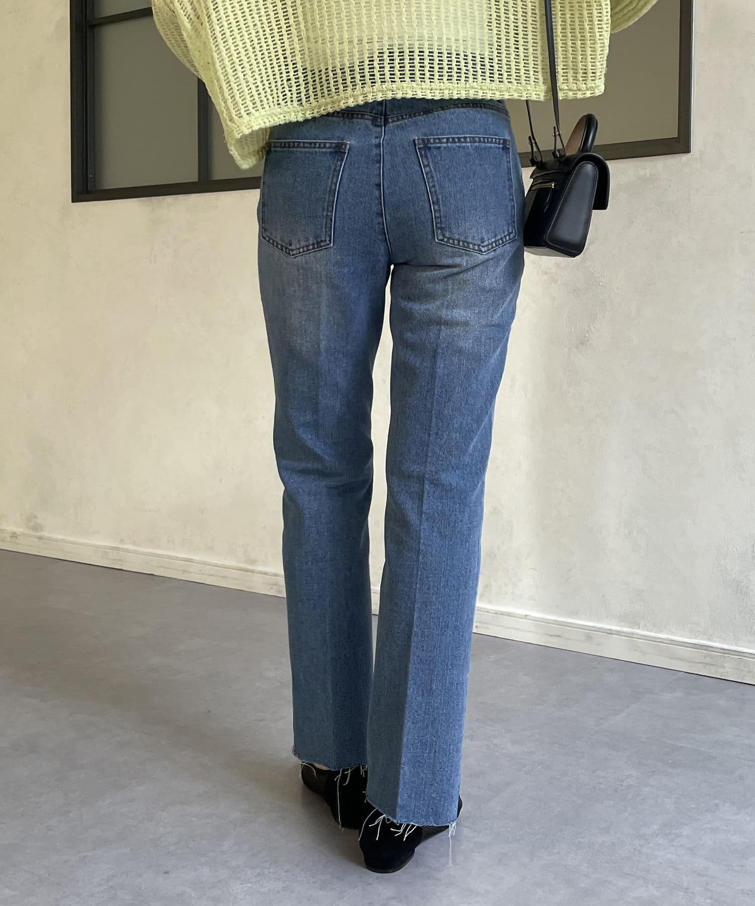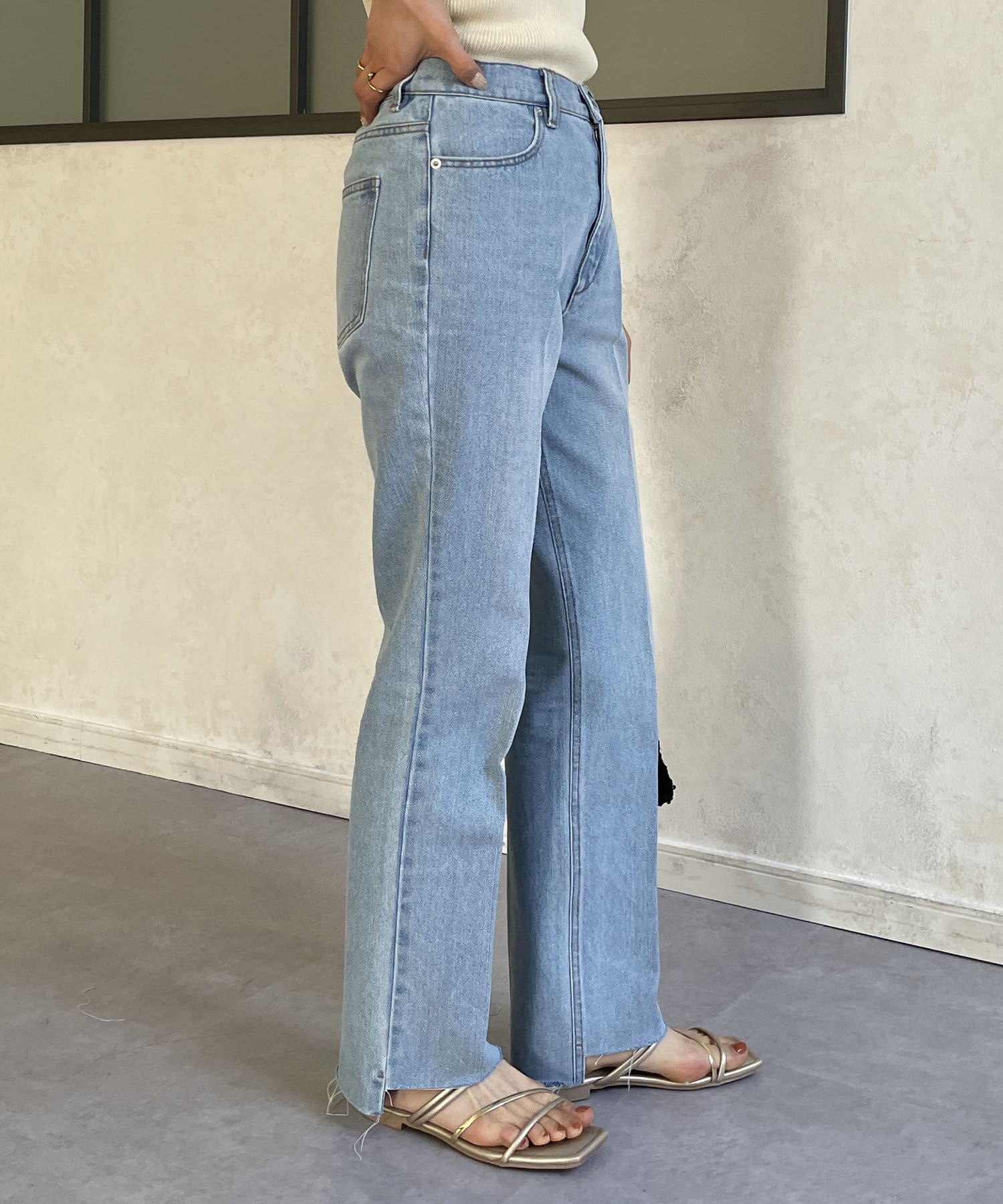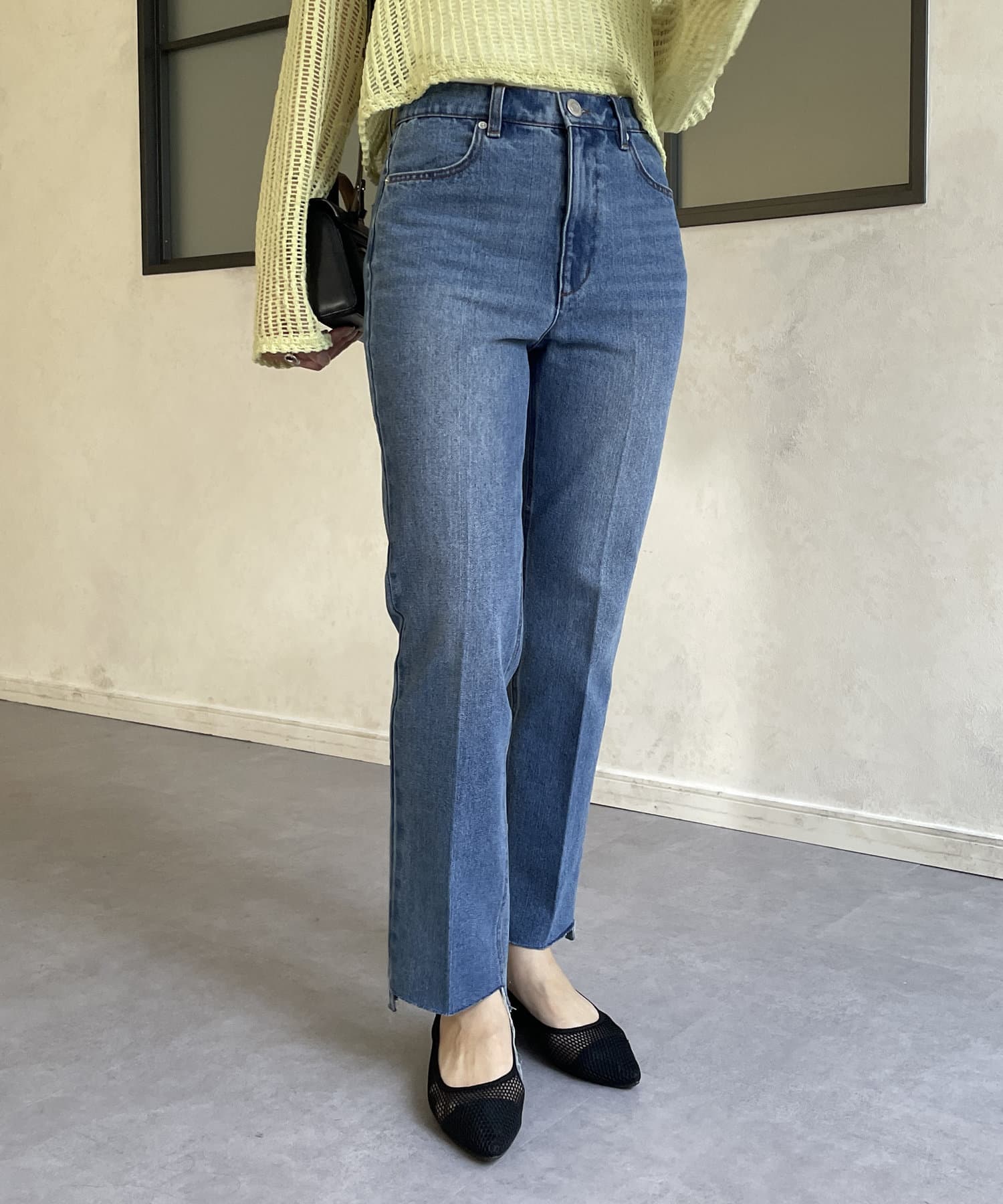 【2サイズ展開】裾段差スリットセンタープレスデニム