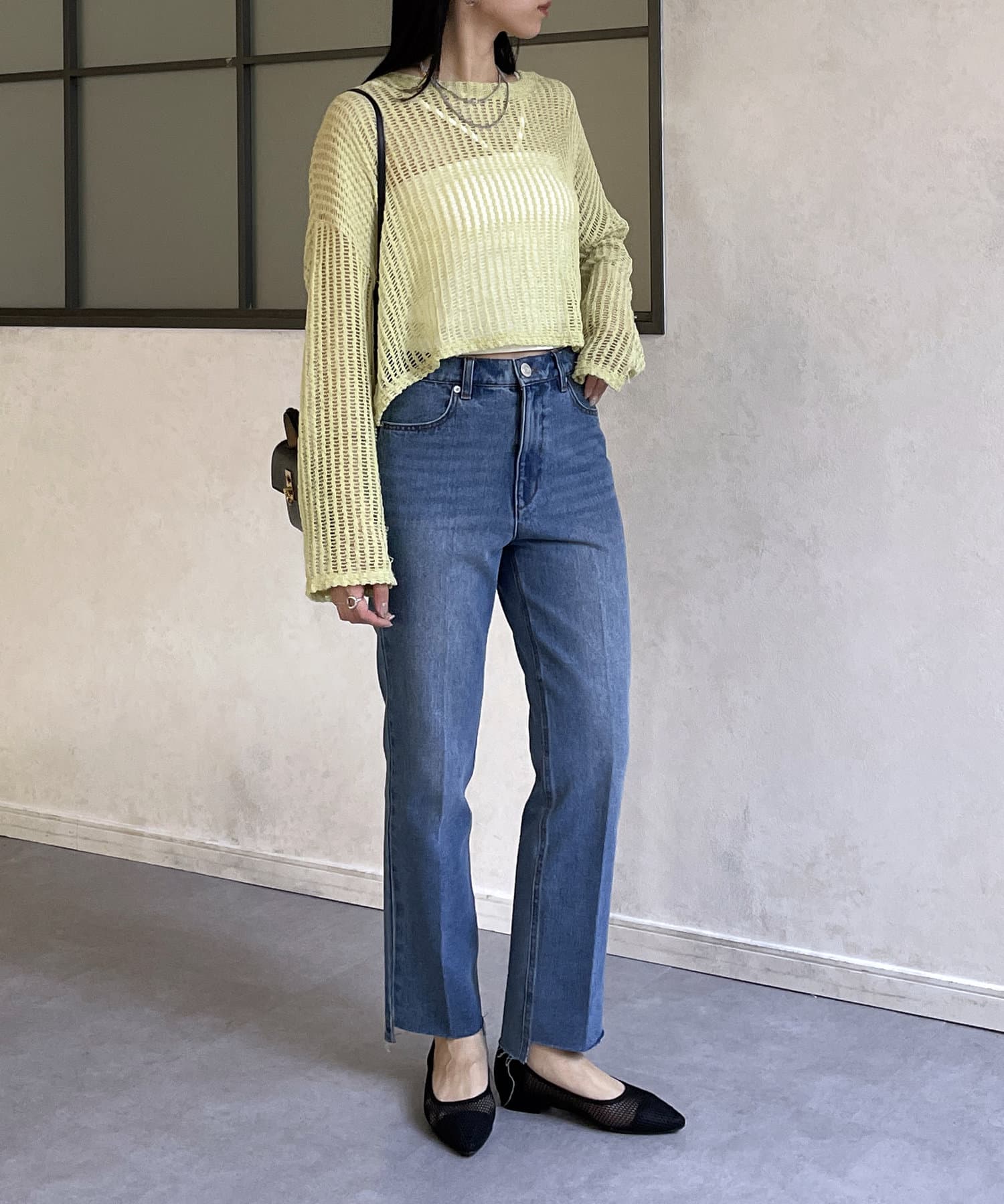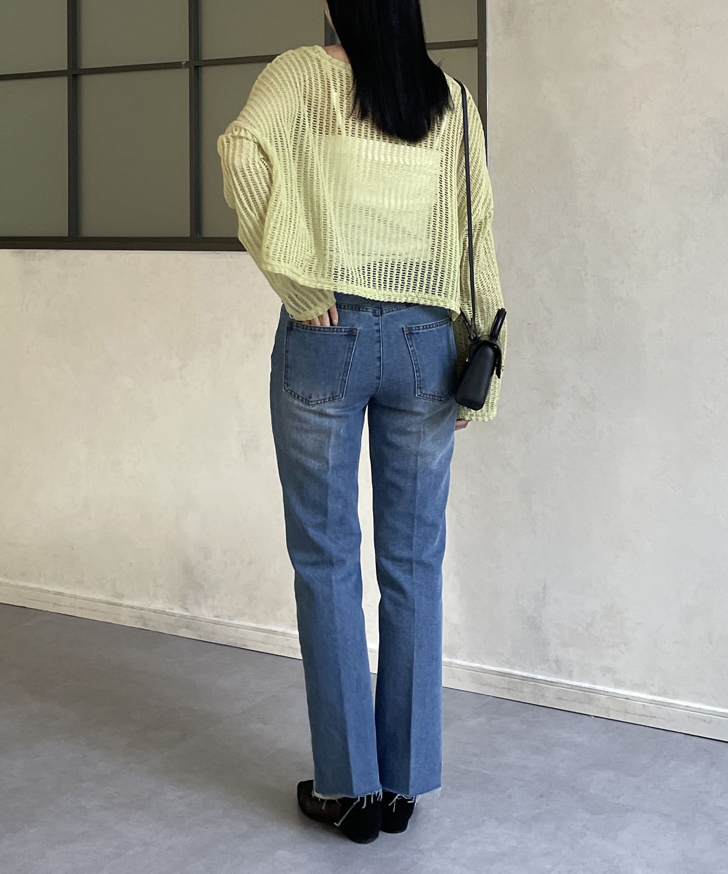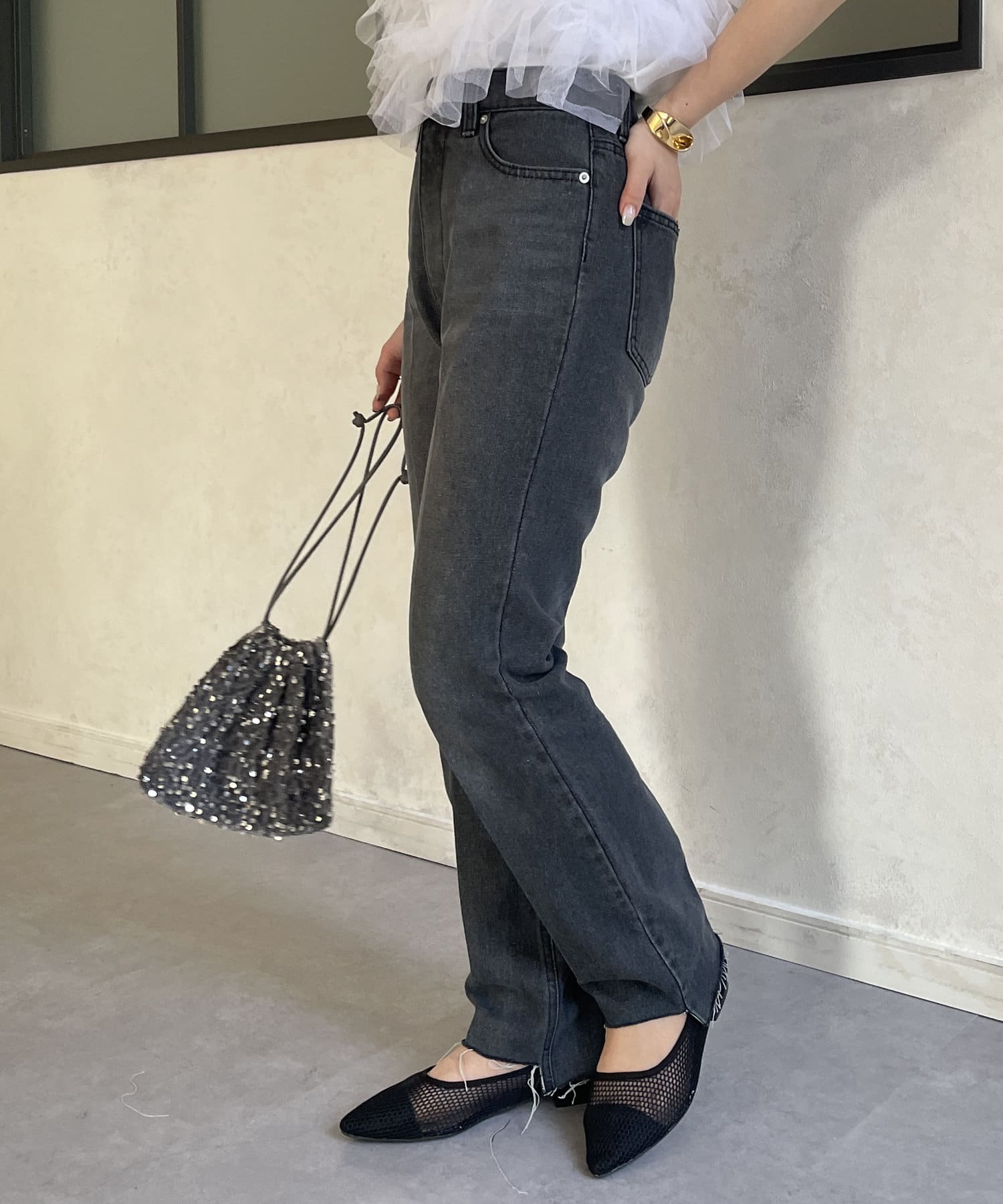 【2サイズ展開】裾段差スリットセンタープレスデニム